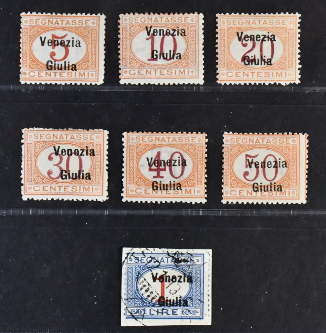 Italian occupation 1918–23, Venezia Giulia. Postage due Michel 1–7 ★/⊙, 1918 SET (7). 1 L used, the others *. EUR 350
