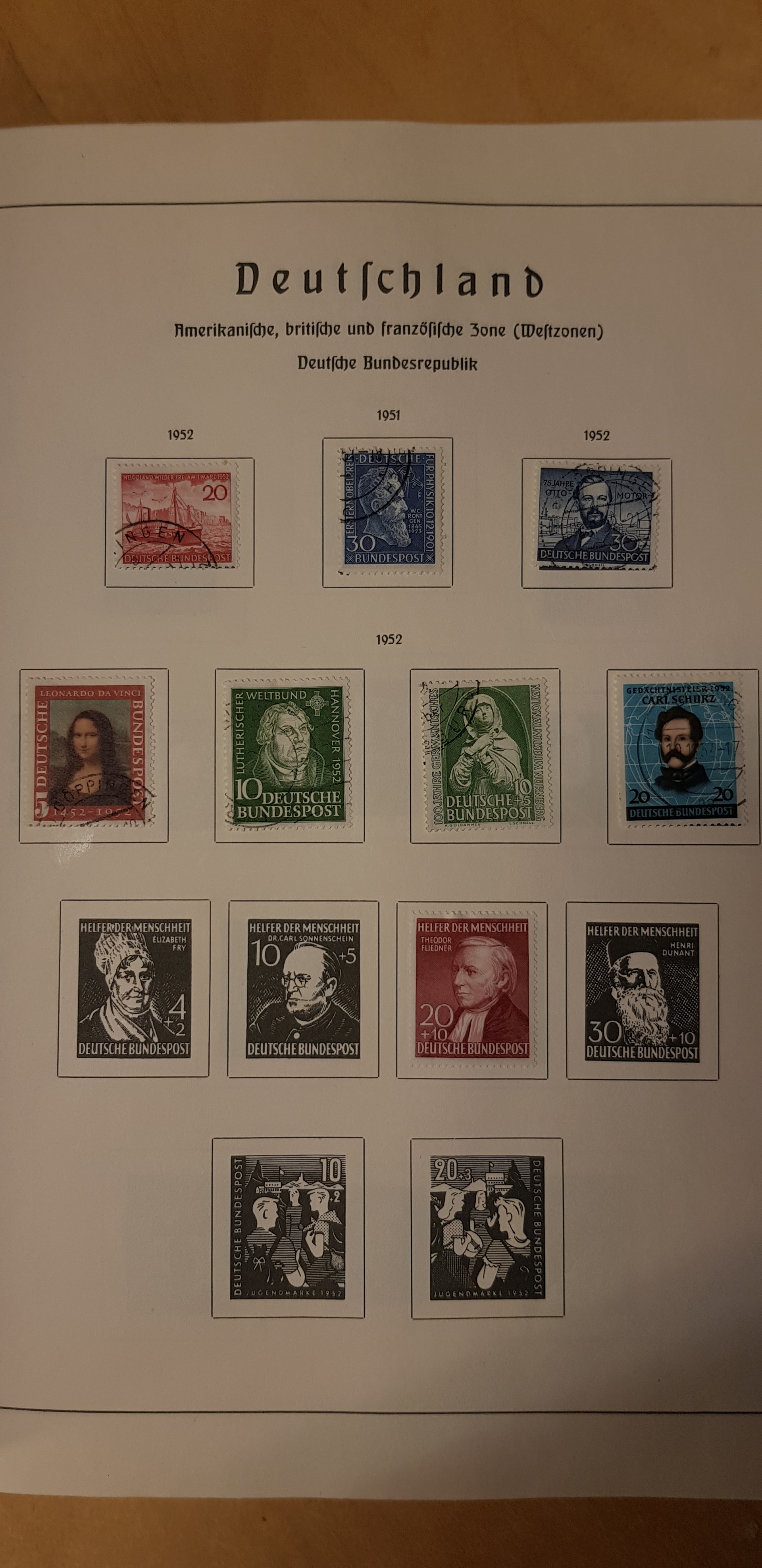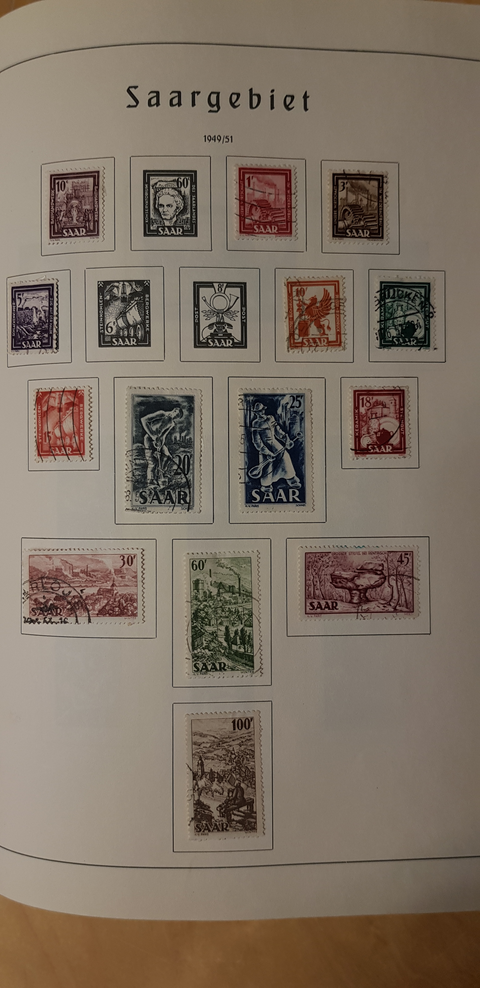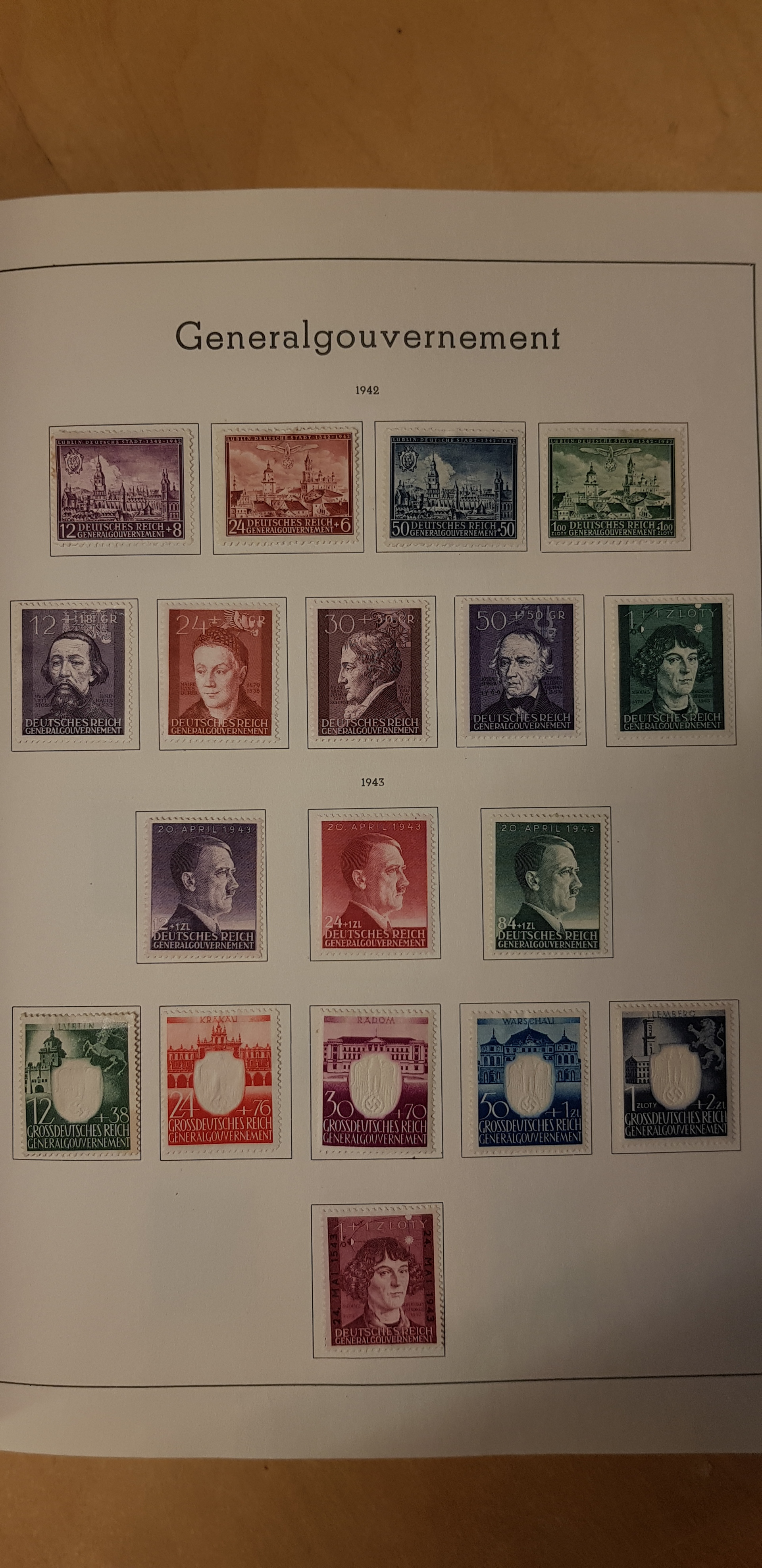 Germany, mixed. Collection/accumulation mostly used 1872–1961 in Leuchtturm album with stamp mounts. Reich, General government, American and British Zone, DDR + some others. Some unused included in plastic pockets. Mostly fine quality. (>1000)