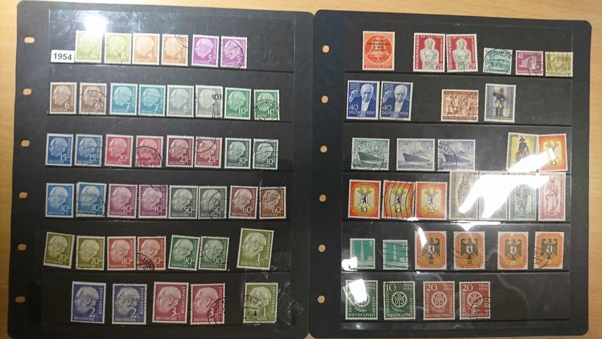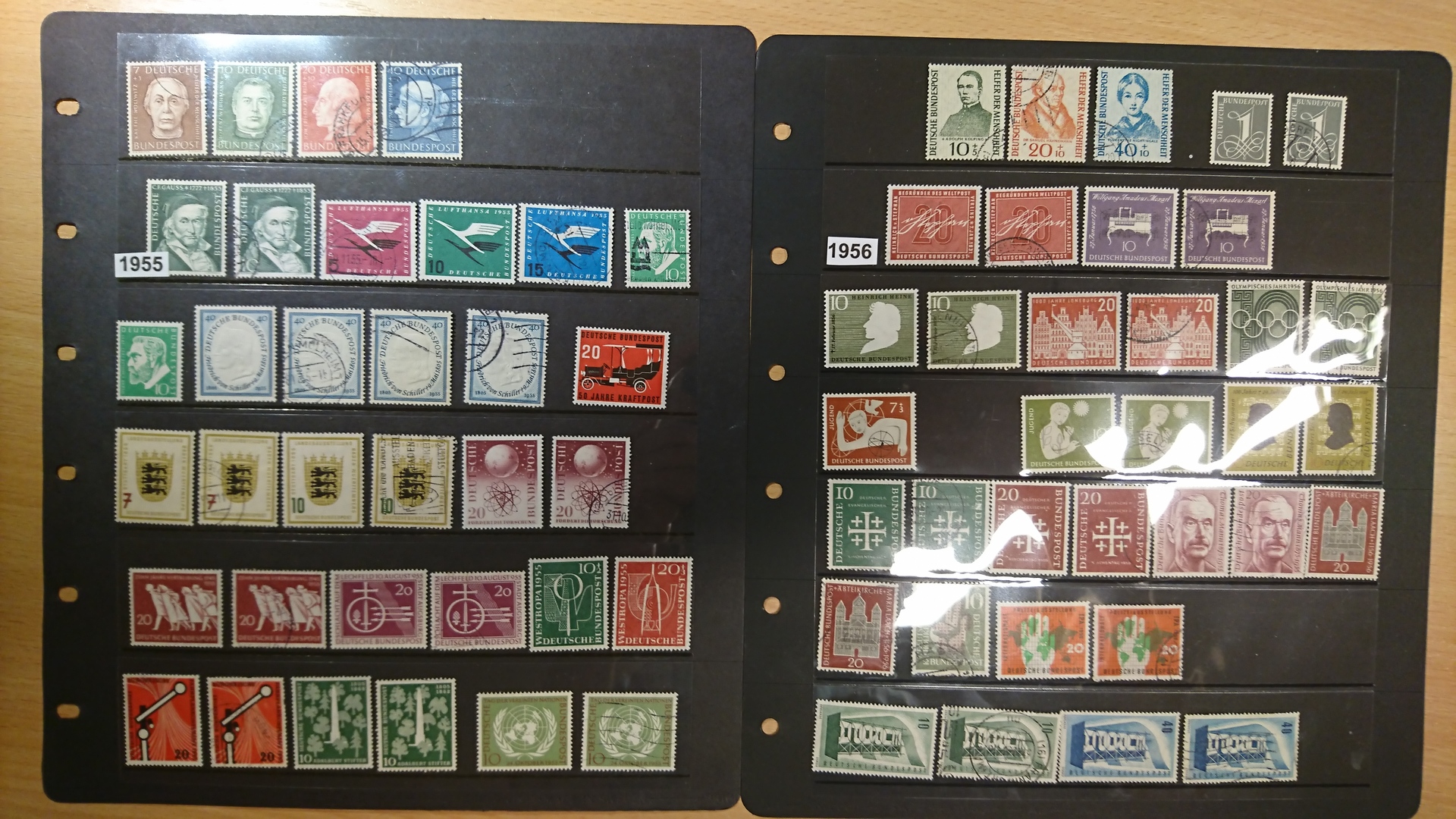 Germany, GFR (BRD). Collection/accumulation ★★/★/⊙ on visir leaves. 1947–1960 incl. block 2 and three covers with exhibition postmarks 1951–52. Mostly used stamps and not so many duplicates. Please see a selection of scans at www.philea.se. (400). Mostly fine quality.