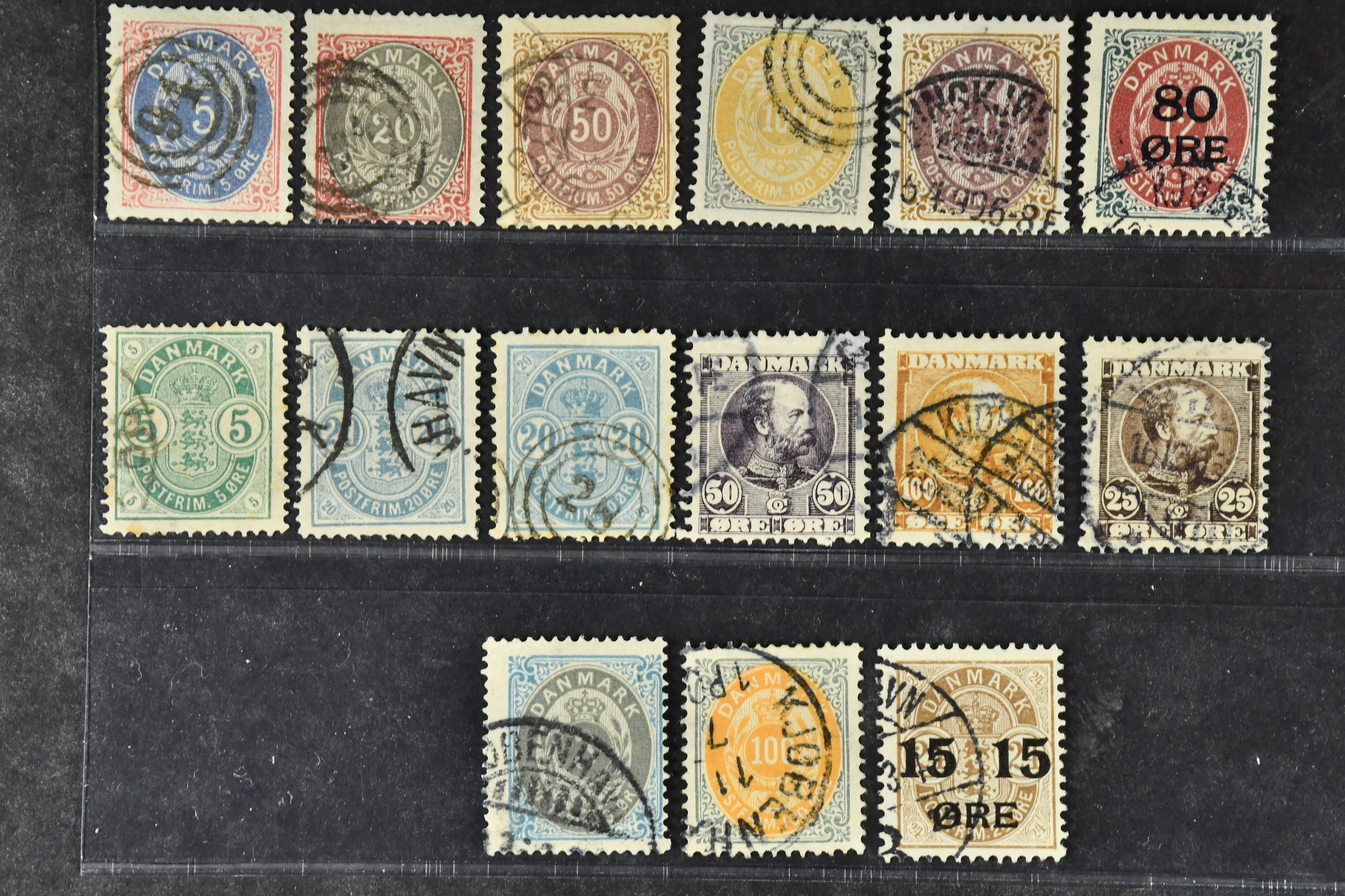Denmark. Used 1875–1915. All different, e.g. F 30, 34, 36-37, 44, 49-50, 52, 52vm, 67-68. Mostly good quality. F SEK 7000 (15)