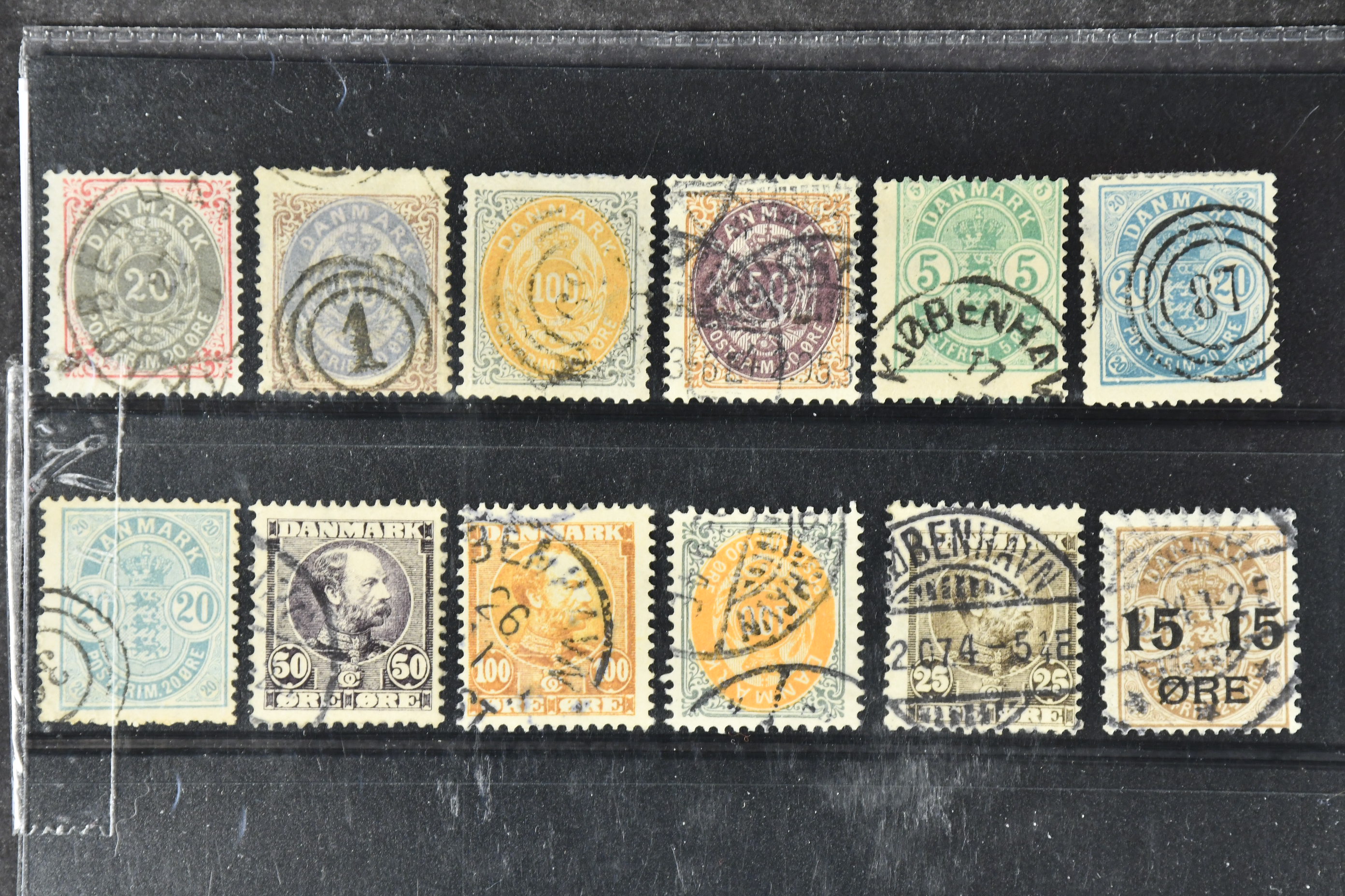 Denmark. Used 1875–1915. All different, e.g. F 34, 36-37, 44, 50, 52, 52vm, 67-68. Mostly good quality. F SEK 5140 (12)