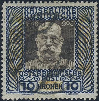 Austria. Michel 156z used, 1916 Franz Joseph 10 Kr grey thin paper paper. EUR 350