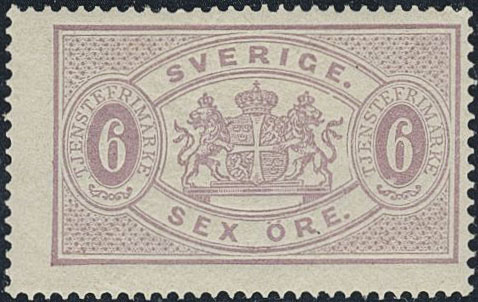 Sweden. Official Facit Tj4 ★★, 6 öre violet, perf. 14. SEK 5500