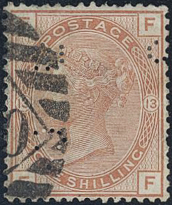 Britain. Michel 53 used, 1880 Queen Victoria wmk Spray of Rose 1s. brown-orange, watermark Spray of Rose. Perfin holes. EUR 350