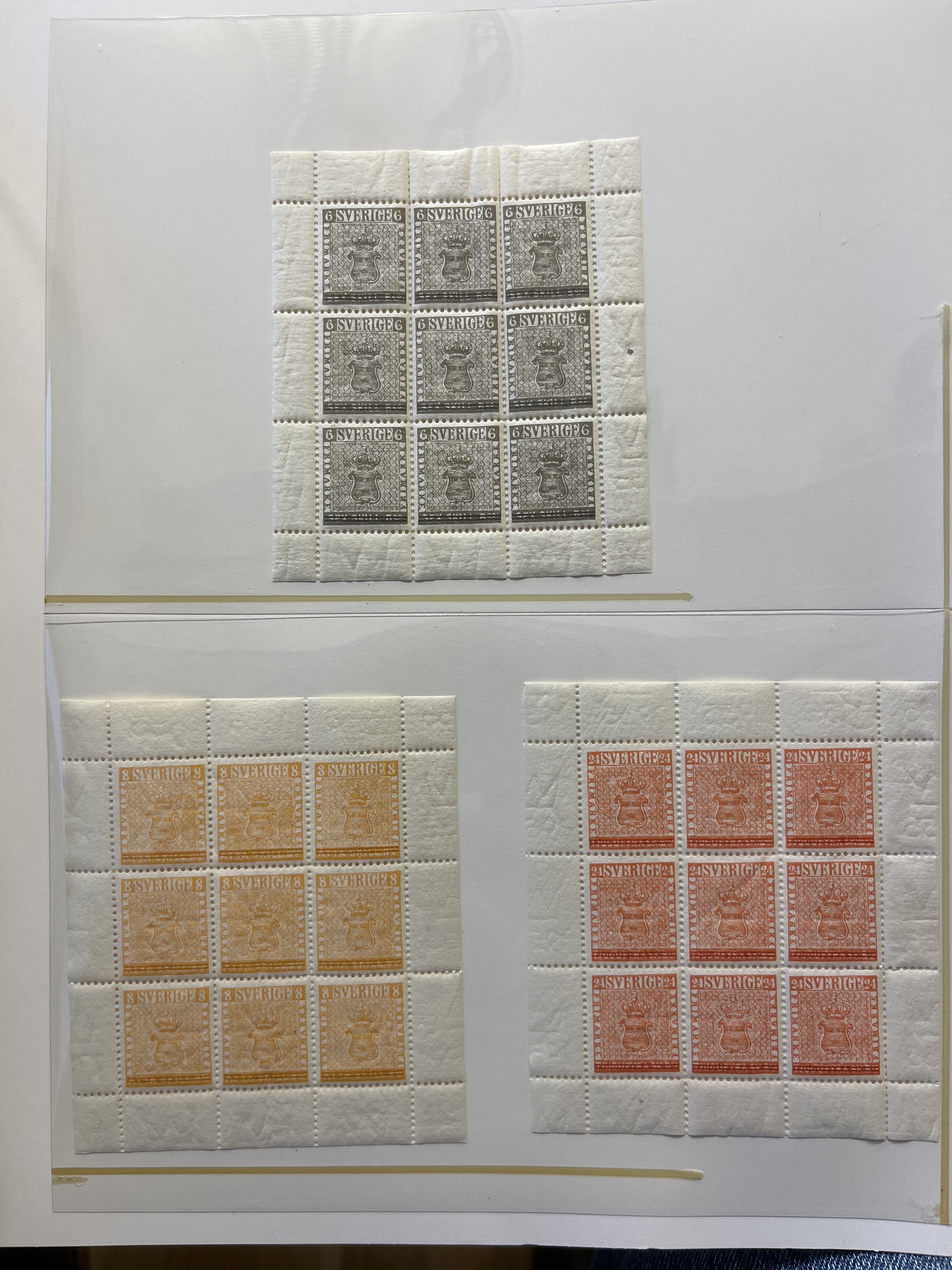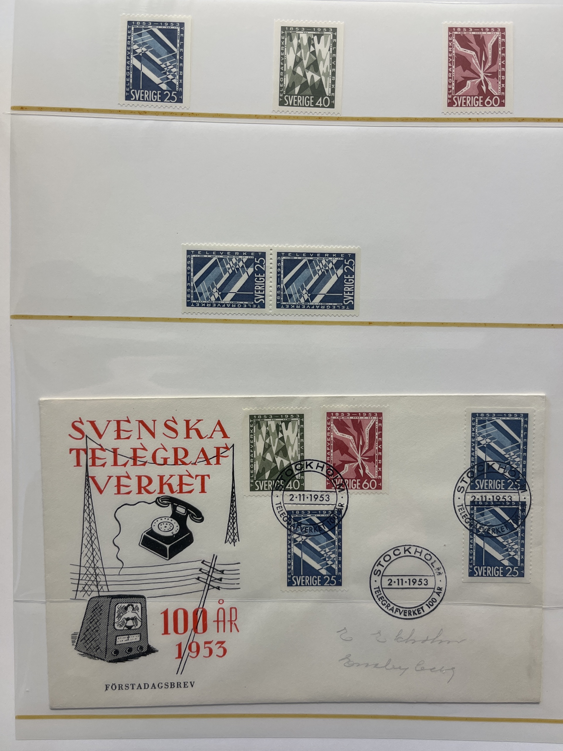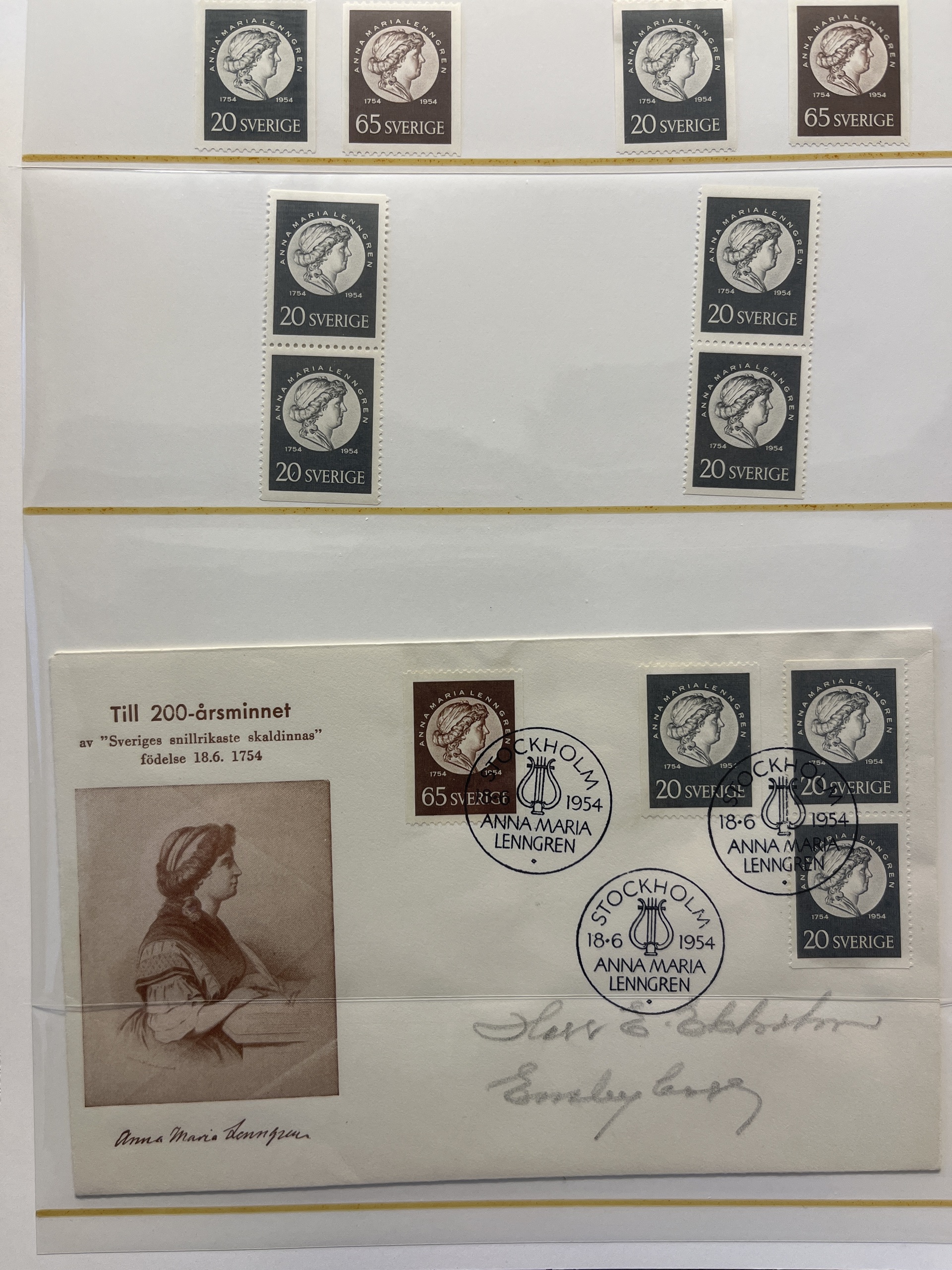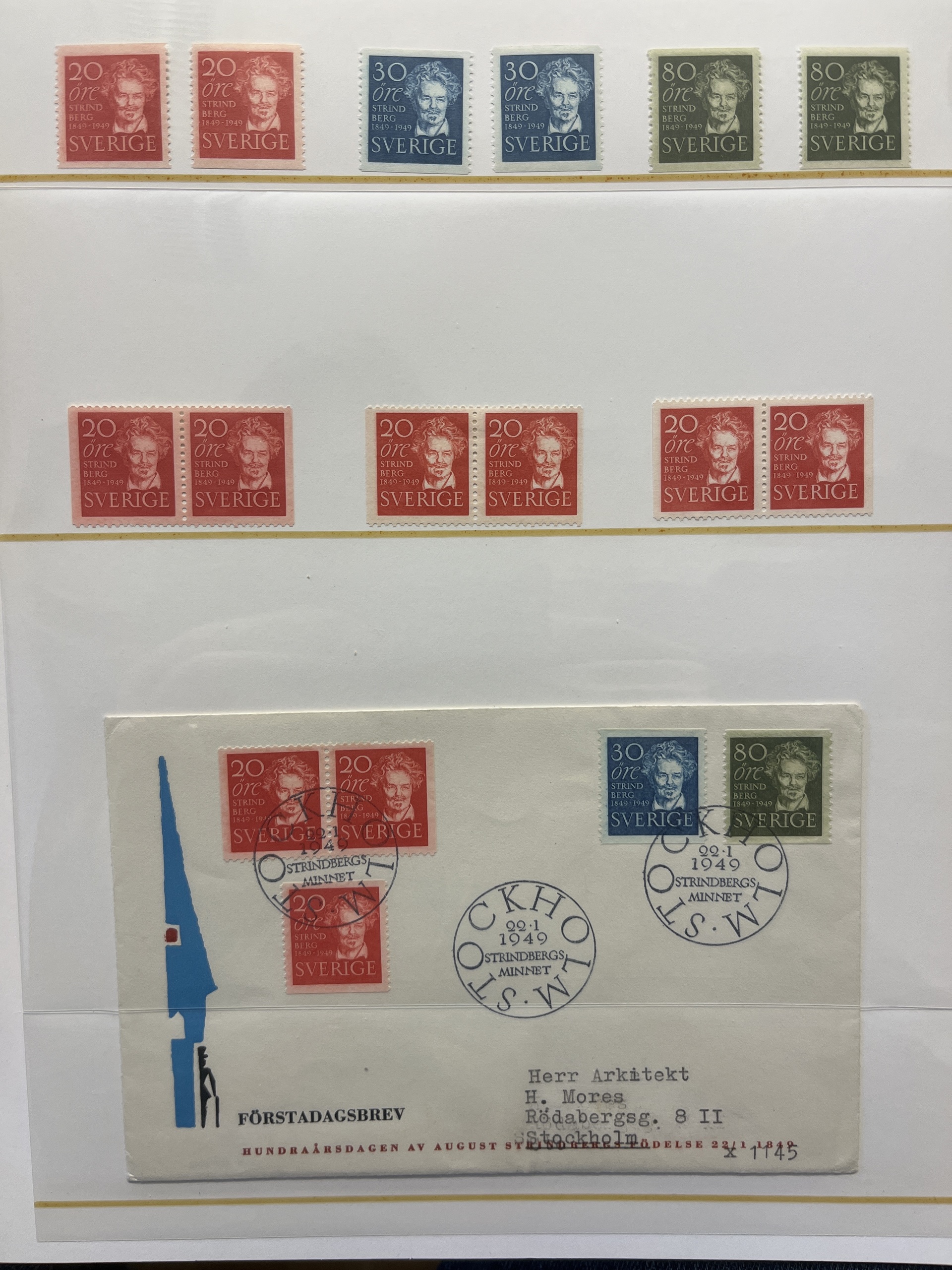 Sweden. Collection ★★ 1944–55 in visir album. Sets and 17 FDCs. In addition Stockholmia -55 in five blocks of nine. Fine quality.
