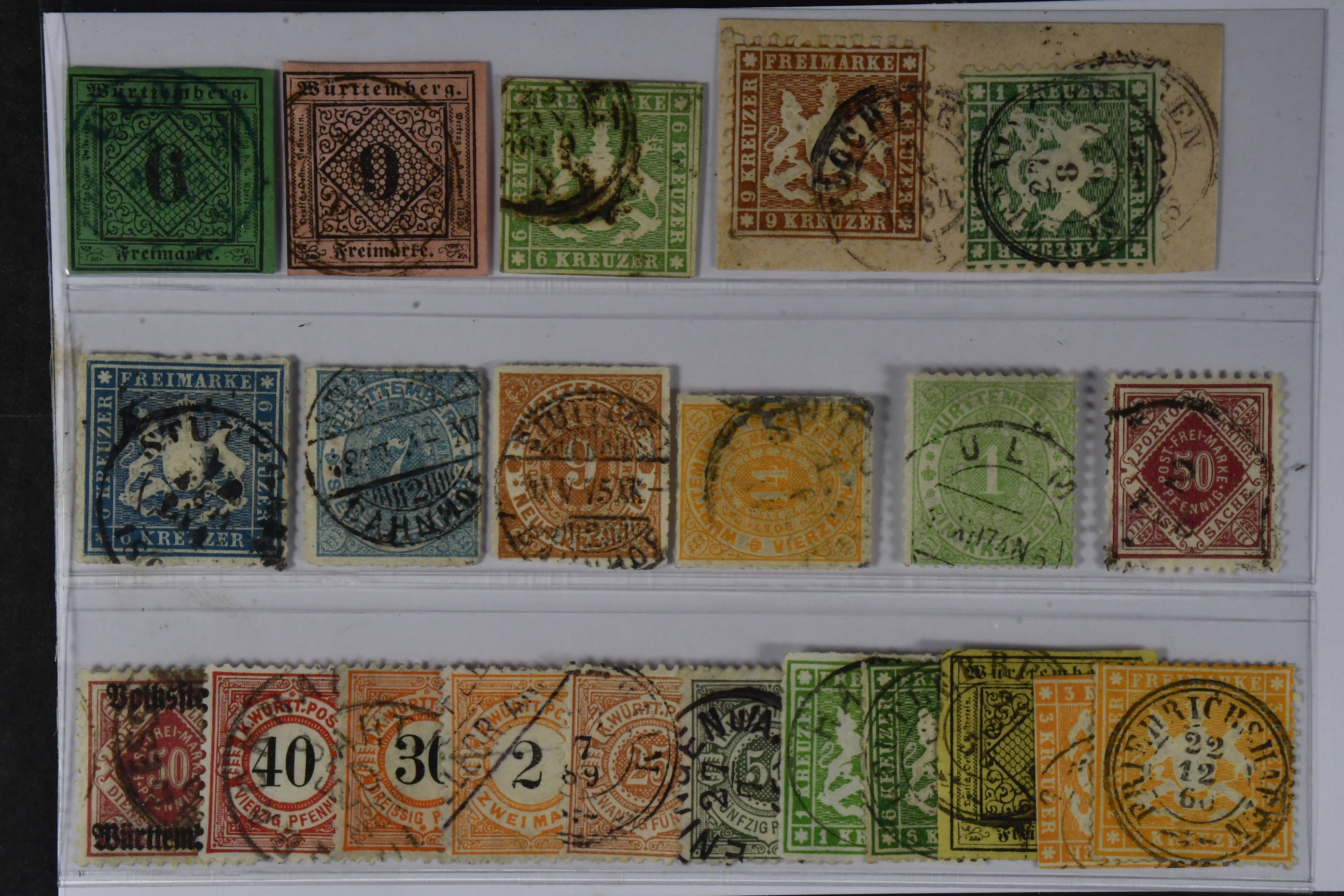 Germany, Württemberg. Used 1851–1916. All different, e.g. Mi 3-4, 8, 18x, 28, 32, 39, 40-41, 43, 118. Mostly good quality. Mi € 768 (22)