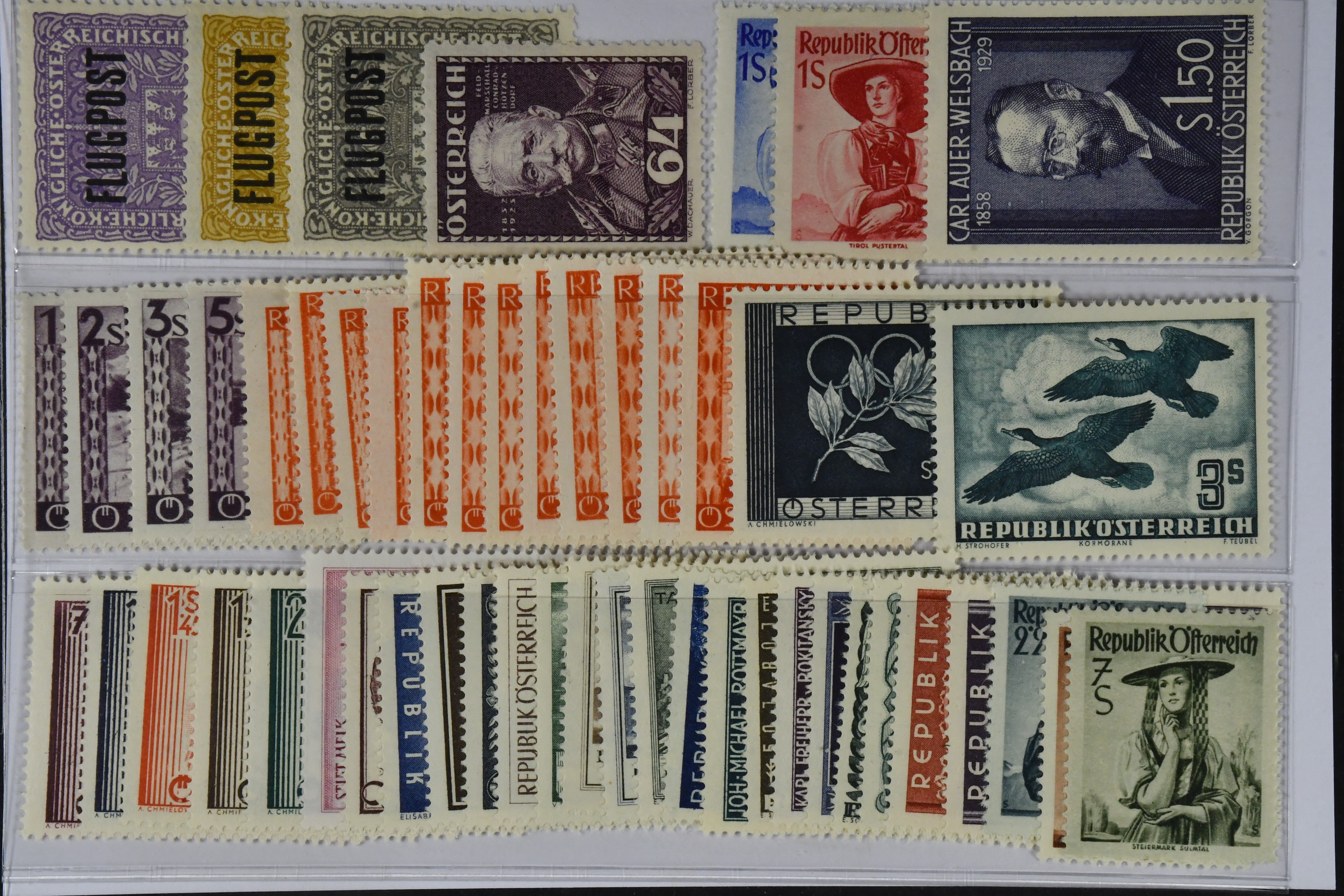 Austria. ★★ 1918–63. All different, e.g. Mi 225-27 x+y, 622, 838-53, 910-11, 969, 985, 1006, 1012-16. Mostly good quality. Mi € 813 (52)