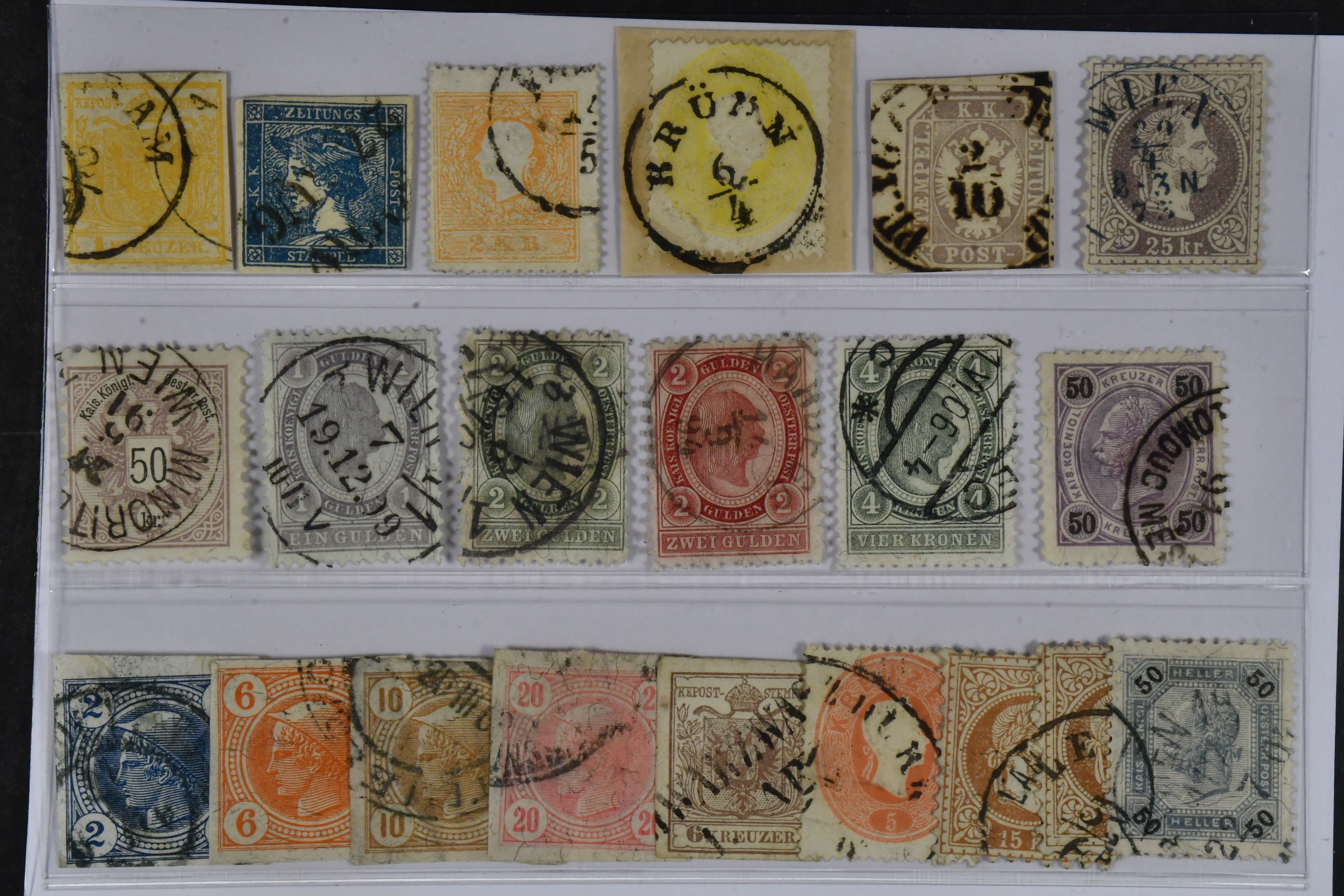 Austria. Used 1850–1901. All different, e.g. Mi 1y, 6, 10 II, 18, 29, 40 I, 49, 62, 68, 83, 101-04. Mostly good quality. Mi € 783 (21)