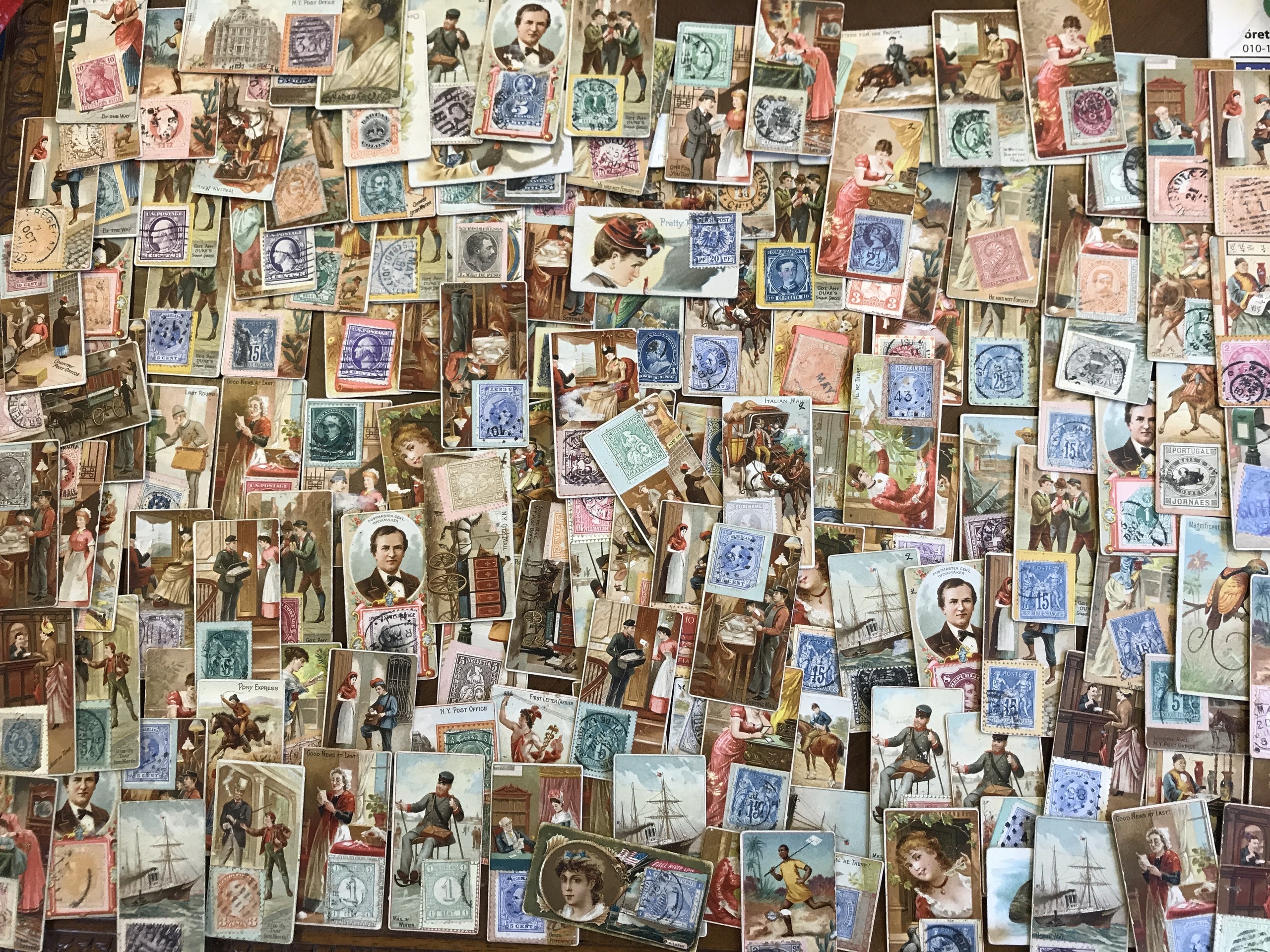 Collectable cards, ALL WORLD. About 135 Dukes Cigarettes Postage stamps. Issued by Duke in the late 1880s.