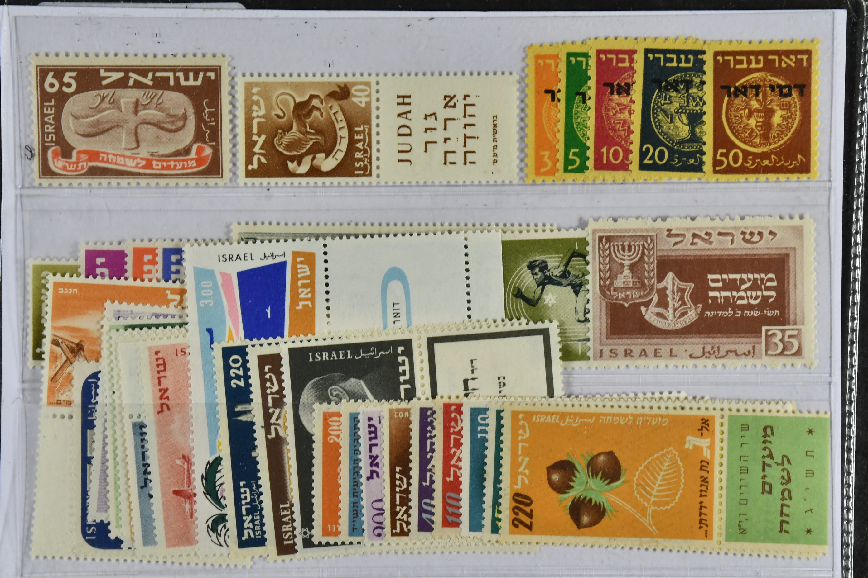 Israel. ★★ 1948–60. All different, e.g. Mi 14, 54 (half tab), 66 (half tab), 73-76, 80-86, 154, postage due 1-5. Mostly good quality. Mi € 888 (38)