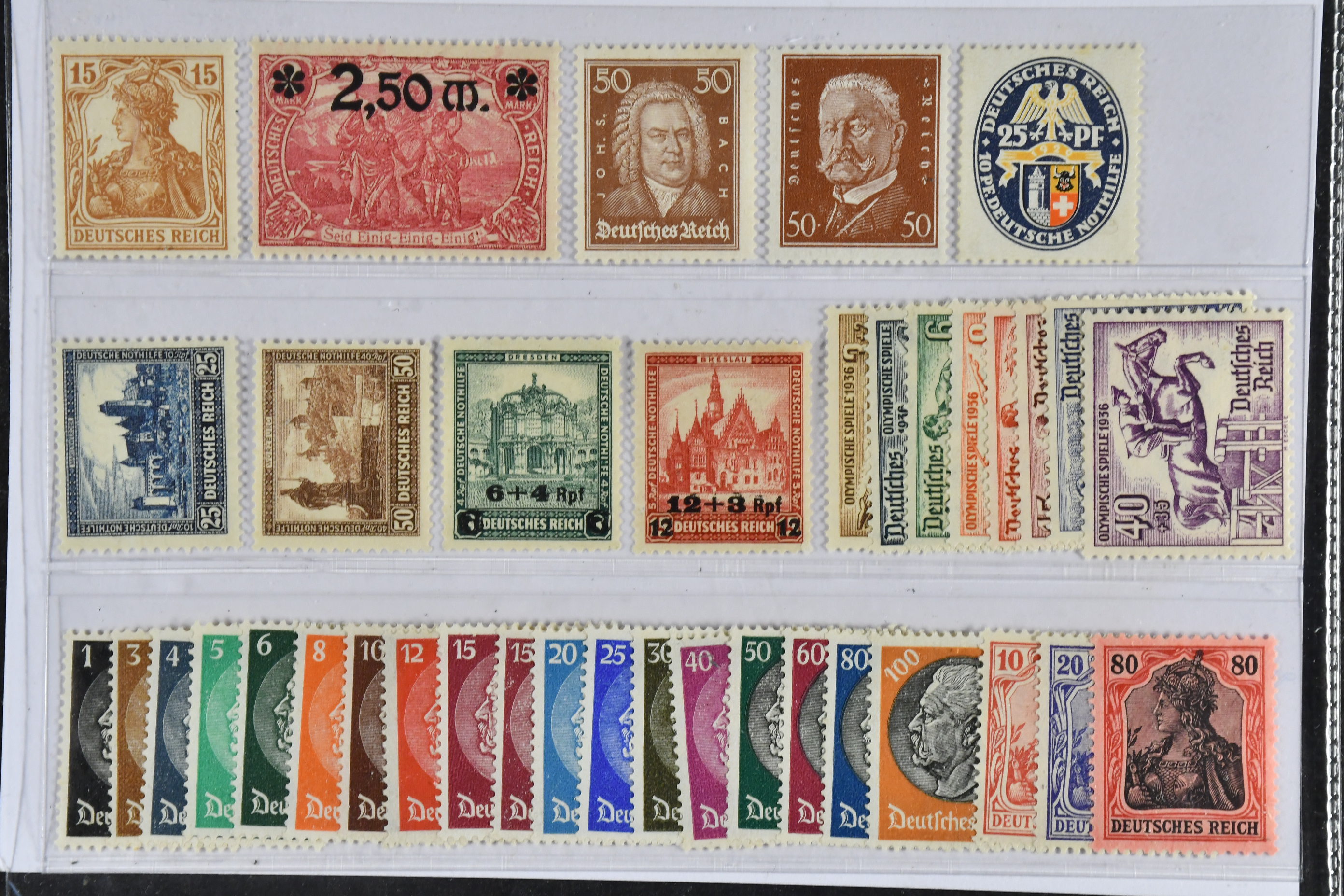 Germany, Reich. ★★ 1905–36. All different, e.g. Mi 100, 118, 396, 420, 433, 452-53, 463-64, 512-28, 609-16. Mostly good quality. Mi € 881 (37)