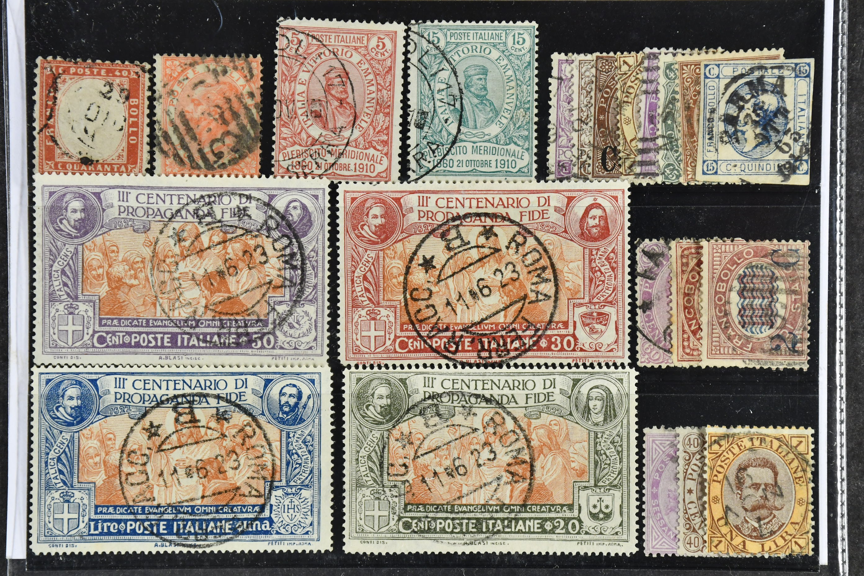 Italy. Used 1862–1923. All different, e.g. Mi 11, 22, 97-98, 161-64 (FDC-canc.). Mostly good quality. Mi € 817 (22)