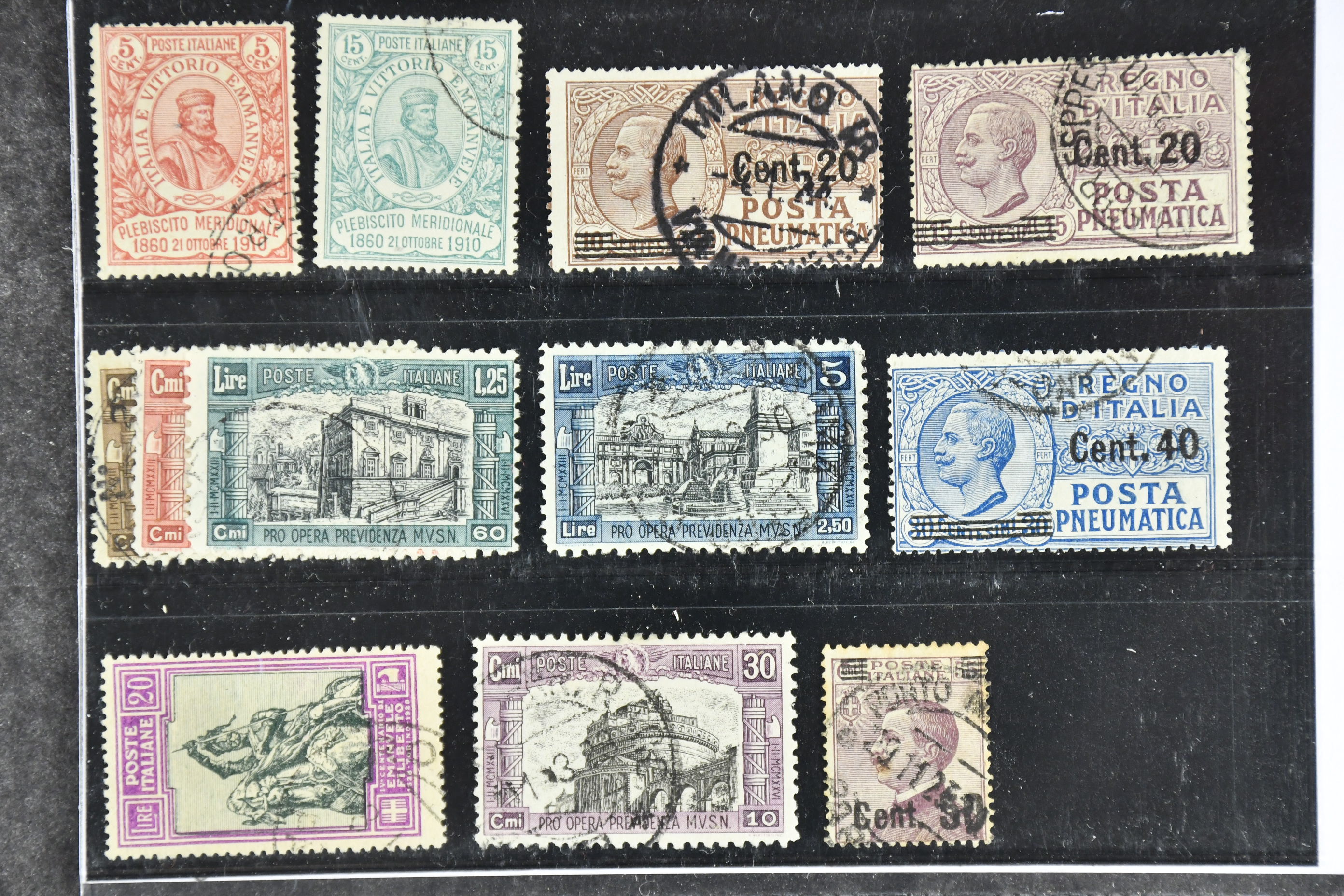 Italy. Used 1910–28. All different, e.g. Mi 97-98, 214-16, 249-52, 294B. Mostly good quality. Mi € 1.110 (12)