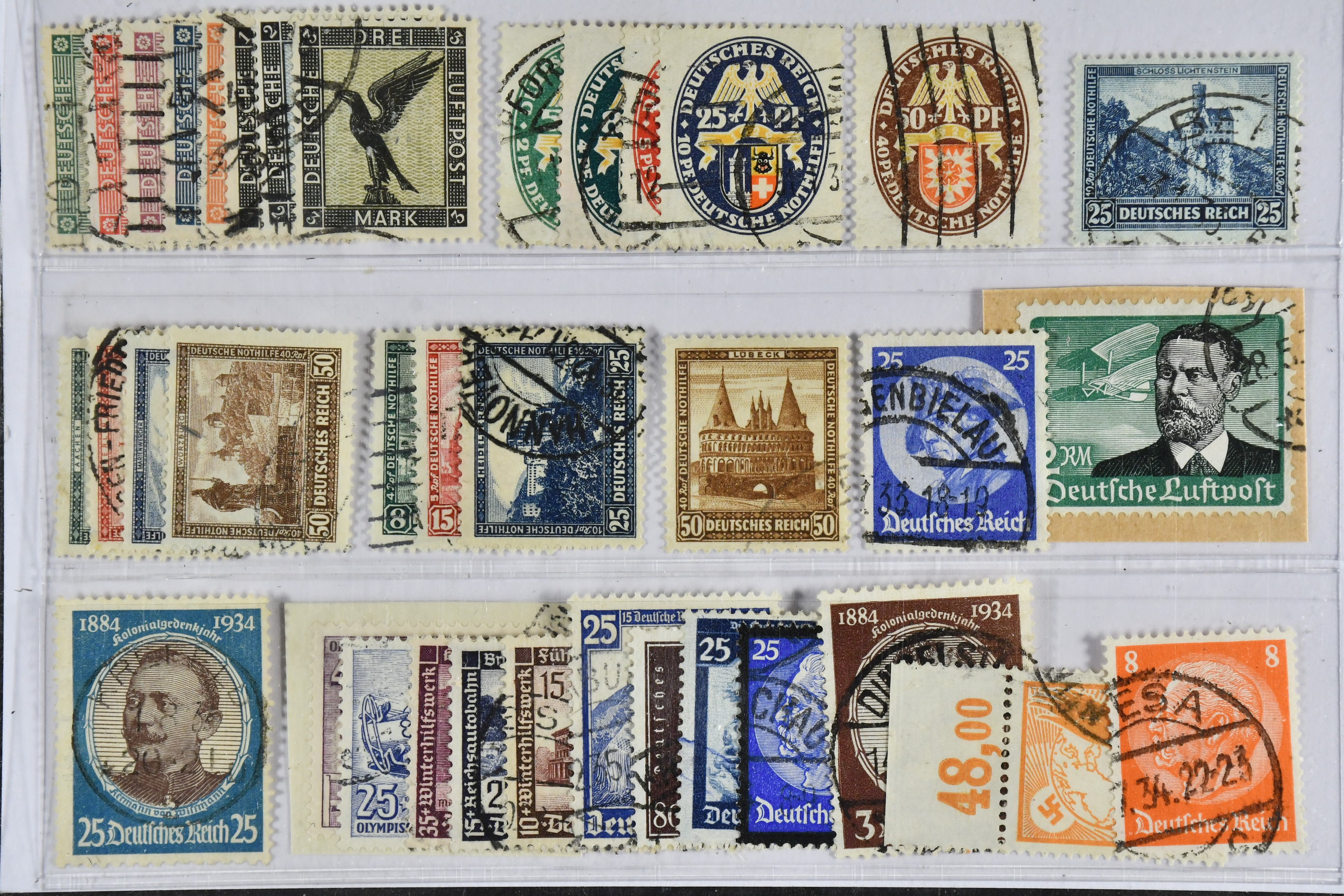 Germany, Reich. Used 1926–36. All different, e.g. Mi 378-84, 430-34, 450-53, 459-62, 477, 481, 538, 543. Mostly good quality. Mi € 1.007 (37)