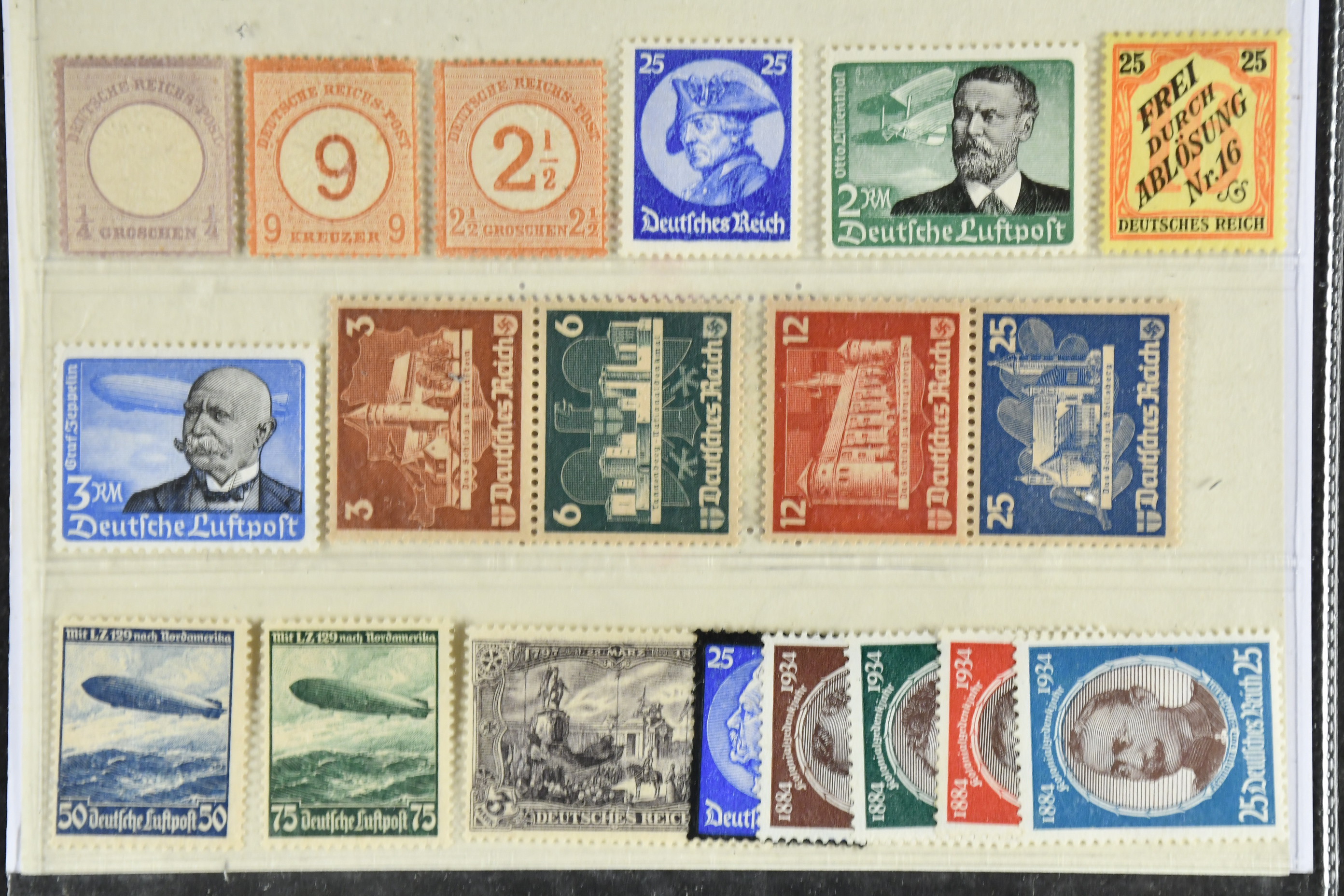 Germany, Reich. ★ 1872–1937. All different, e.g. Mi 16, 29-30, 481, 538-39, 576-79, 606-07, souv. sheet 10, official 14. Mostly good quality. Mi € 748 (20)