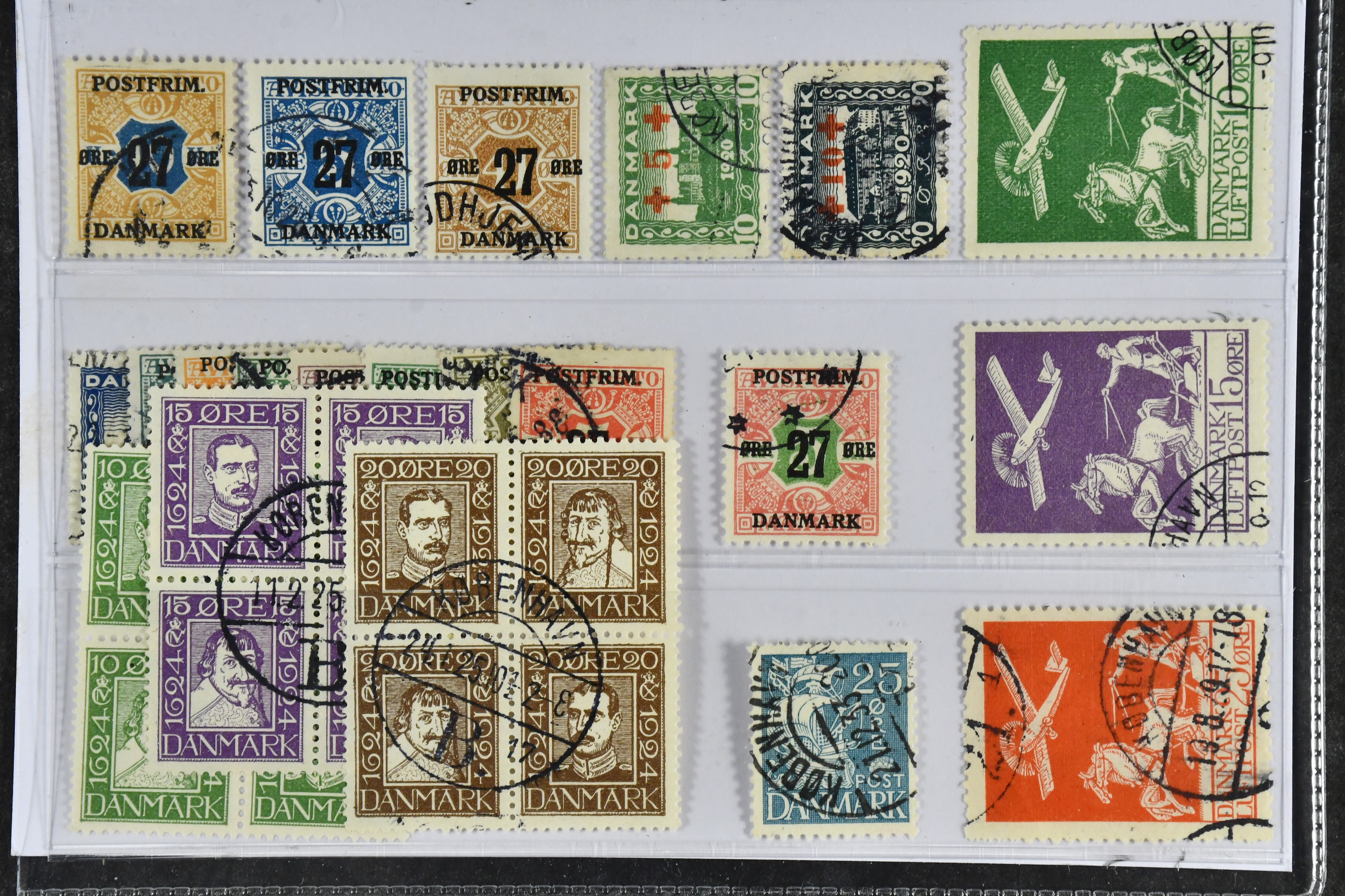 Denmark. Used 1918–40. All different, e.g. F 183, 185, 192, 199-200, 201-12 (3 diff. sheets), 213-15, 231. Mostly good quality. F SEK 6005 (21)