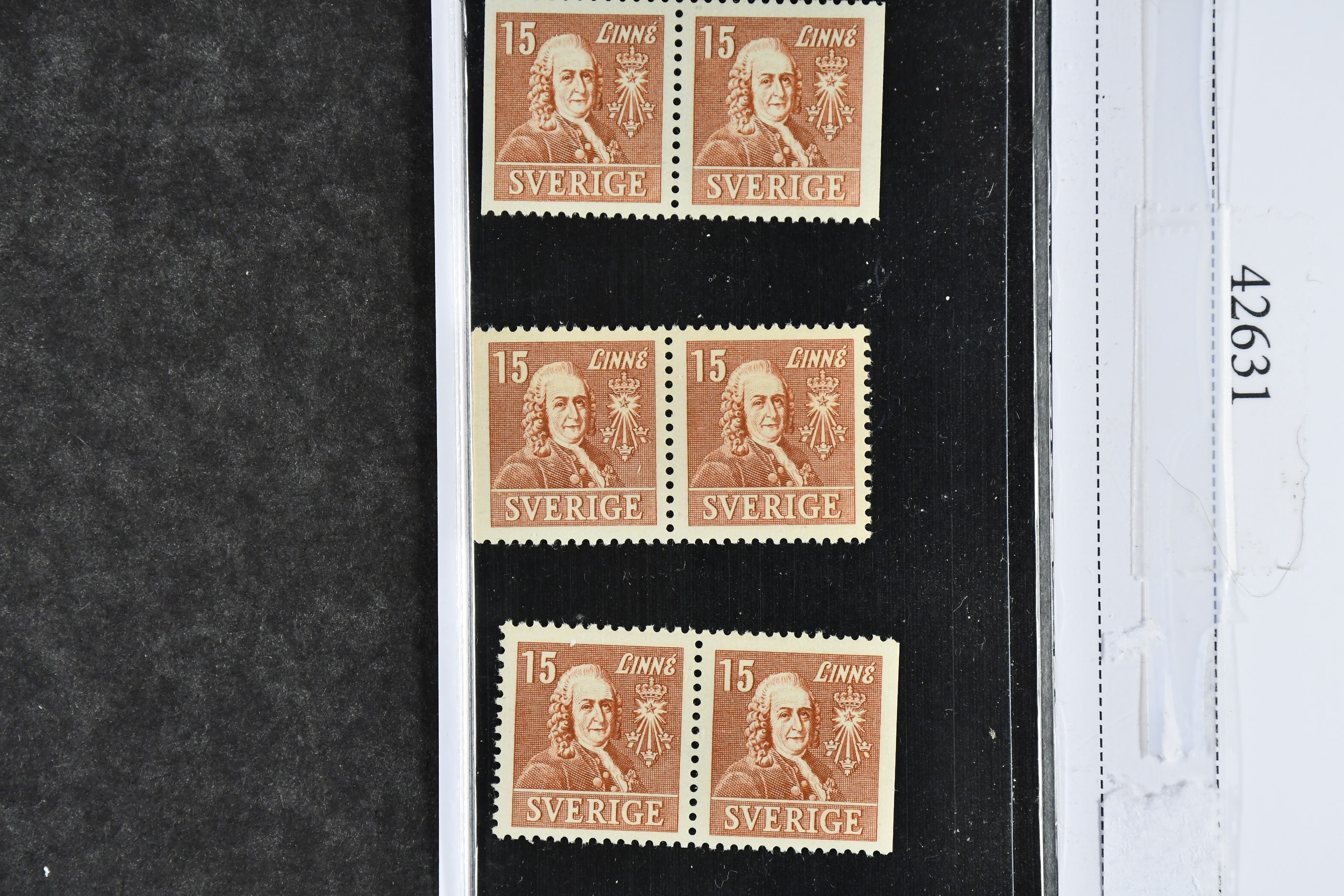 Sweden. Facit 321BC/CB/BB ★★, 1939 Royal Academy of Sciences 15 öre brown, pair 3+3, 3+4 and 4+3. SEK 3820