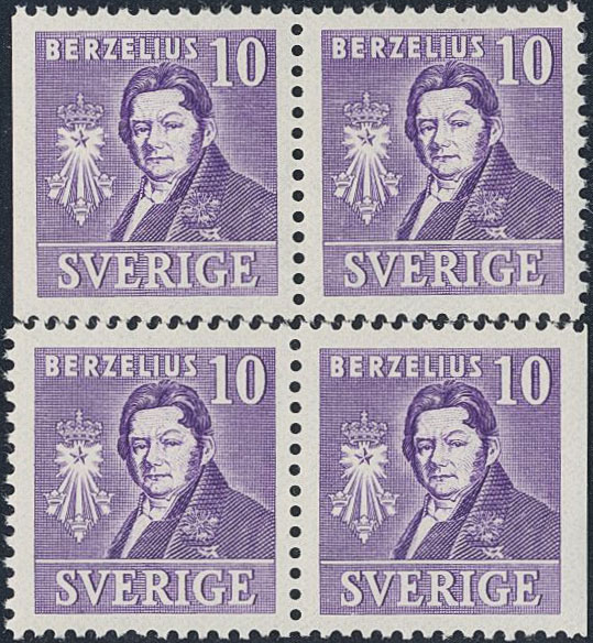 Sweden. Facit 320BC/CB ★★, 1939 Royal Academy of Sciences 10 öre violet, pair 3+4 and 4+3. SEK 3400