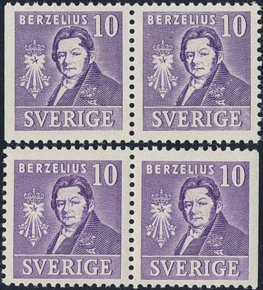 Sweden. Facit 320BC/CB ★★, 1939 Royal Academy of Sciences 10 öre violet, pair 3+4 and 4+3. SEK 3400