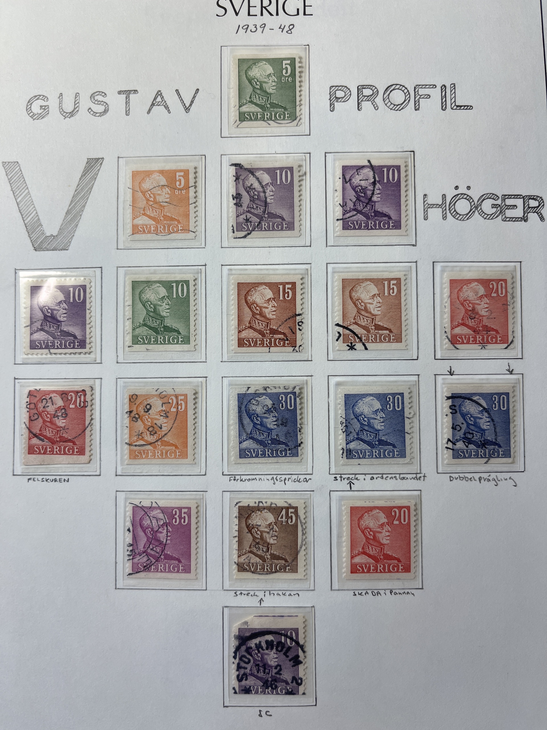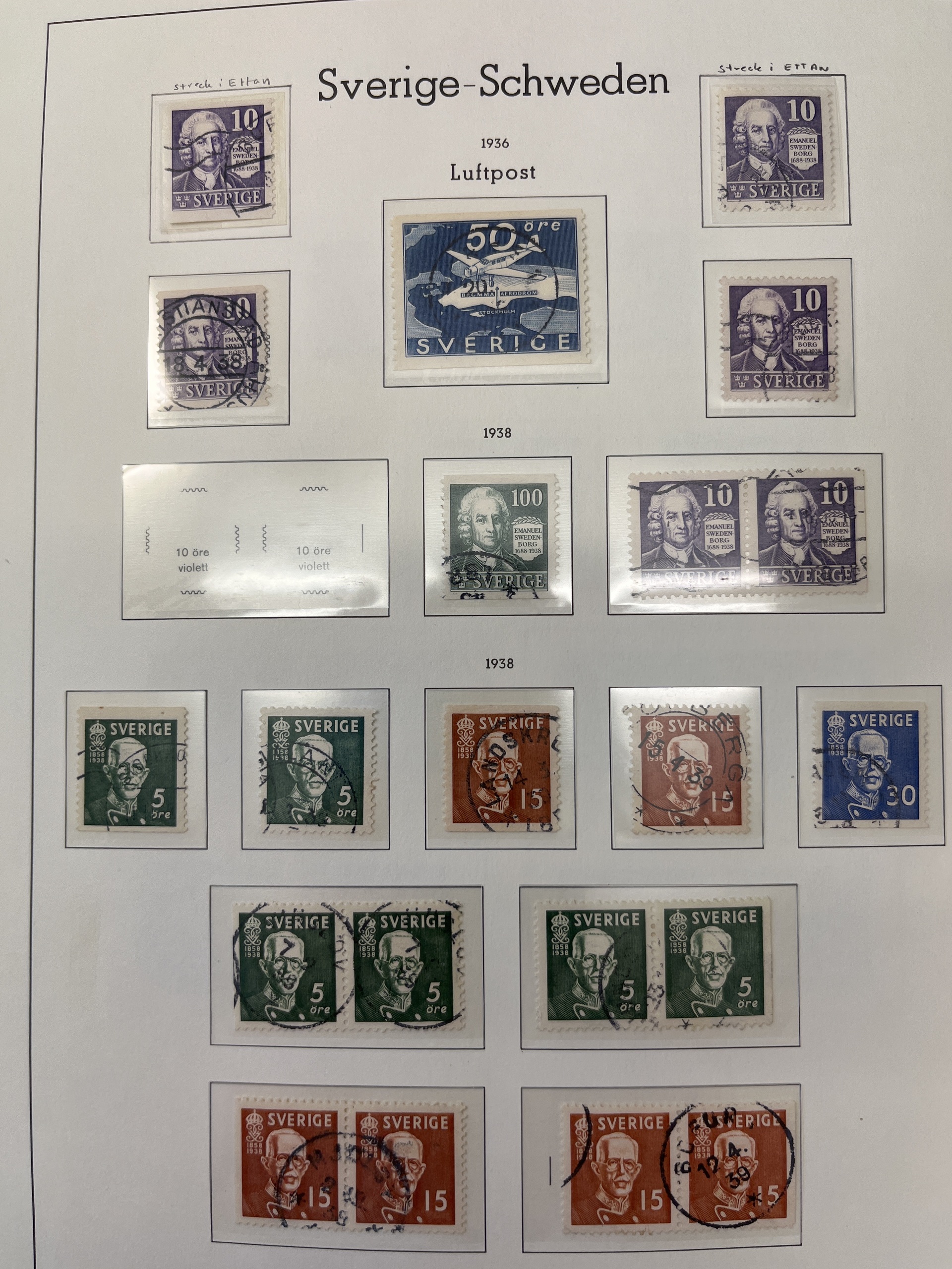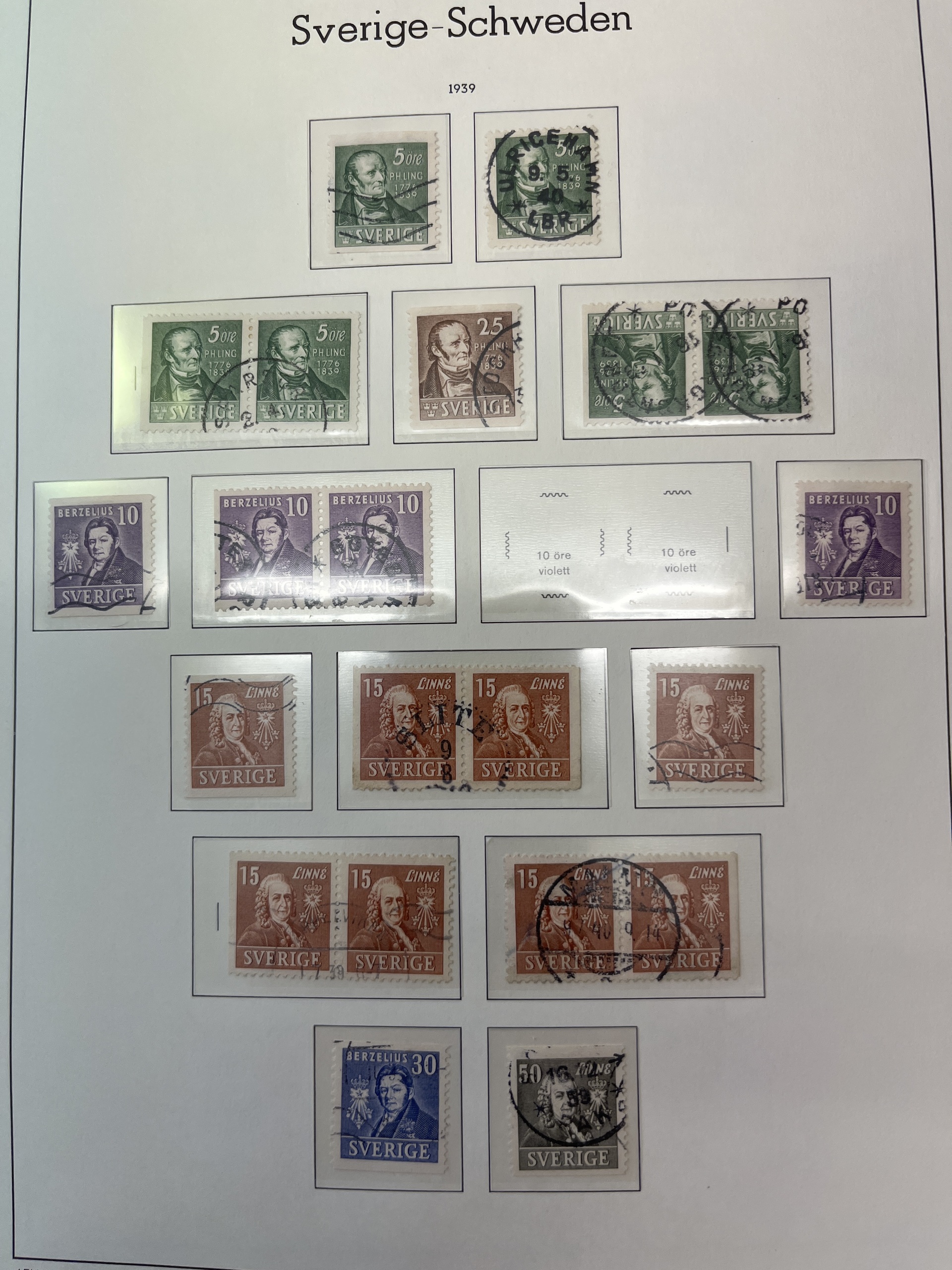 Sweden. Collection used 1936–55 in Leuchtturm leaves incl. some BC/CB-pairs. Somewhat mixed quality.