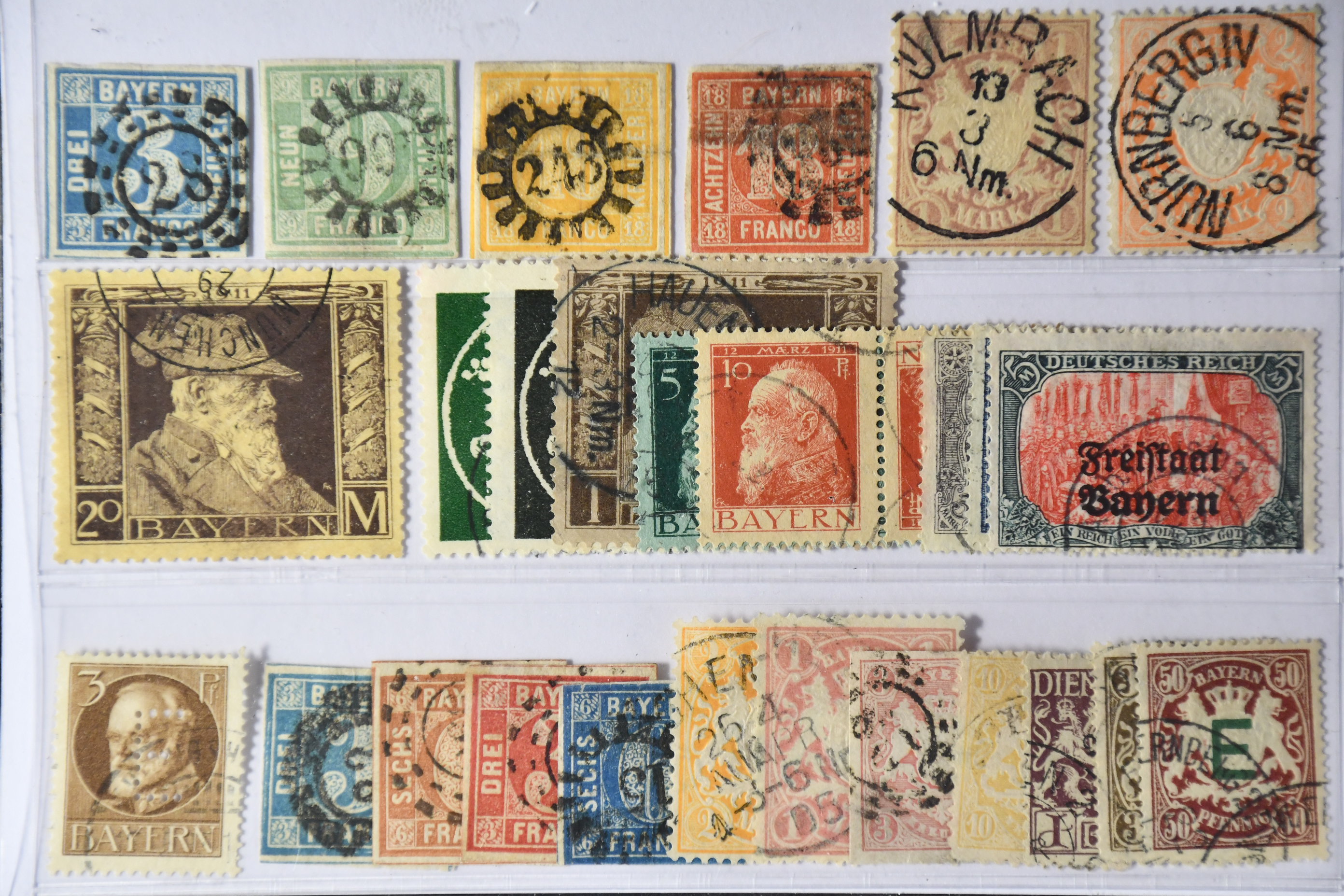 Germany, Bavaria. Used 1849–1920. All different, e.g. Mi 2 I, 5, 7, 13, 43-44, 91 II, 194-95, Officals 12, K2 II. Mostly good quality. Mi € 1.564 (28)
