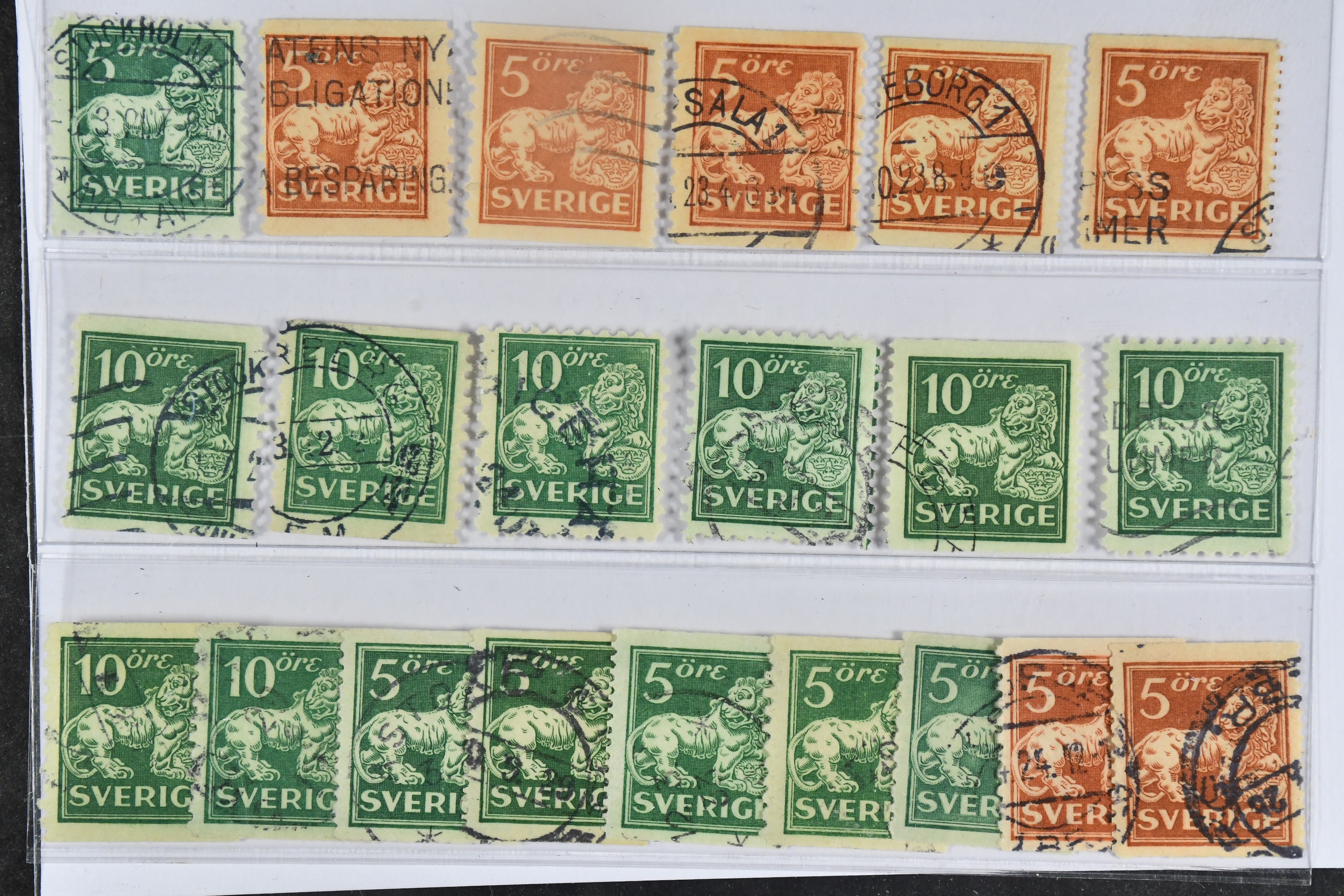 Sweden. Used 1920–34. Standing Lions. All different, e.g. F 140Ccx, 141a, 141bz, 142Abz, 142Ed, 142Ecc, 144Acc+cz, 144Cbz+Ccx+Ccxz+Ecx. Mostly good quality. F SEK 13495 (21)