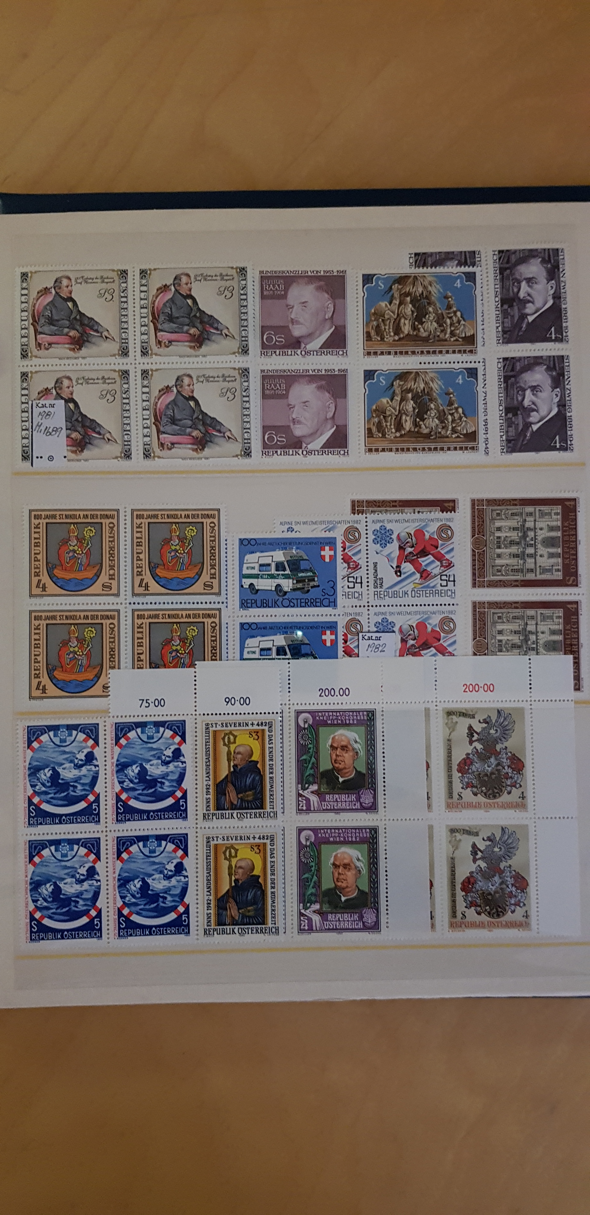 Austria. Collection/accumulation mostly ★★ 1900s in two albums without stamp mounts. 2ea albums including only 4-blocks mainly unused in two albums. Please see a selection of scans at www.philea.se. Fine quality.