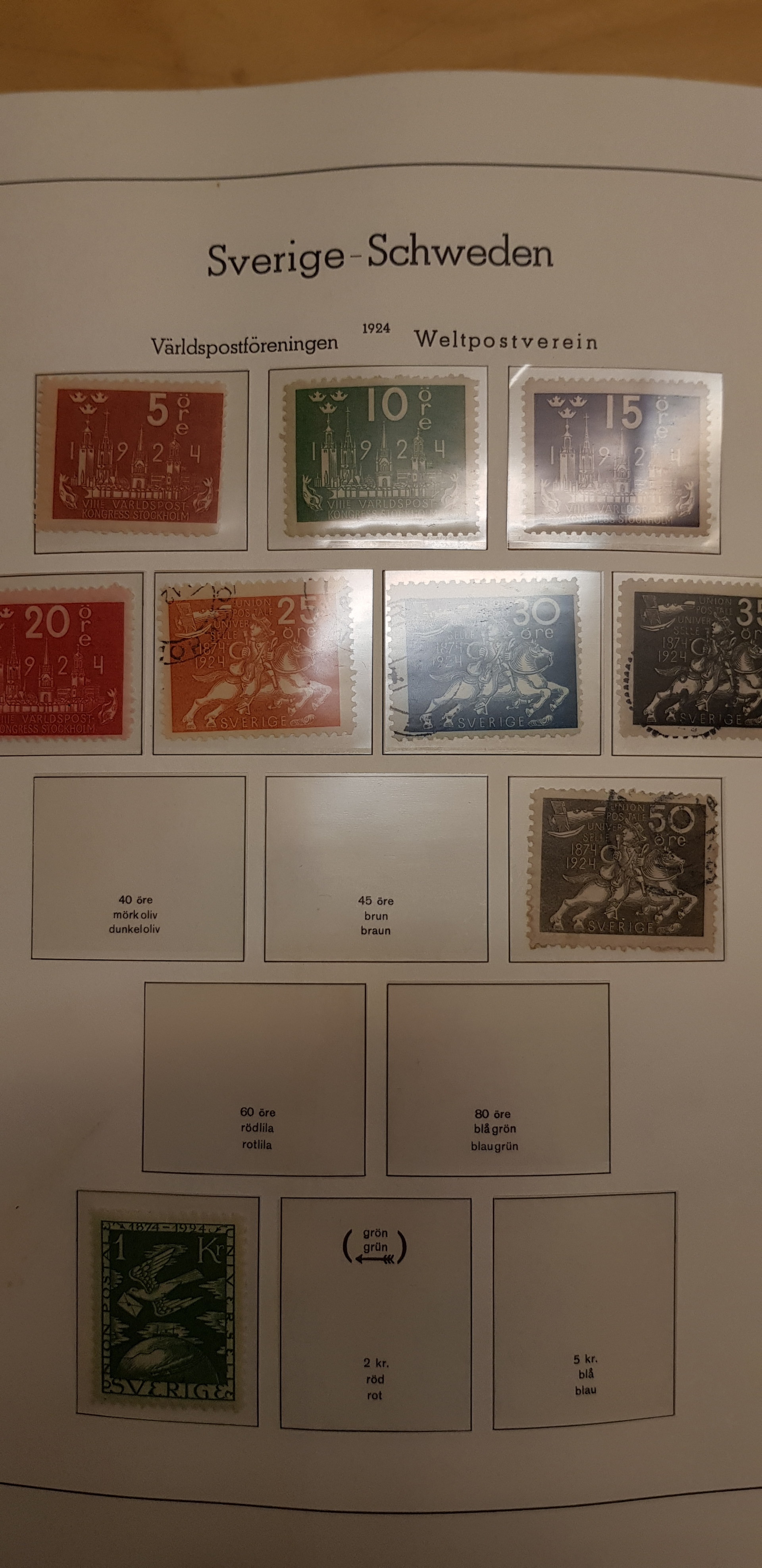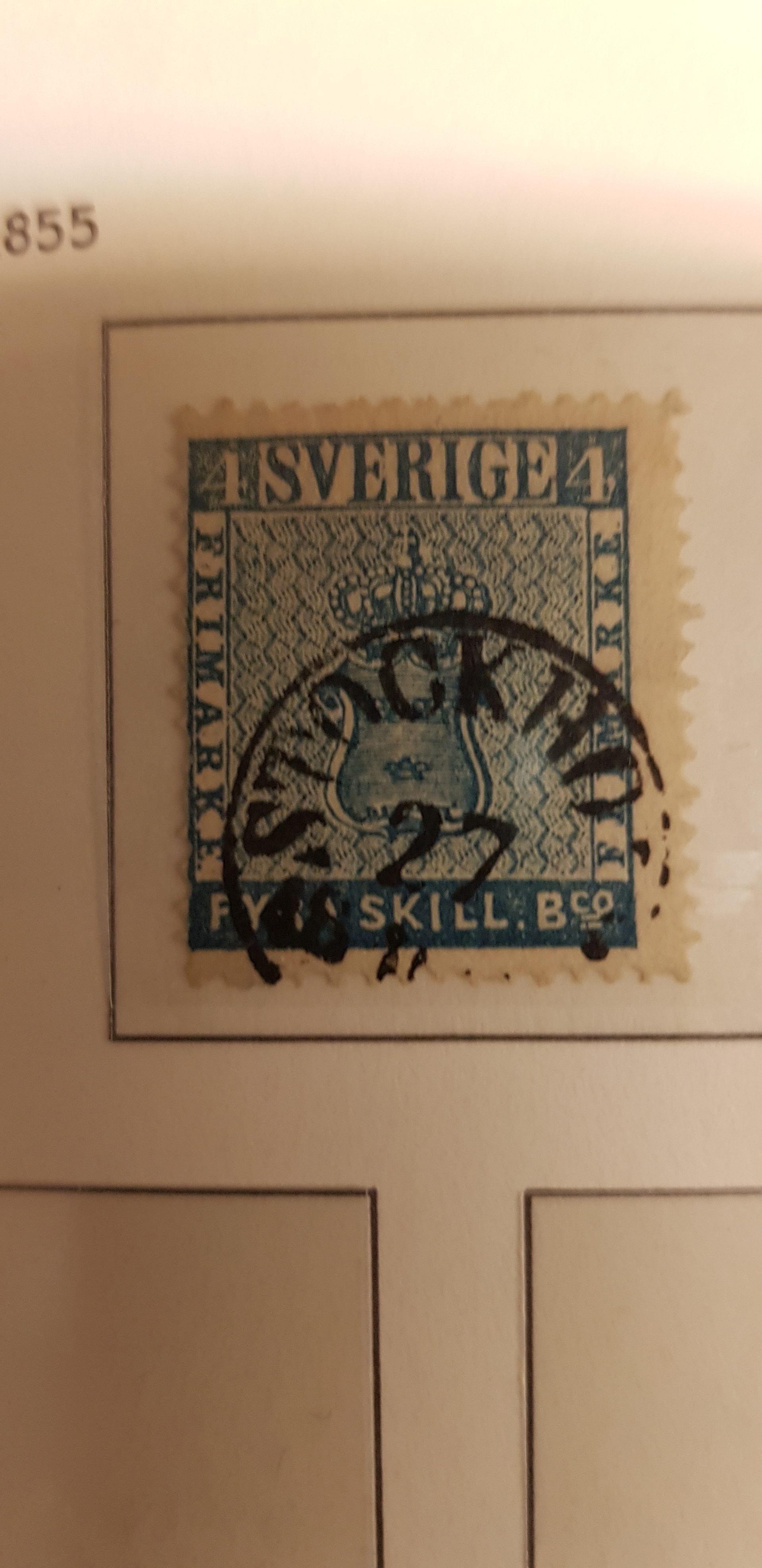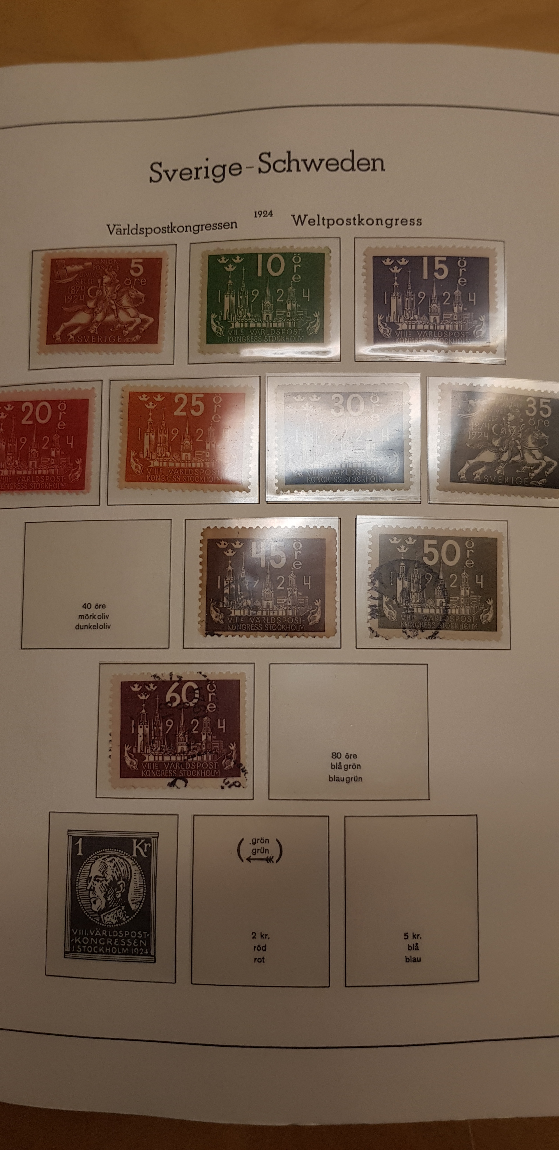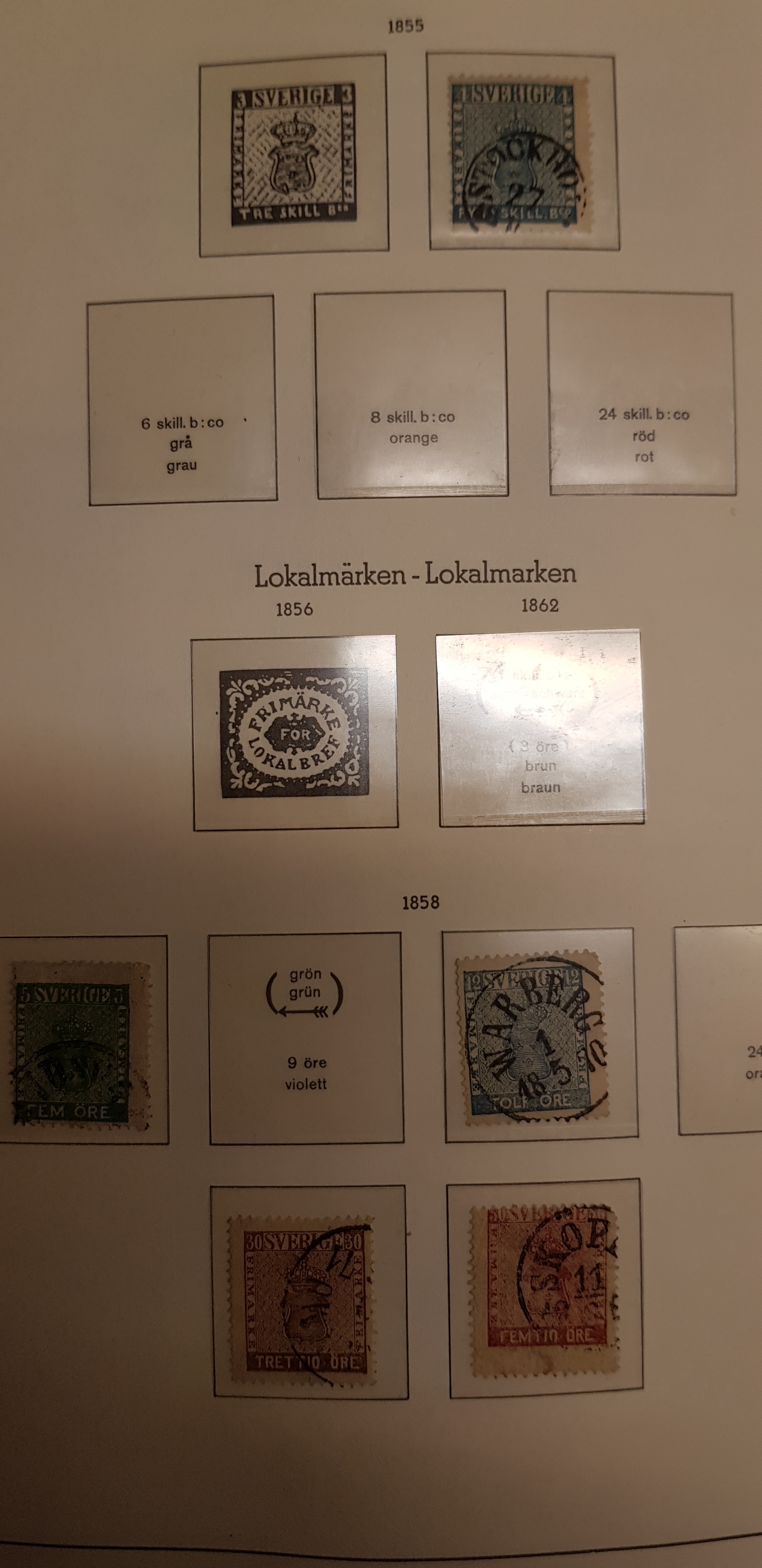 Sweden. Collection ★★/★/⊙ 1855–1973 in Leuchtturm album without stamp mounts. According to the owner the value of this assembly is 19000 SEK. The 4-shilling banco is good, there are also some 3+4 and 4+3 combinations. Please see a selection of scans at www.philea.se. Mostly fine quality. (>1000)