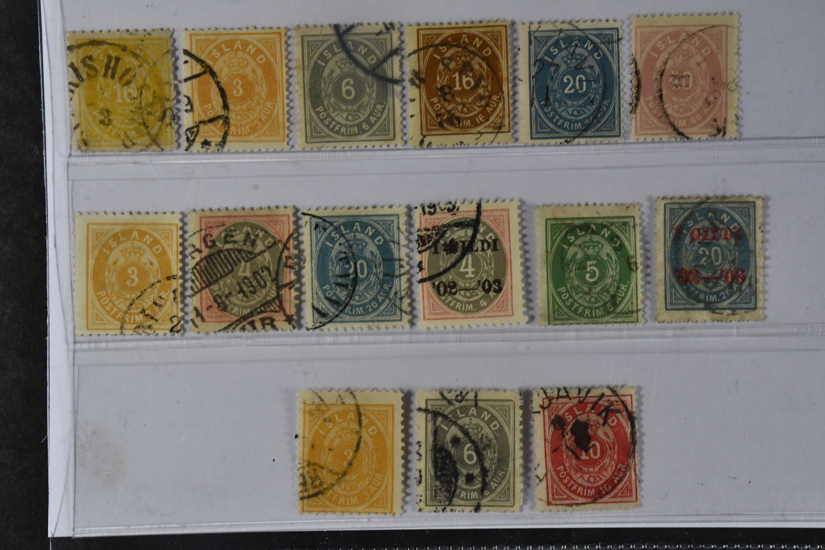 Iceland. Used 1873–1902. All different, e.g. F 7, 8, 11, 13, 15, 17, 21-22, 28, 50. Mostly good quality. F SEK 9035 (15)