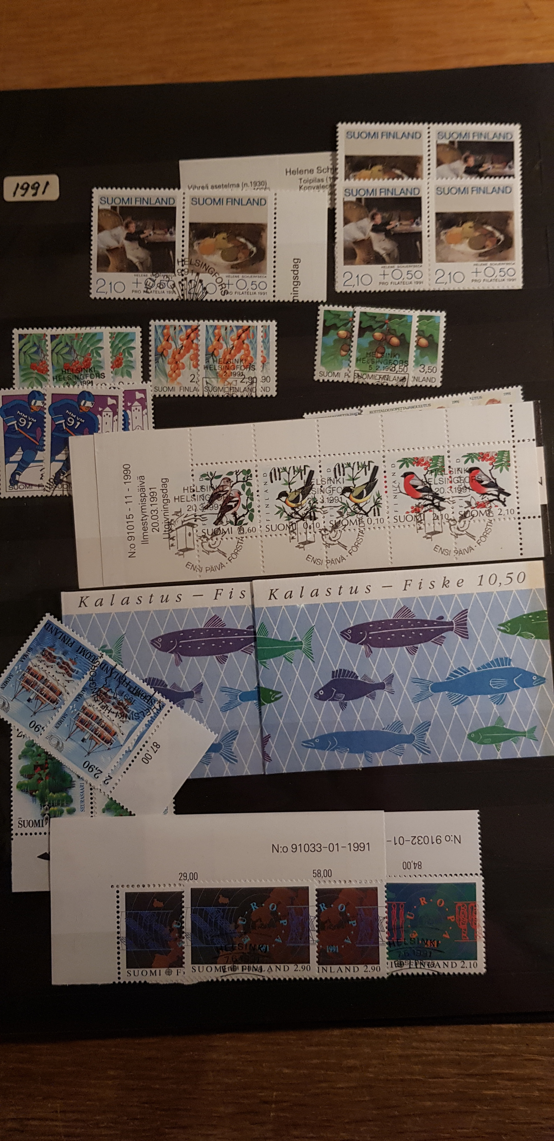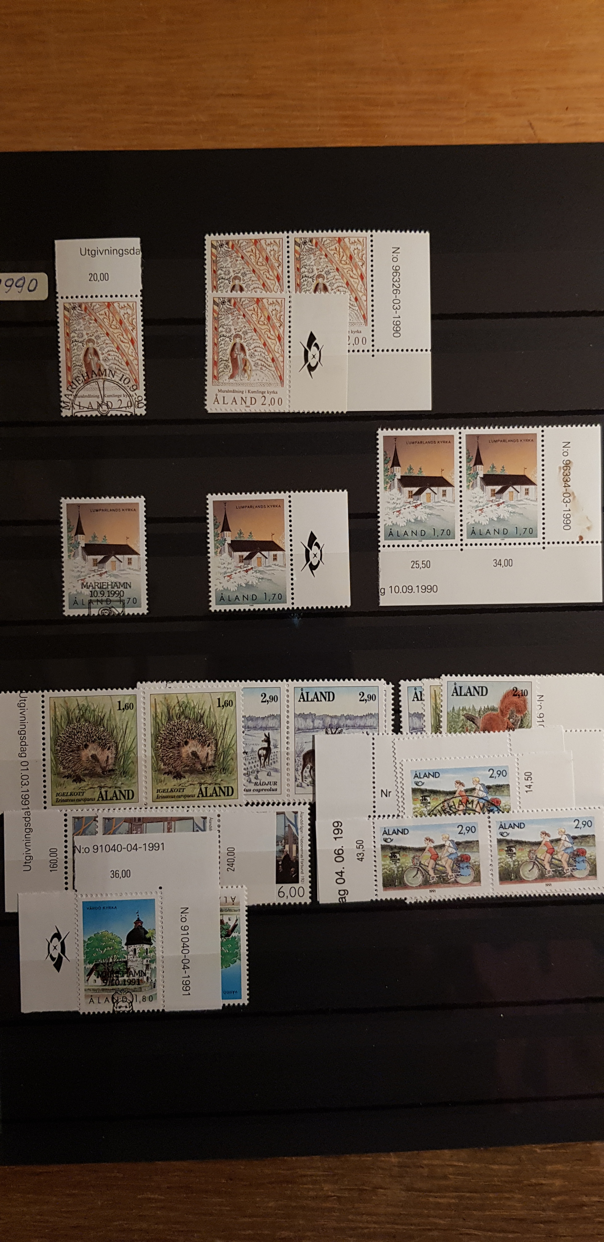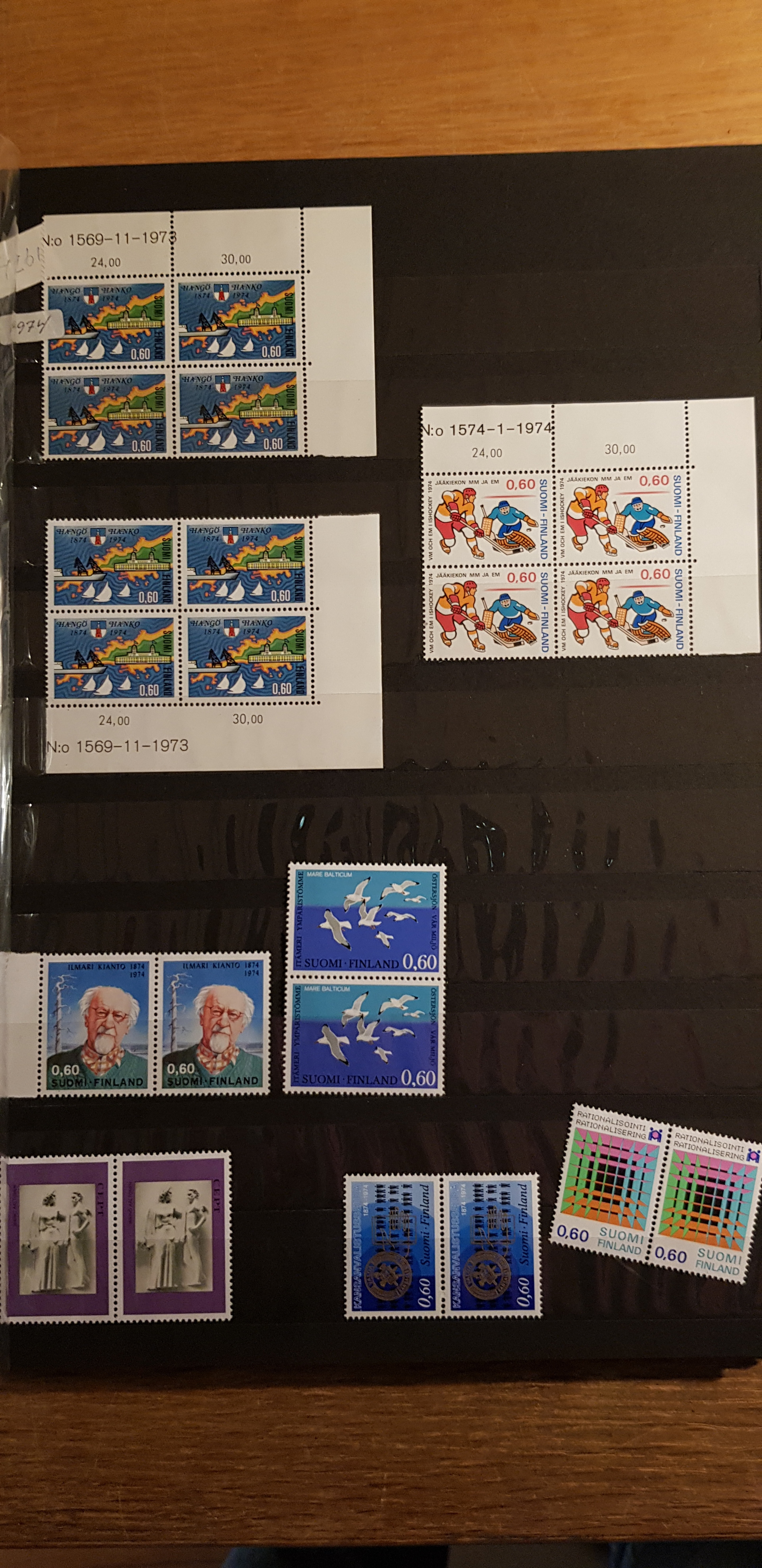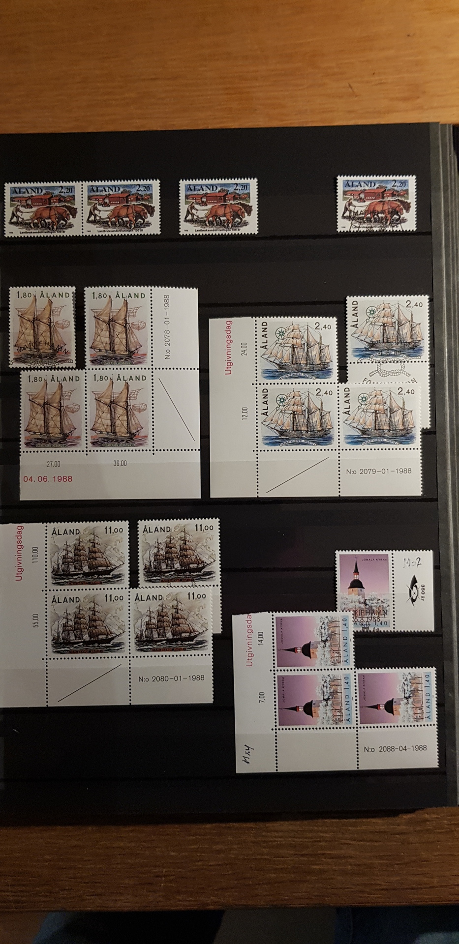 Finland. Collection/accumulation mostly ★★ 1900s in album without stamp mounts. In five stockbooks there are a assembly of Finland and Åland in unused or used stamps as singles or in bloocks and souvenir sheets. Please see a selection of scans at www.philea.se. Mostly fine quality. Approx. 8 kg. (>5000)