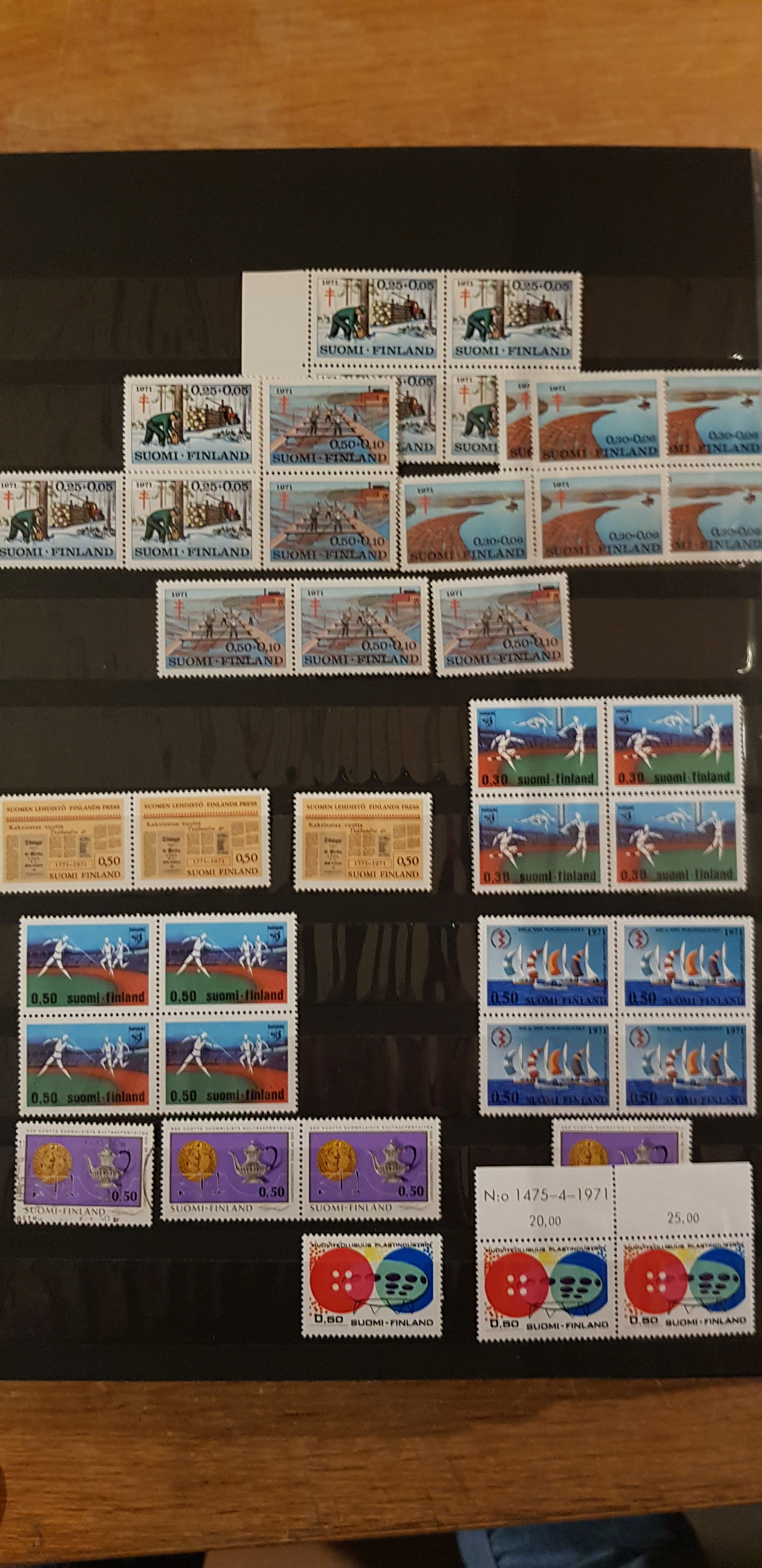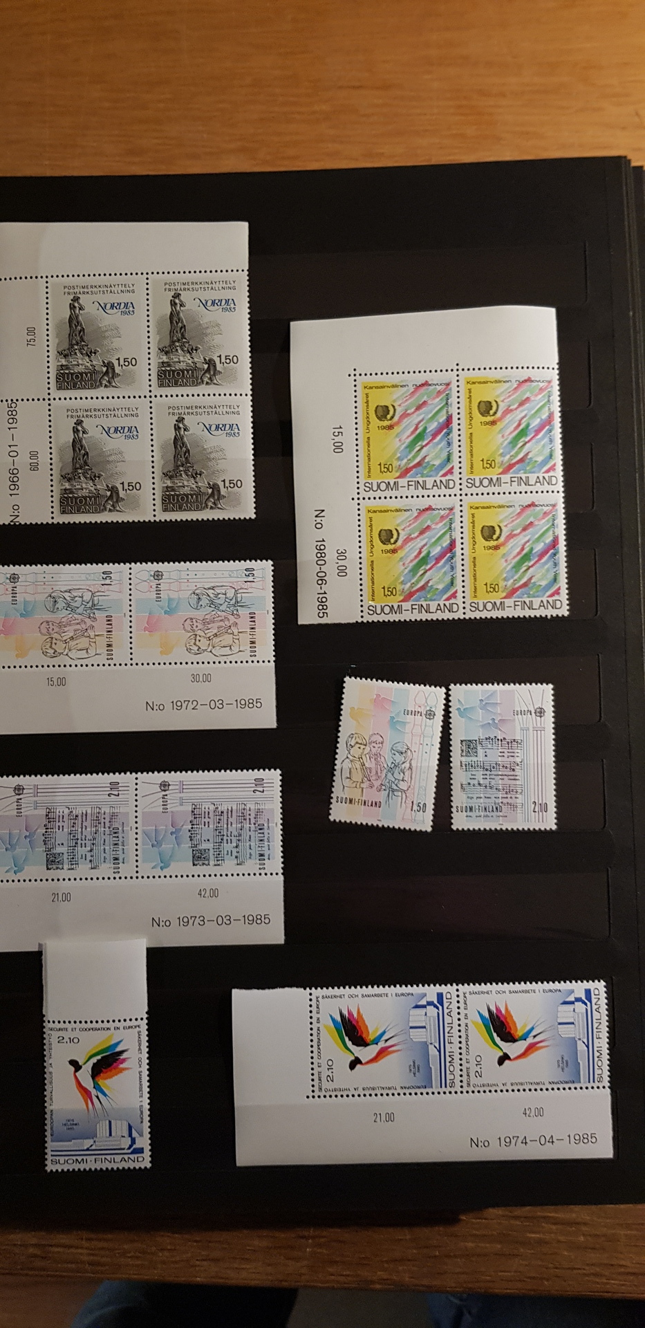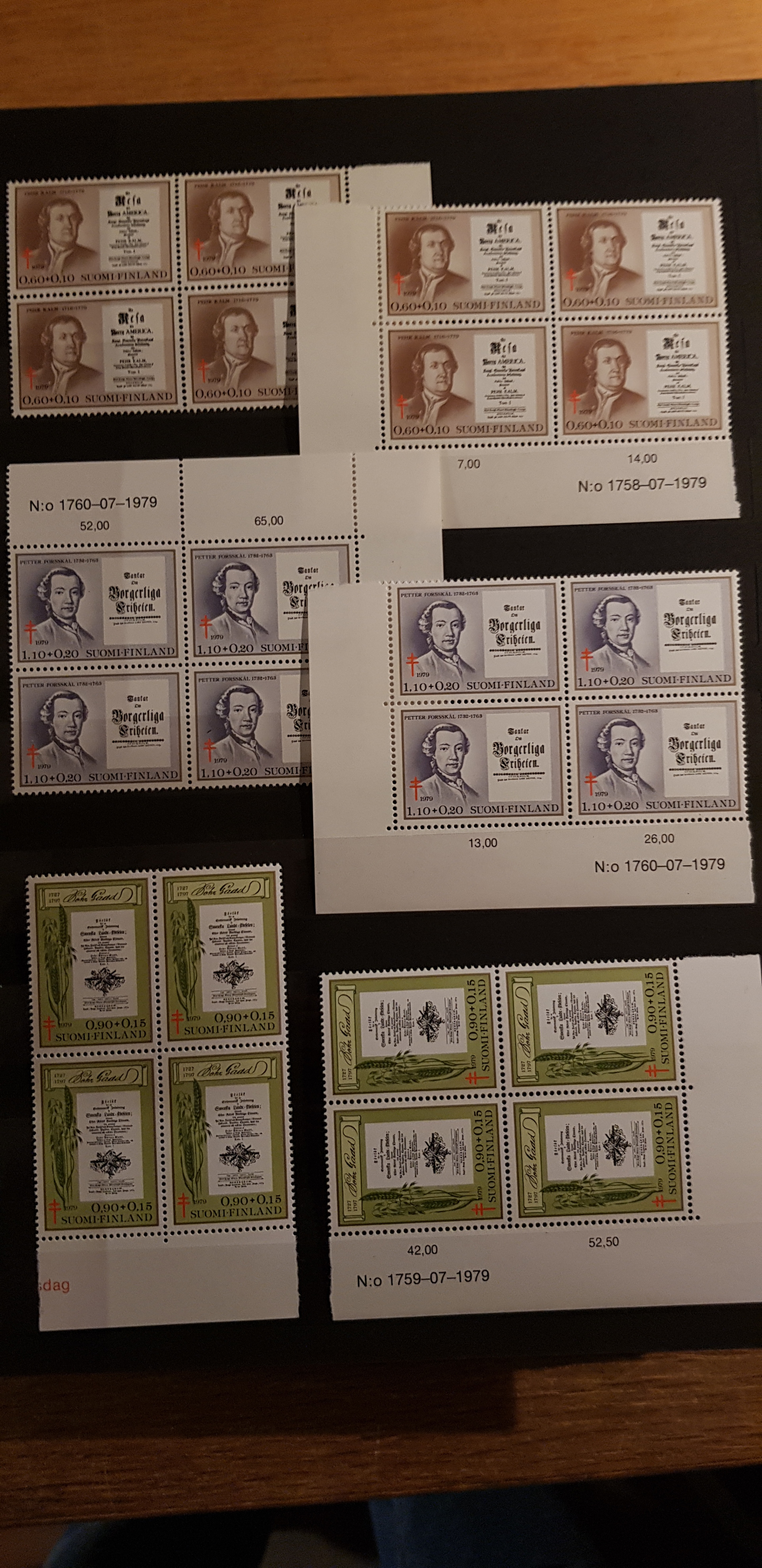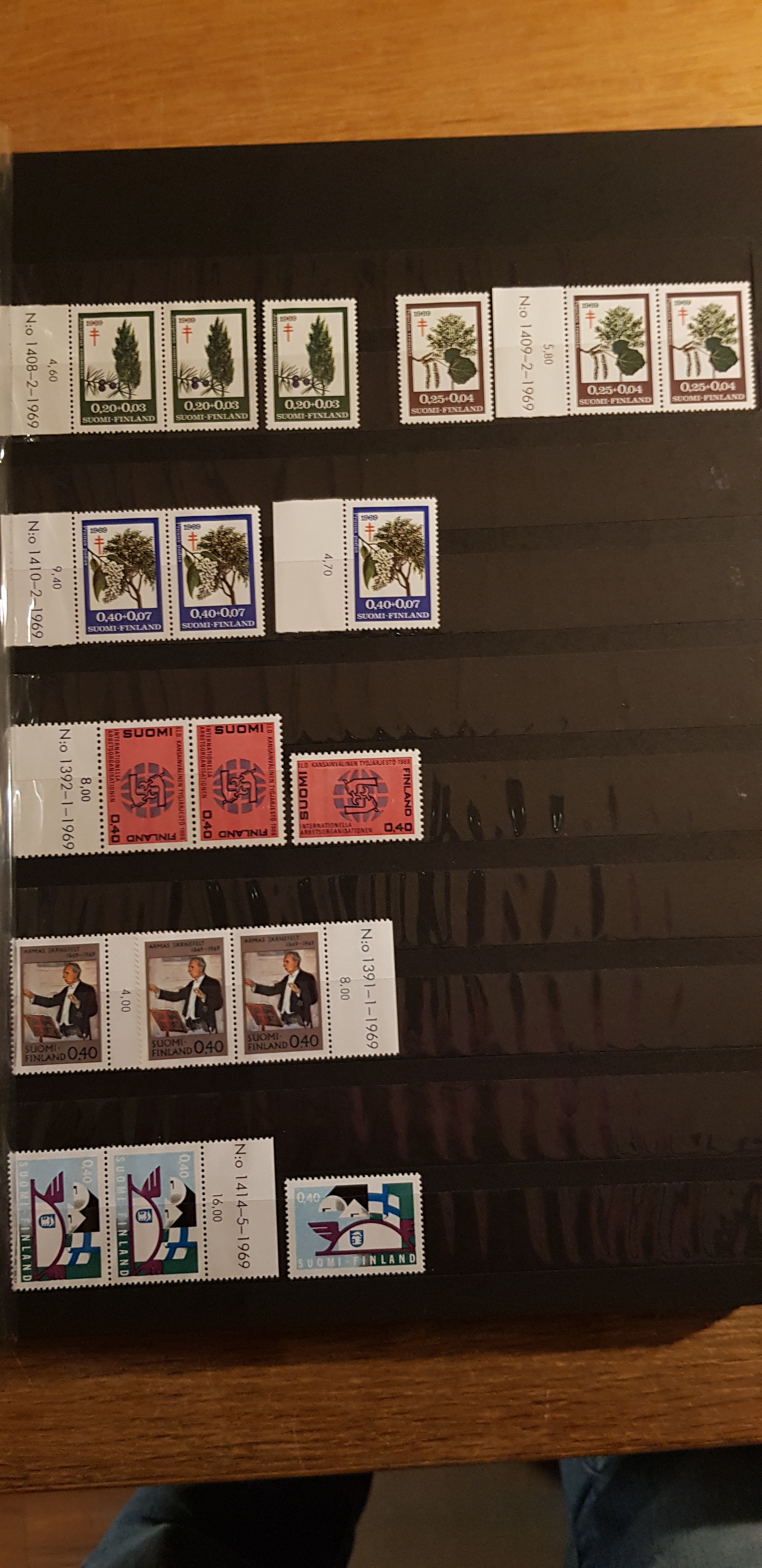 Finland. Collection/accumulation mostly ★★ 1900s in album without stamp mounts. In five stockbooks there are a assembly of Finland and Åland in unused or used stamps as singles or in bloocks and souvenir sheets. Please see a selection of scans at www.philea.se. Mostly fine quality. Approx. 8 kg. (>5000)