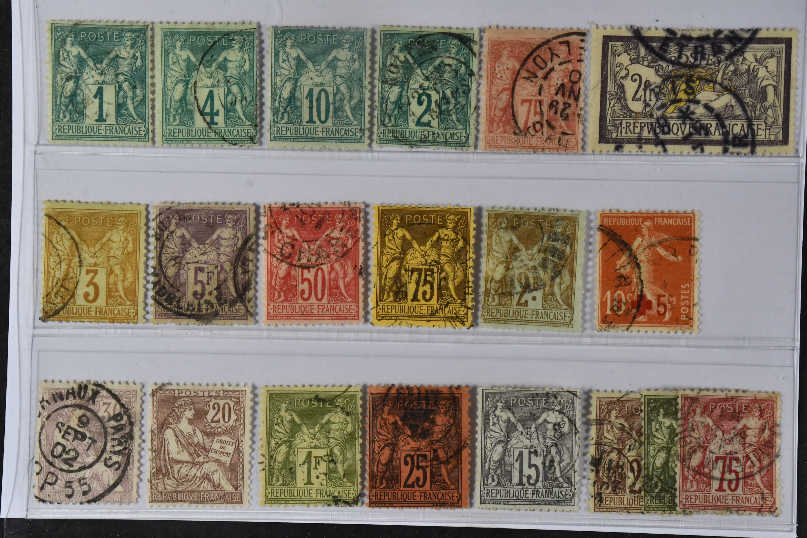 France. Used 1876–1914. All different, e.g. Mi 56 I, 58 I, 60 I, 57 II, 66 II, 70, 76, 81-82, 85, 99. Mostly good quality. Mi € 618 (20)