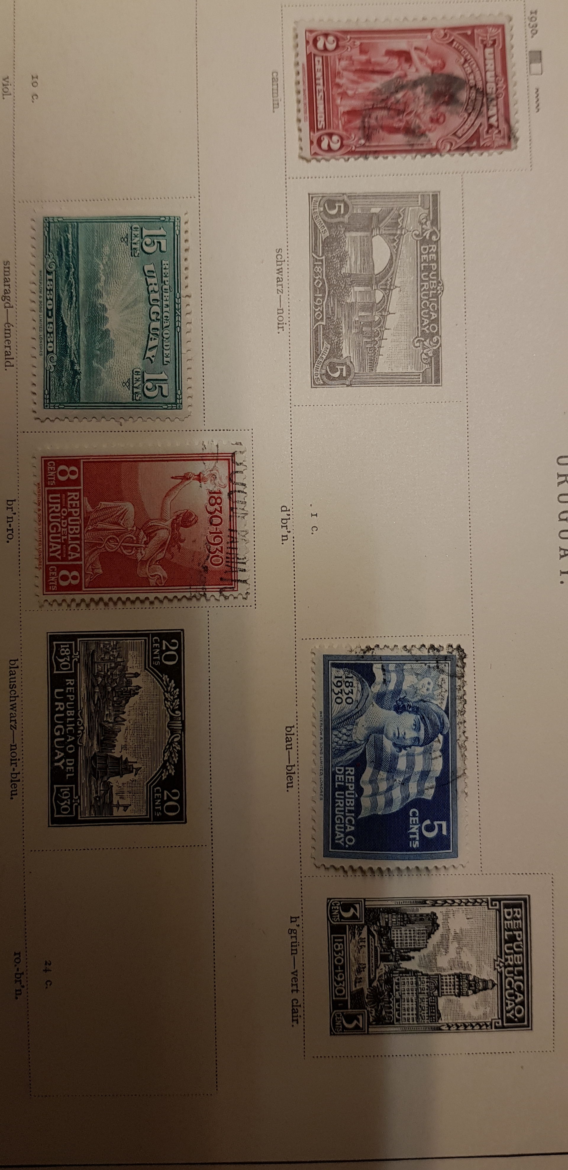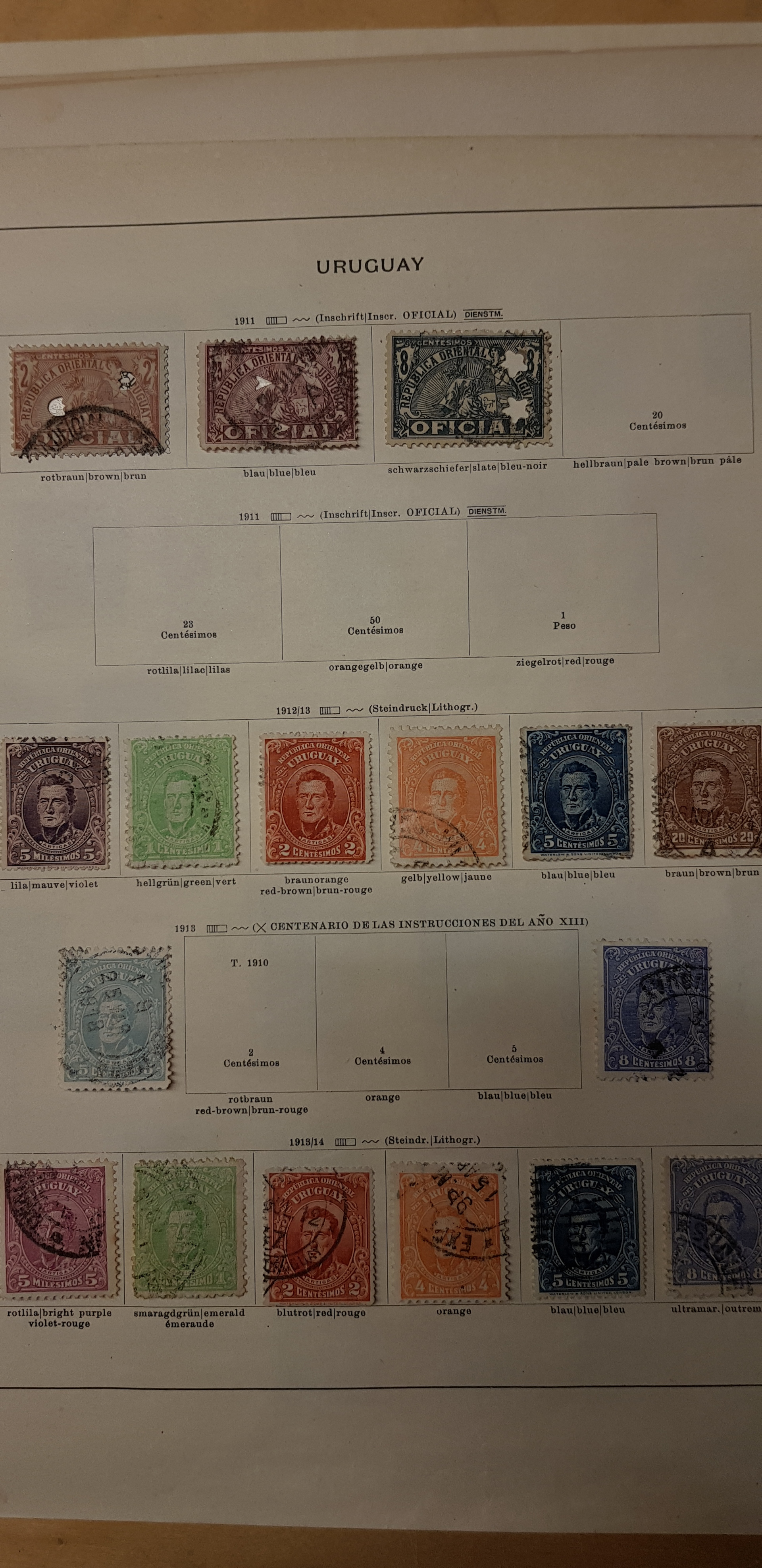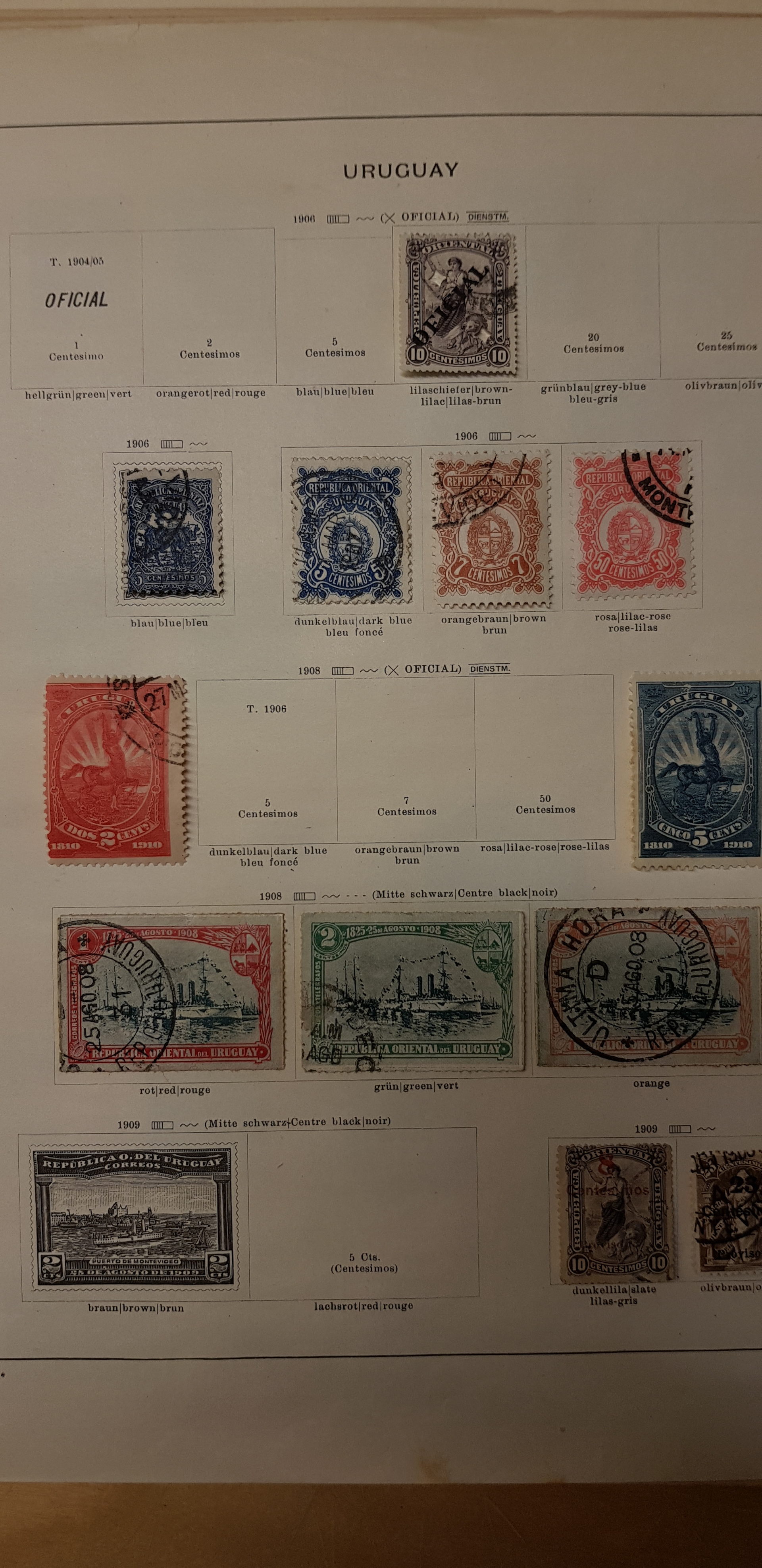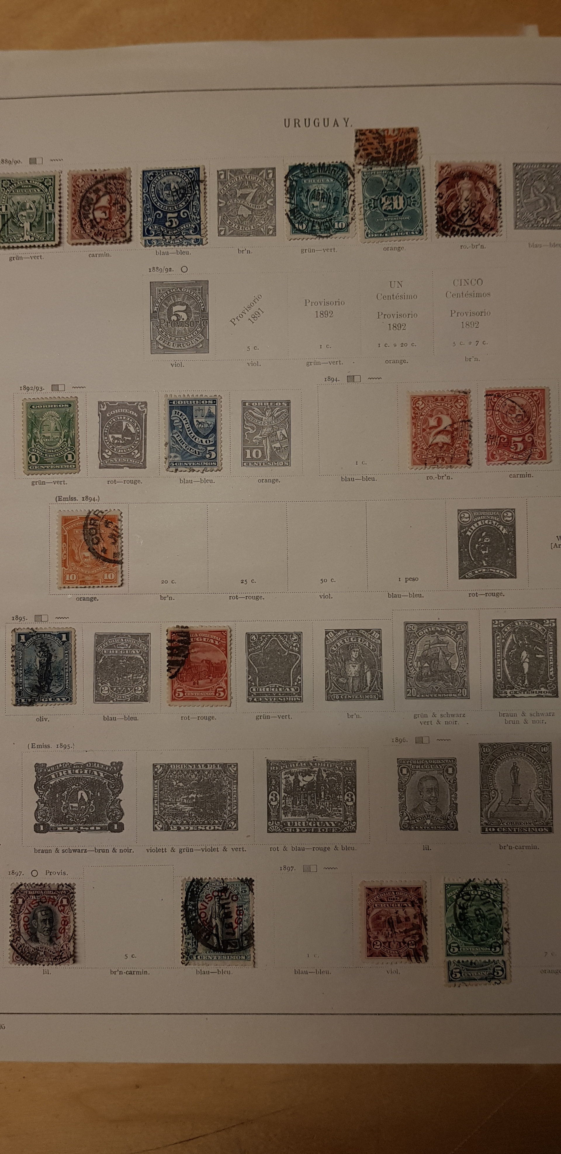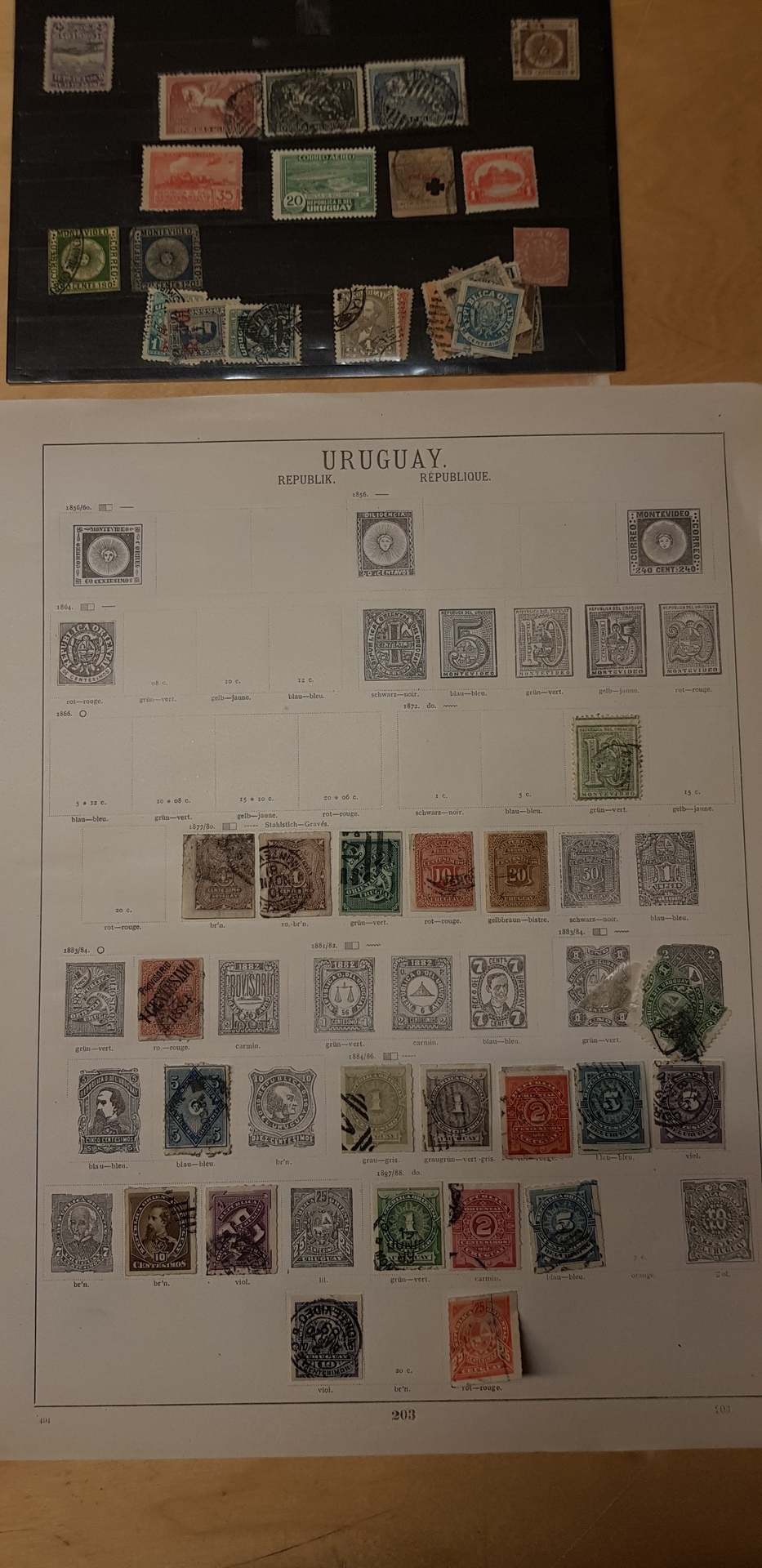 Uruguay. Collection/accumulation mostly used 1800s–1900s on leaves with stamp mounts. An impressive assembly of stamps from Uruguay. Seems to be a assembly from different collections. Please see a selection of scans at www.philea.se. Mostly fine quality. (>1000)