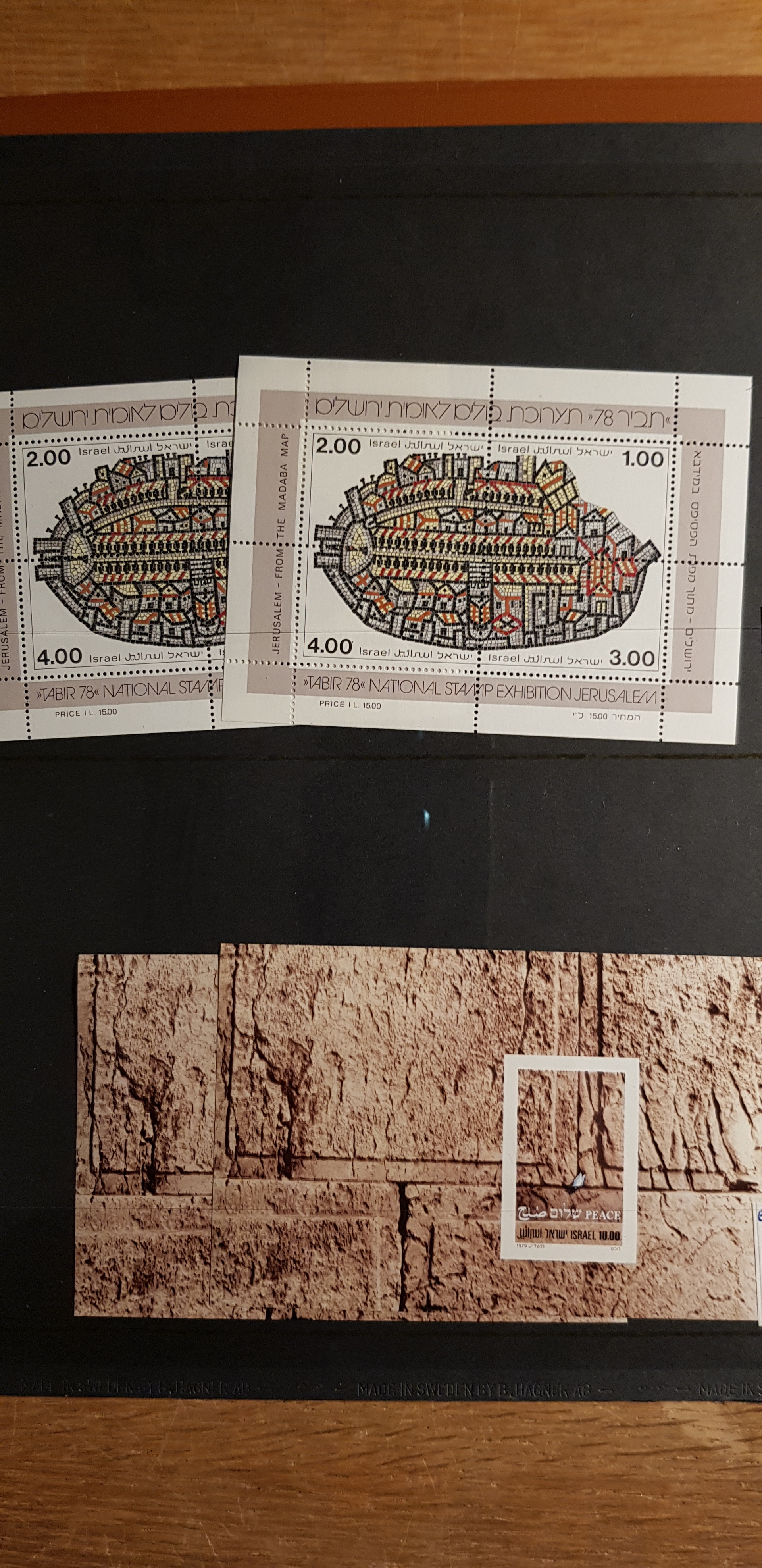 Israel. Collection/accumulation ★★ 1900s in visir album. An assembly of souvenir sheets and also blocks of unused stamps. Please see a selection of scans at www.philea.se. Fine quality. (>Hundreds)
