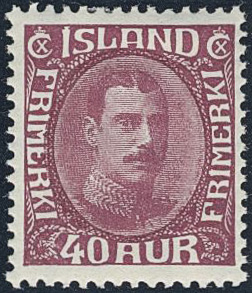 Iceland. Facit 154 ★, 1932 King Christian X 40 aur lilac close, unbroken lines. SEK 2000