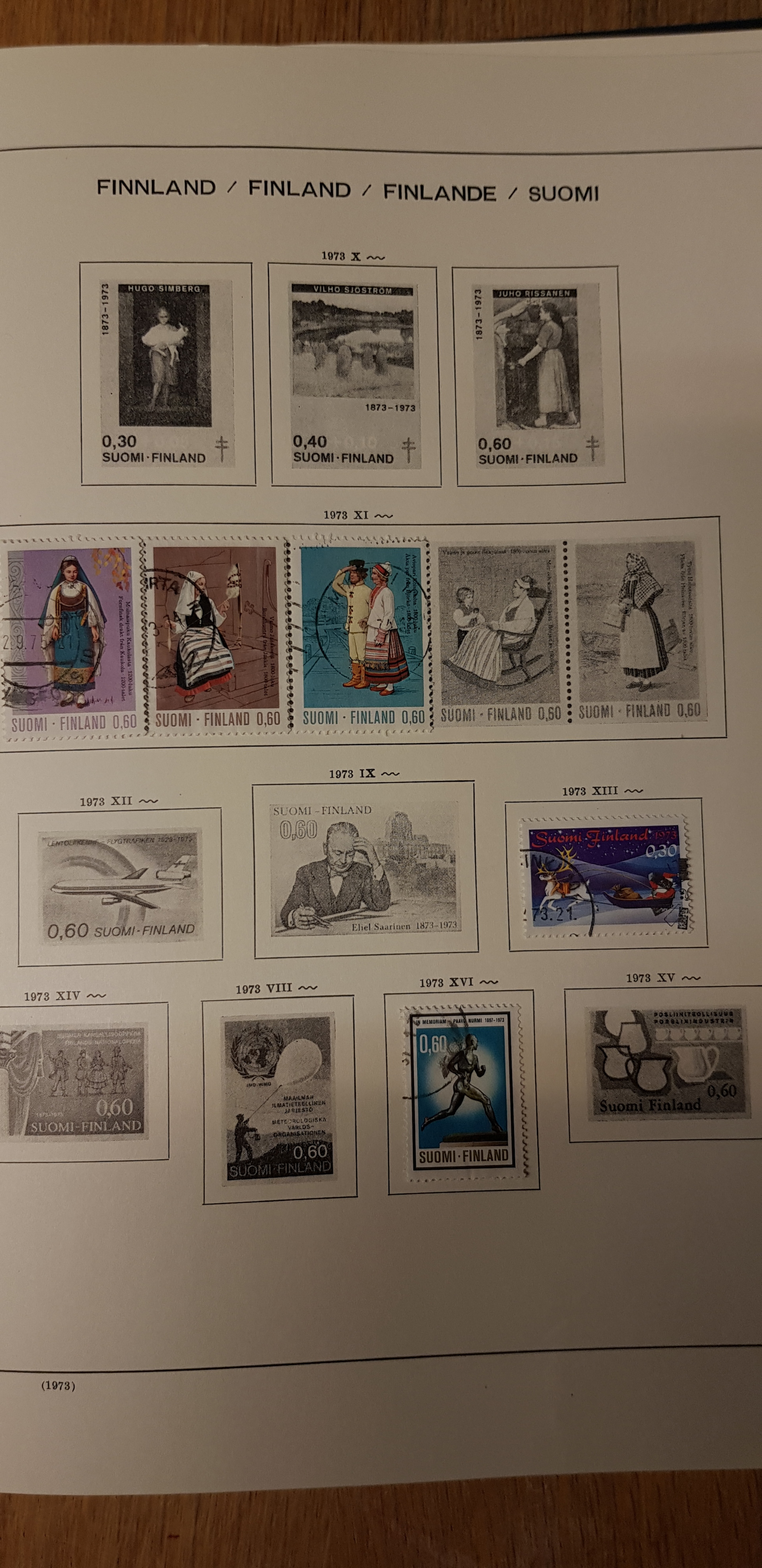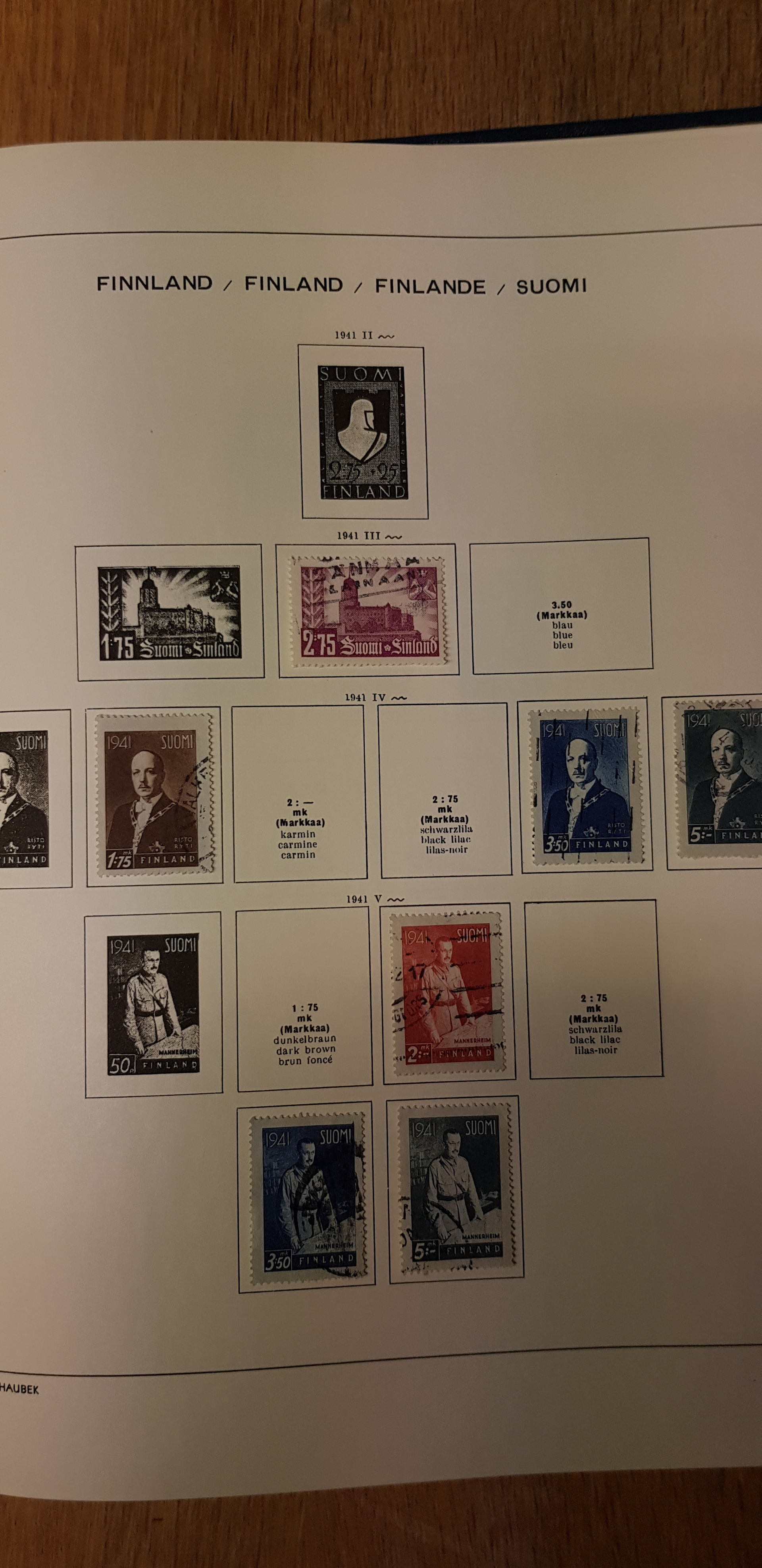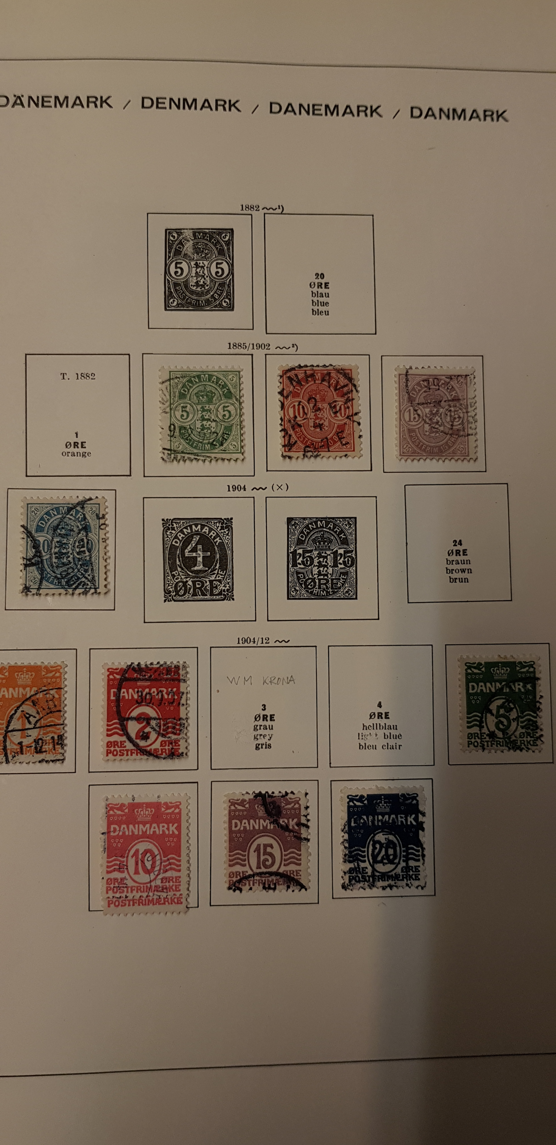 NORDIC COUNTRIES. Collection mostly used 1851–1980 in a very good Schaubek album with stamp mounts, containing Denmark and Finland. Not so very well equipped but the album is in very good condition. Please see a selection of scans at www.philea.se. Mostly fine quality. (>500)