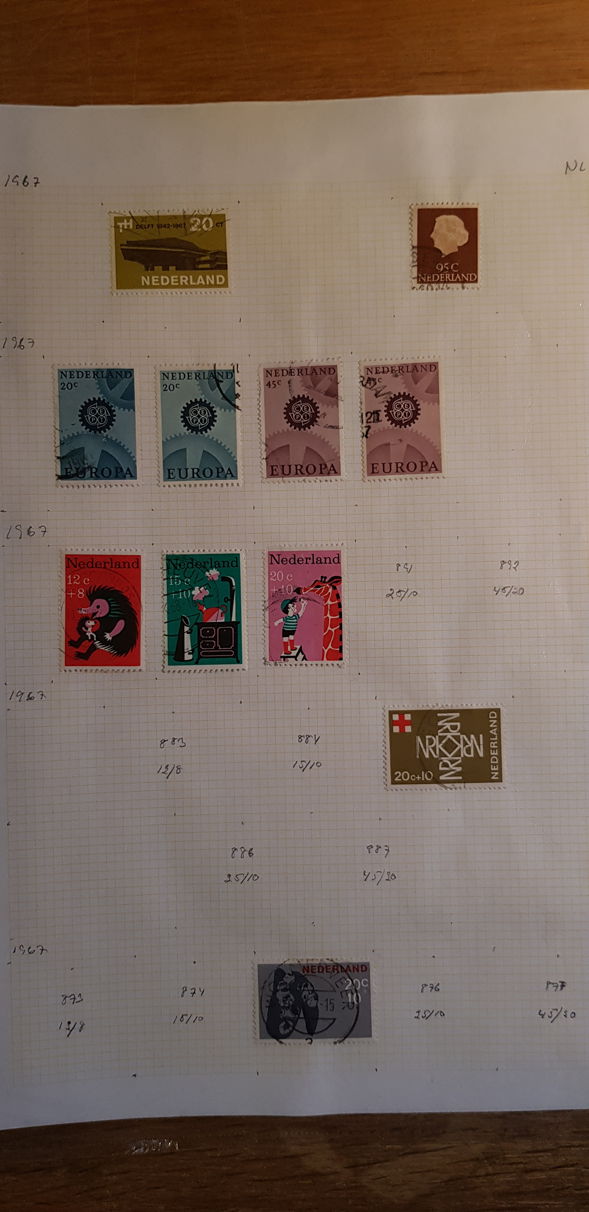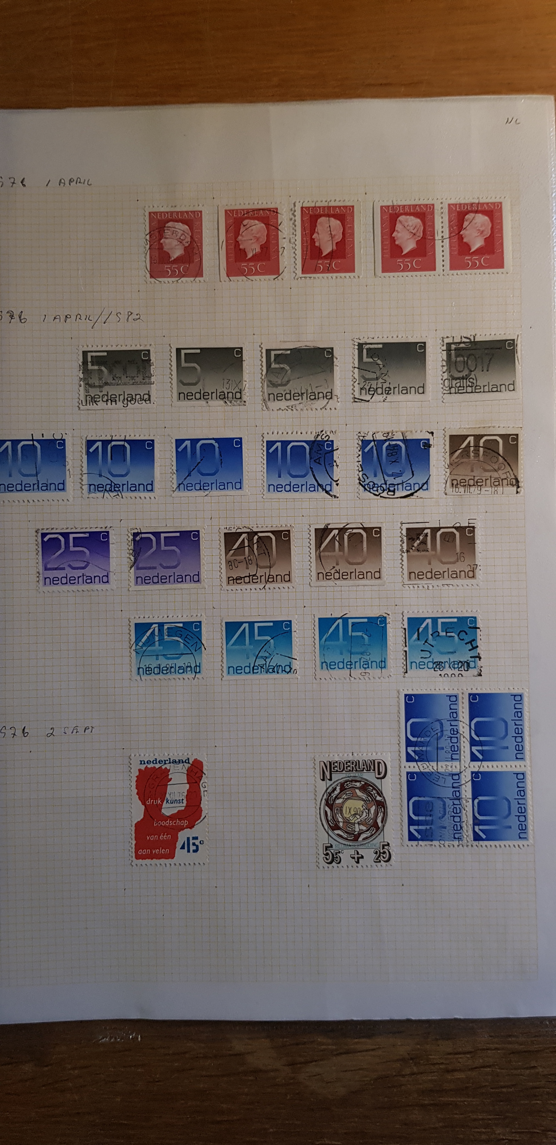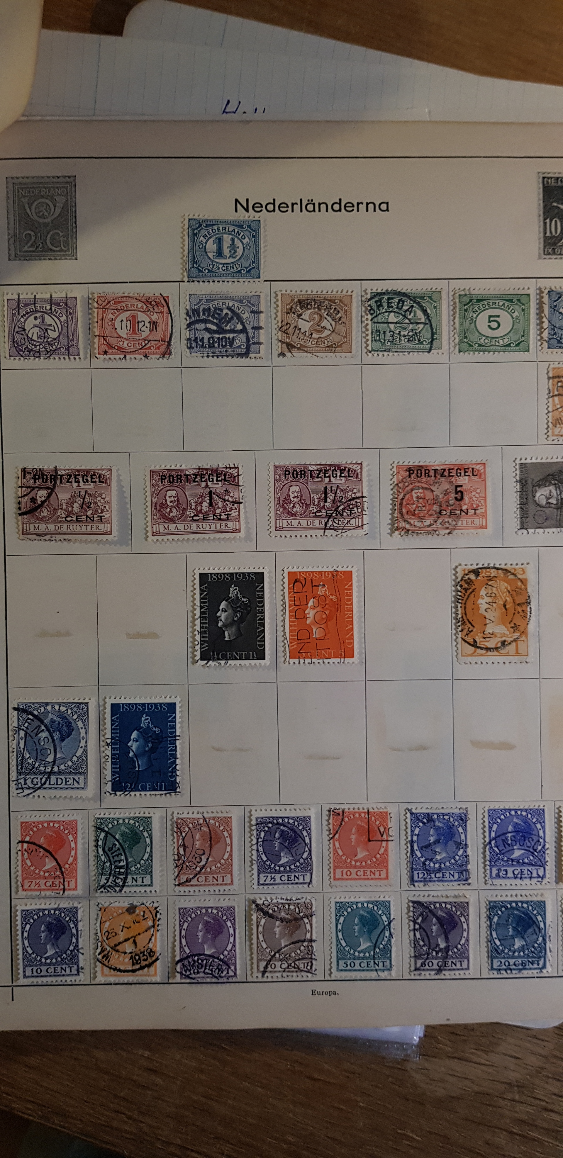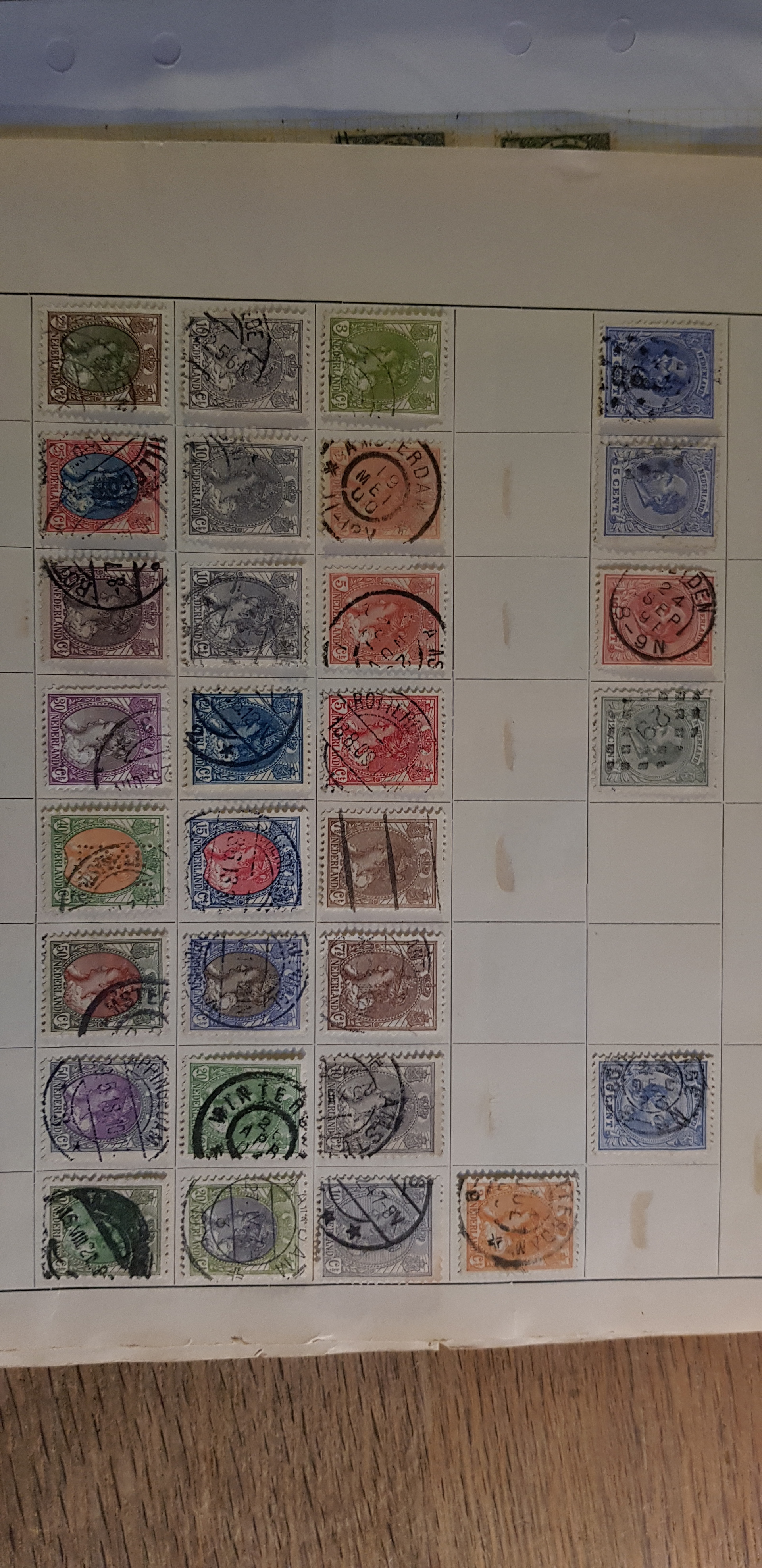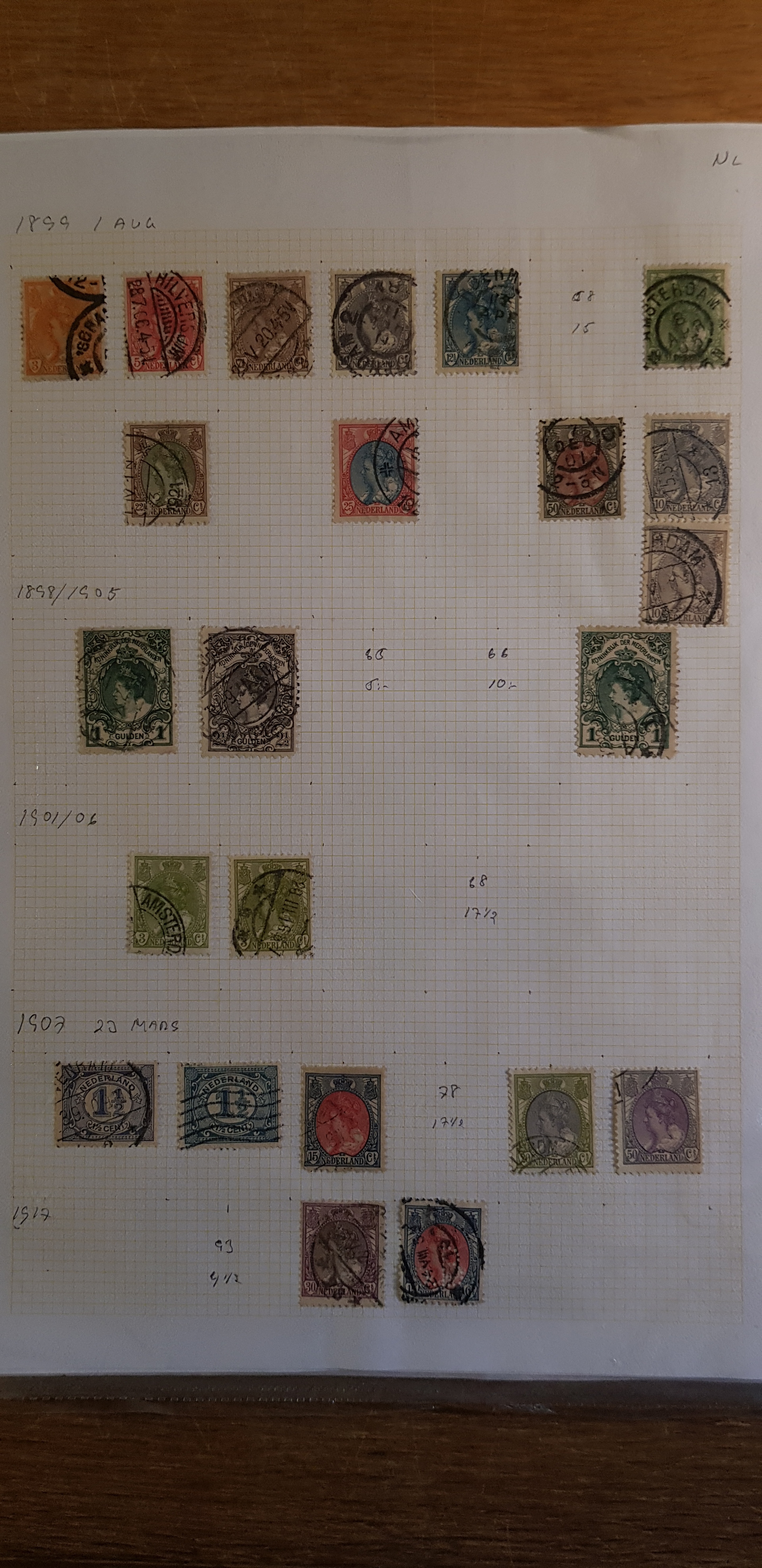 Netherlands. Collection/accumulation mostly used 1800s–1900s on leaves without stamp mounts. A assembly of stamps from a nice country, Please see a selection of scans at www.philea.se. Good quality. Approx. 14 kg. (>500)