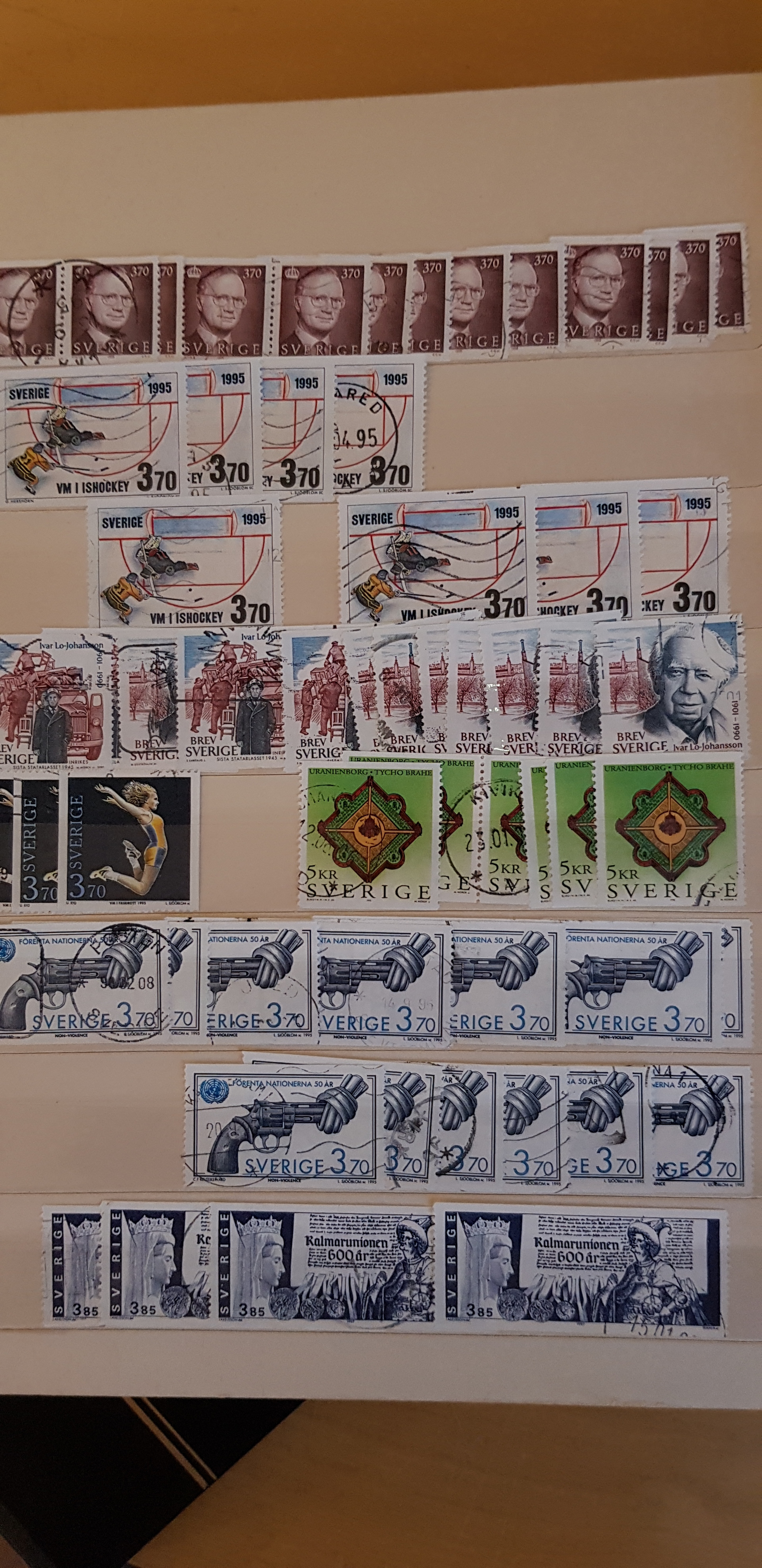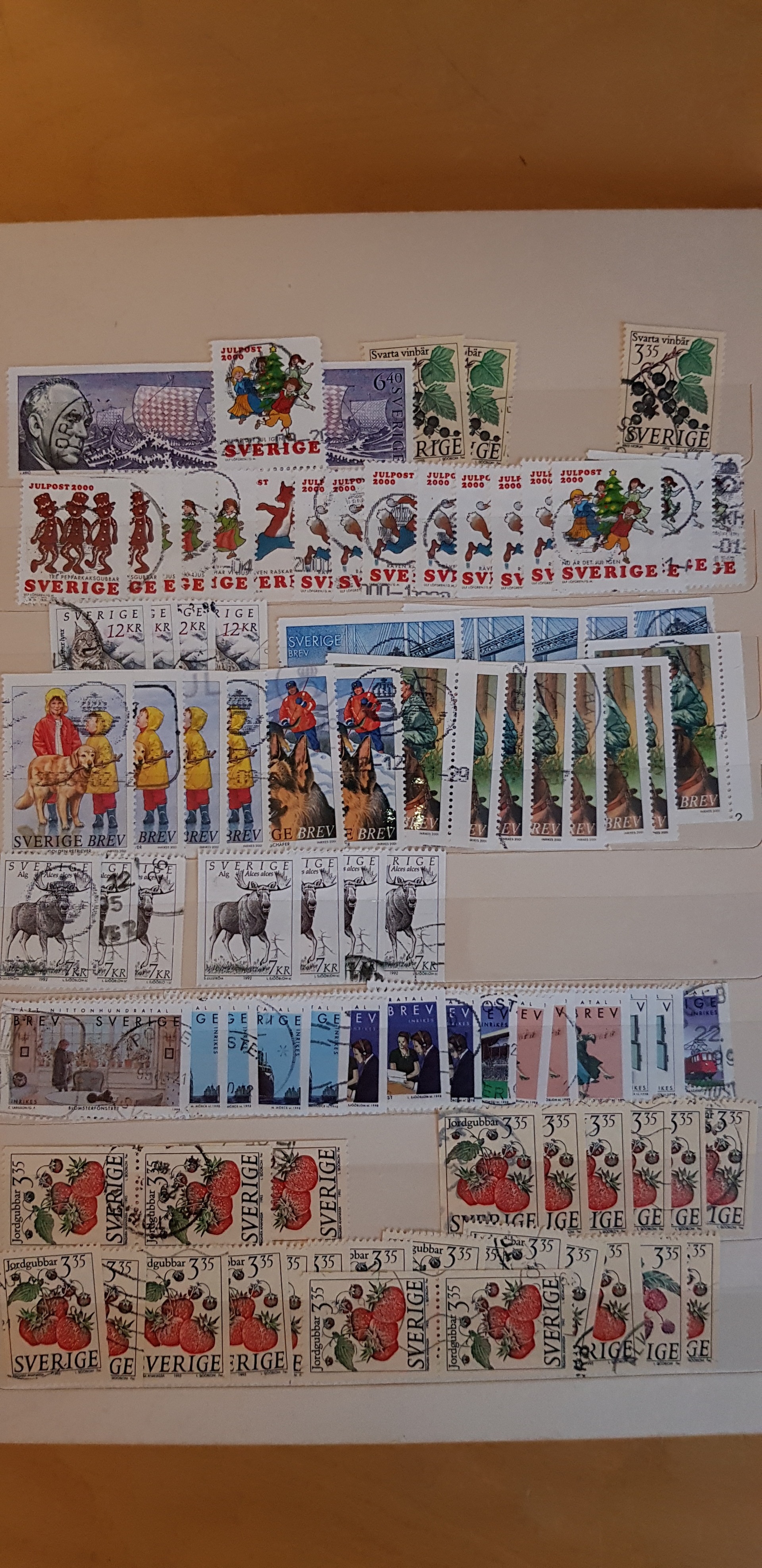 Sweden. Collection/accumulation mostly used 1900s in box. Many stamps as duplicates. A nice assembly of envelopes and postcards. Please see a selection of scans at www.philea.se. Mostly fine quality. (>3000)