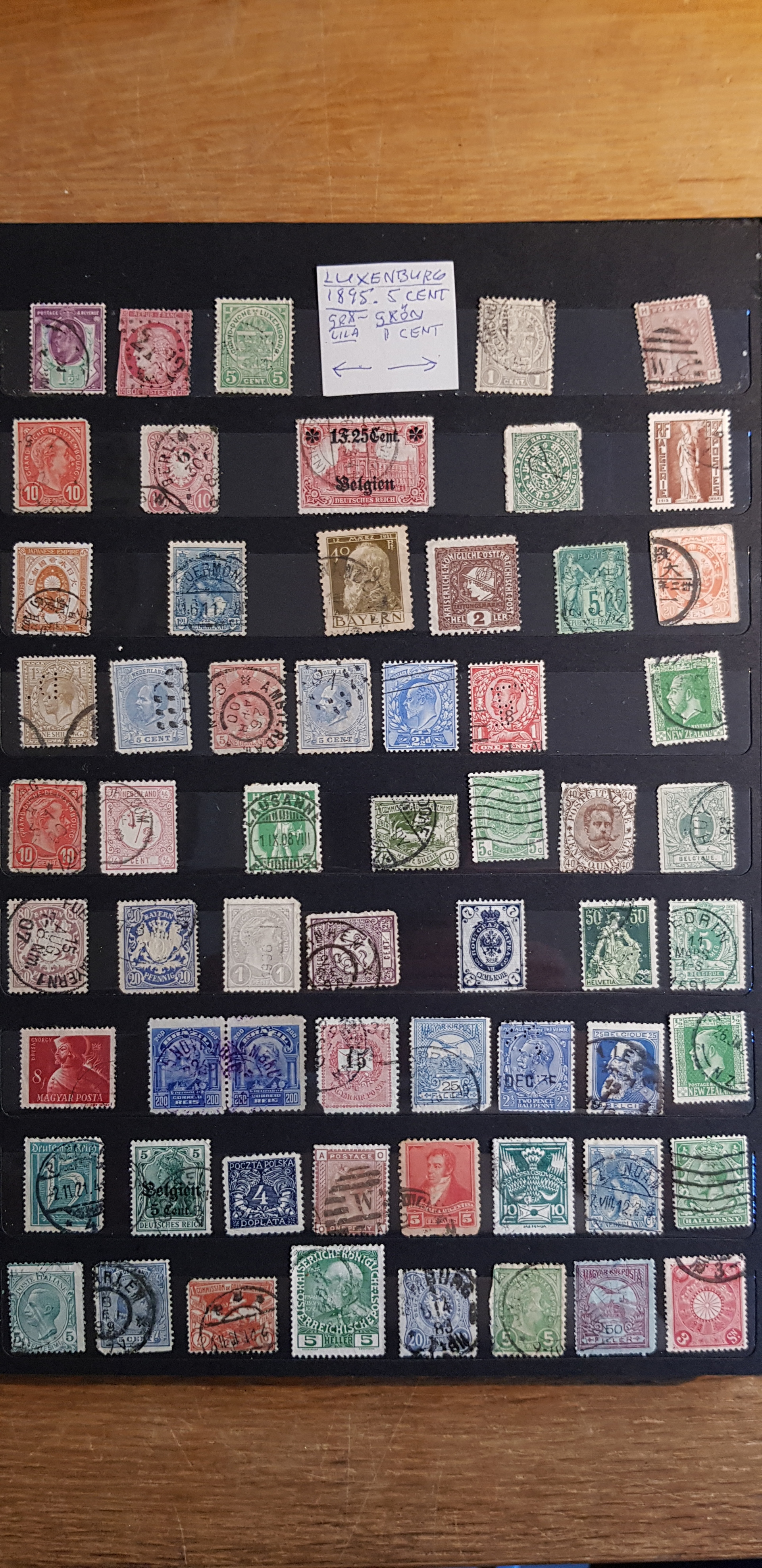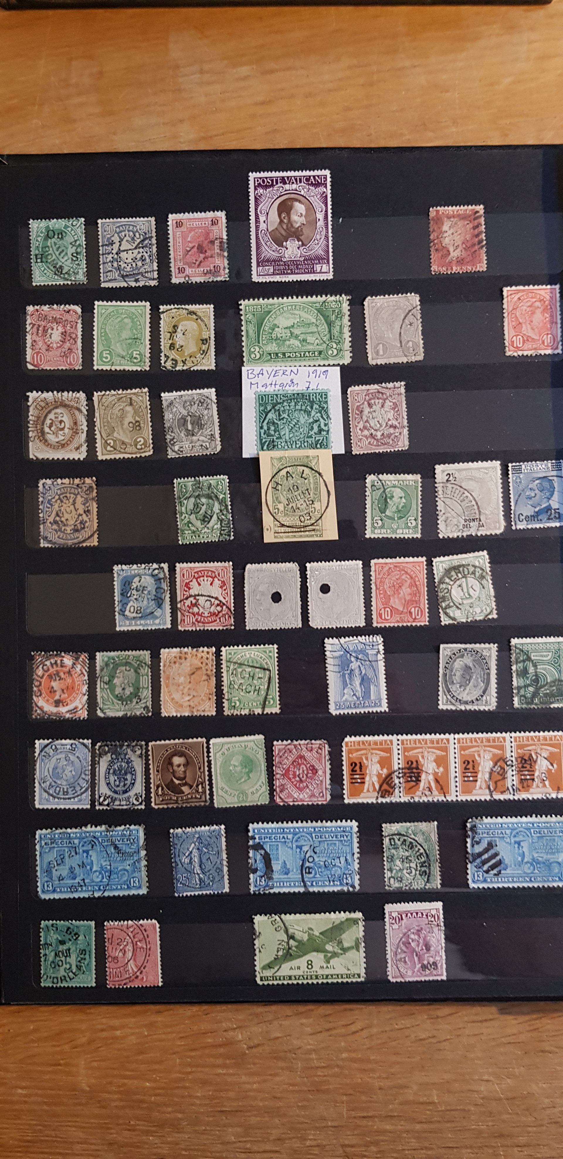 ALL WORLD. Collection/accumulation mostly used 1800–1900 in box. One box including five regular stockbooks, one thicker stockbook and one small. All containing stamps from all over the world. Please see a selection of scans at www.philea.se. Good quality. (>2000)