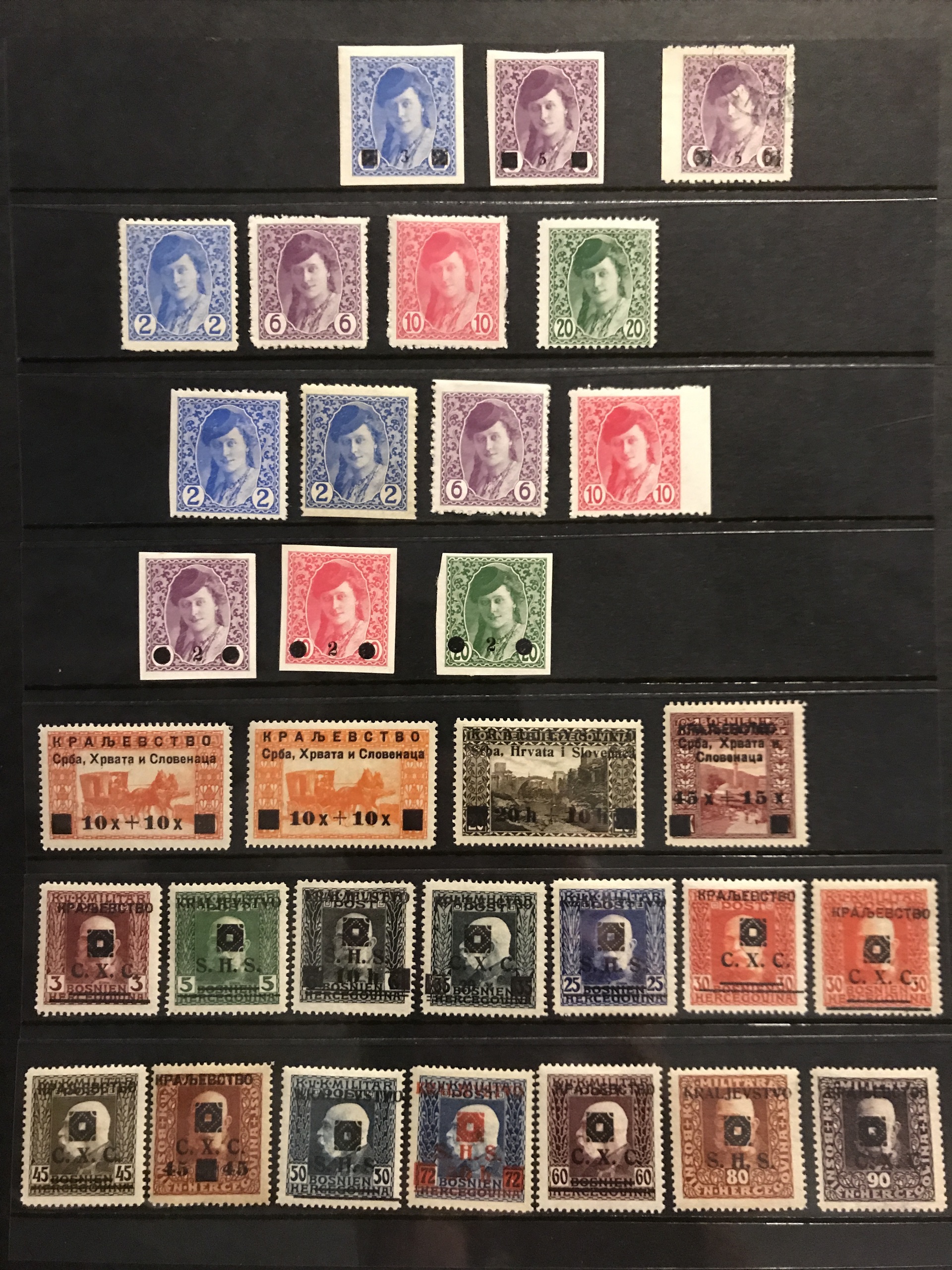 Yugoslavia. ★. Collection 1918–19 on Visir leaves. Containing Mi1–50 and postage due stamps incl. many varieties. (100)