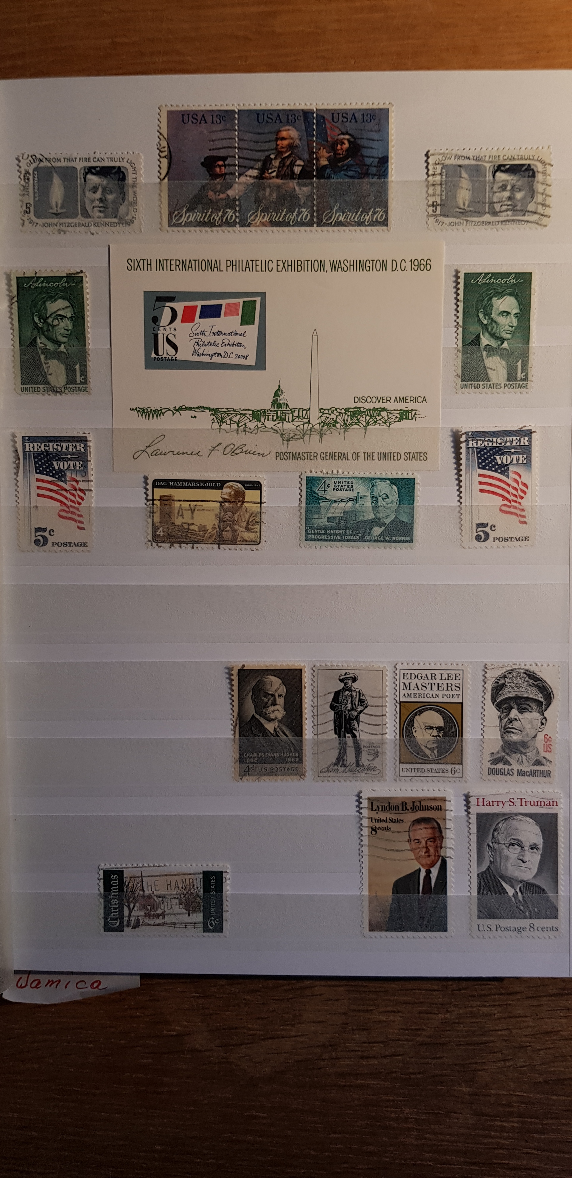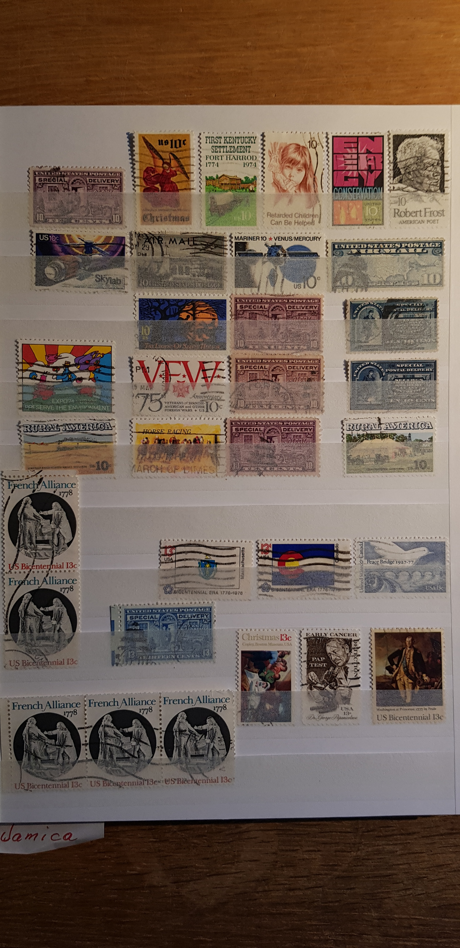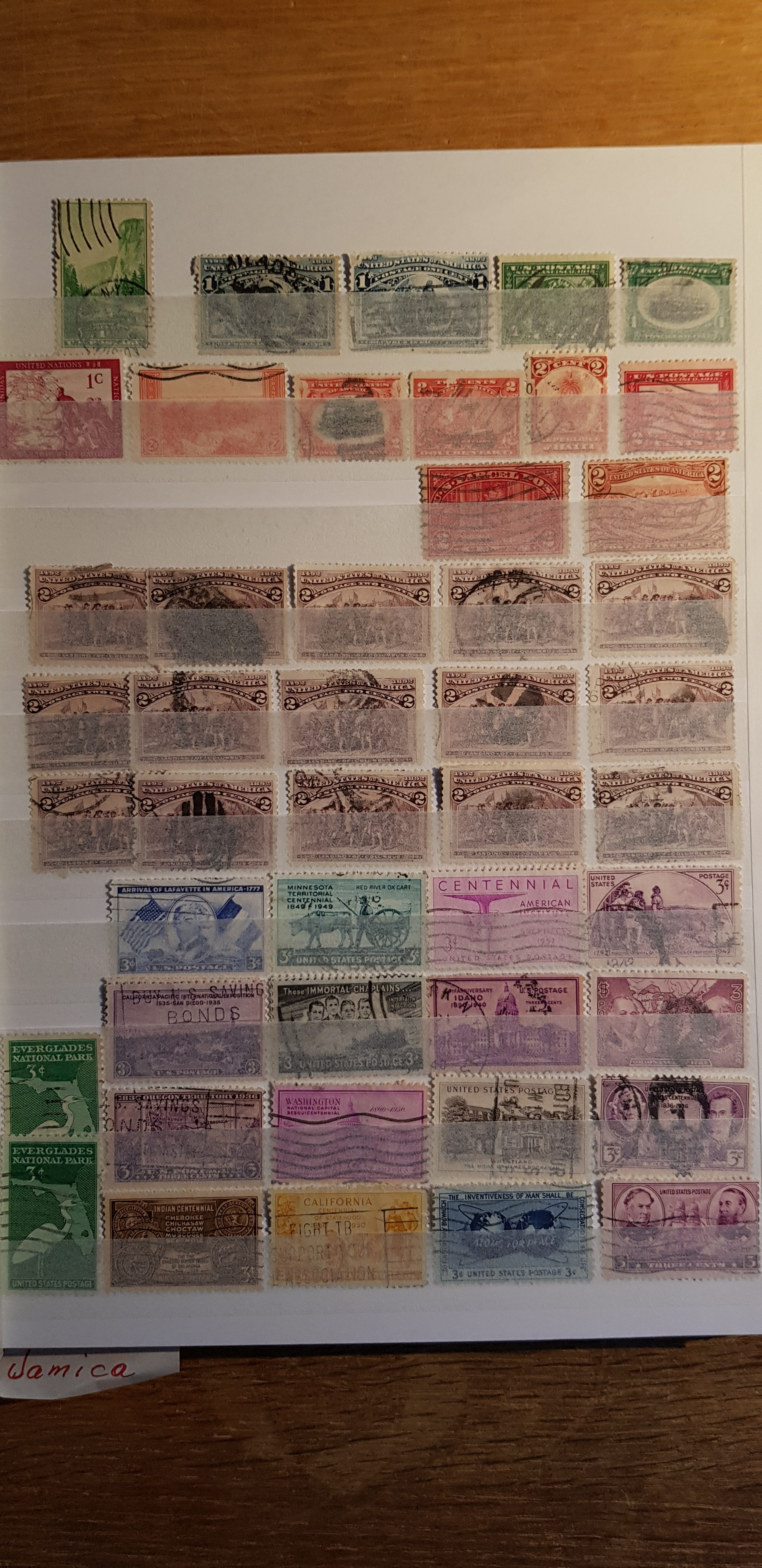 U.S.A. Collection/accumulation mostly used 1800s–1900s in stockbook. A very well-furnished stockbox with stamps from USA and Jamaica. Please see a selection of scans at www.philea.se. Mostly fine quality. (>1000)