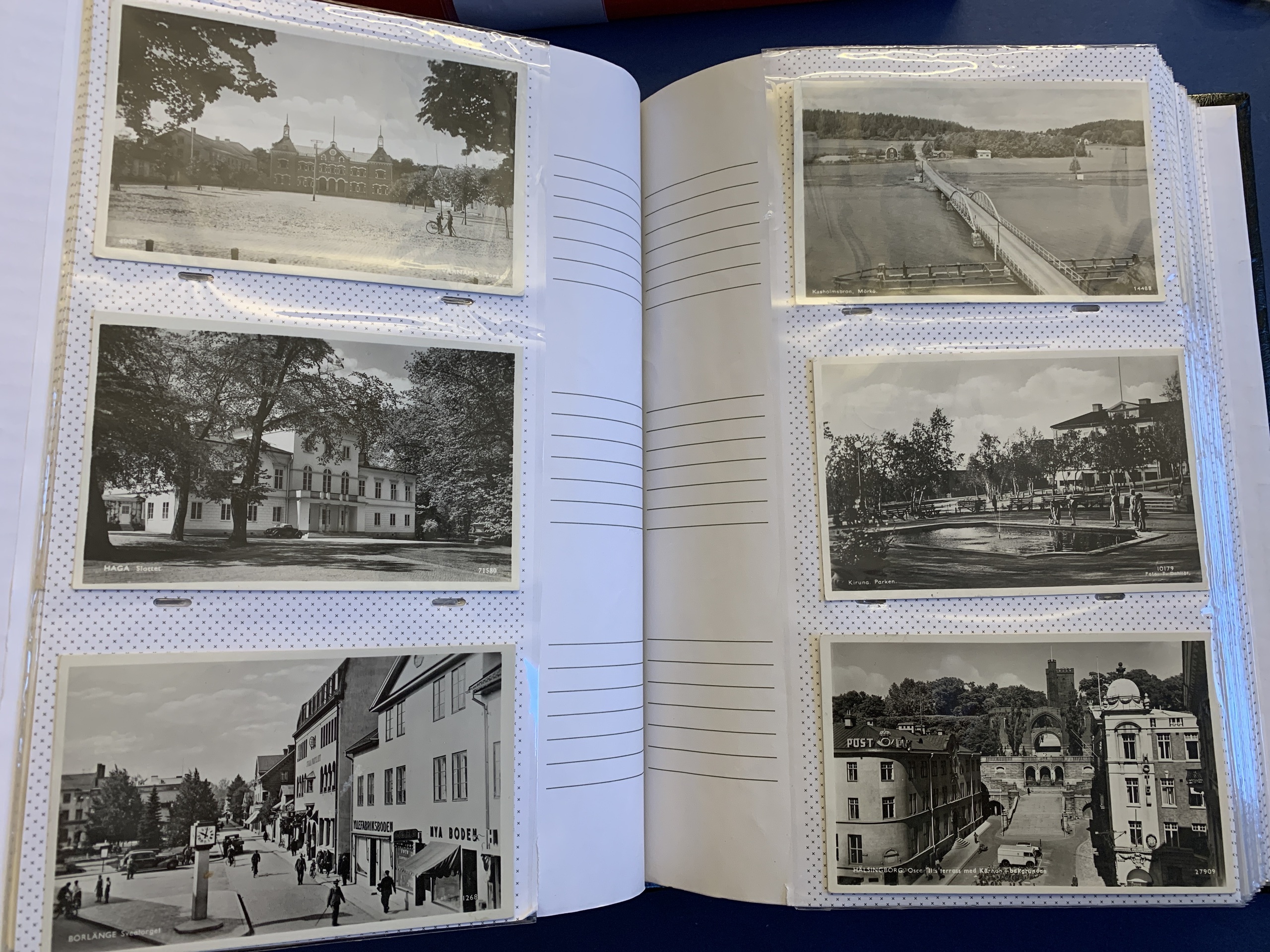 Sweden. Picture postcards. Collection cards issued by SVENSKA PRESSBYRÅN in the smaller size, b/w, more than 250 different (including some coloured) in a binder with plastic pockets. Please see a selection of scans at www.philea.se.