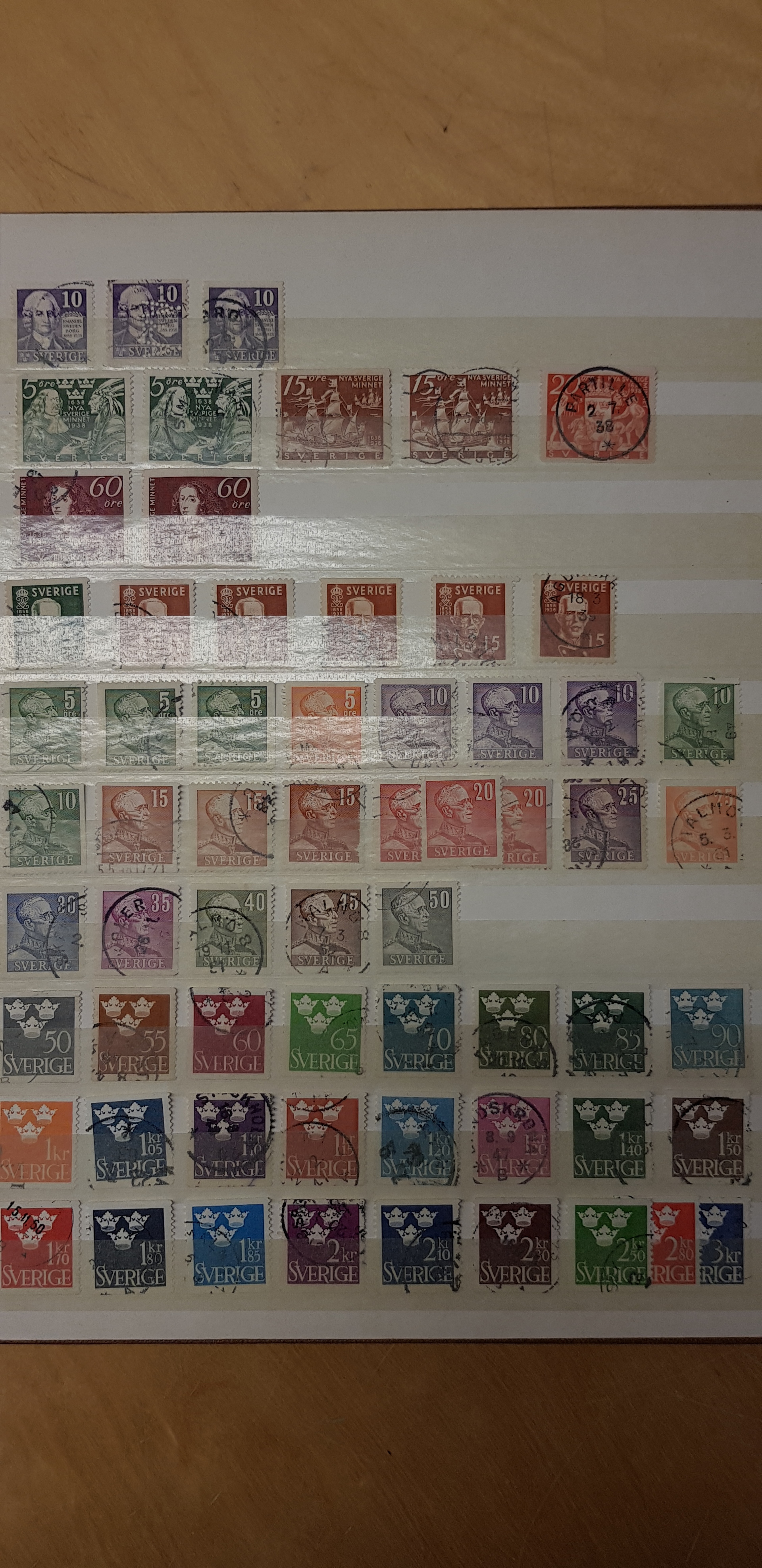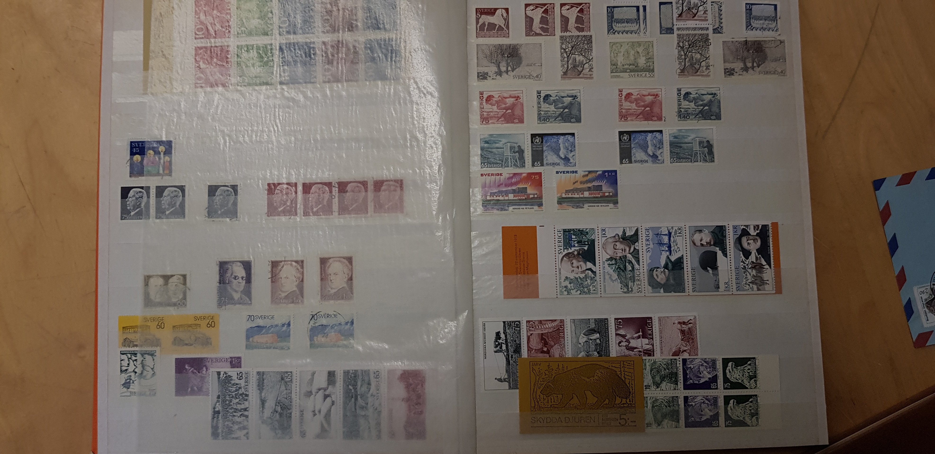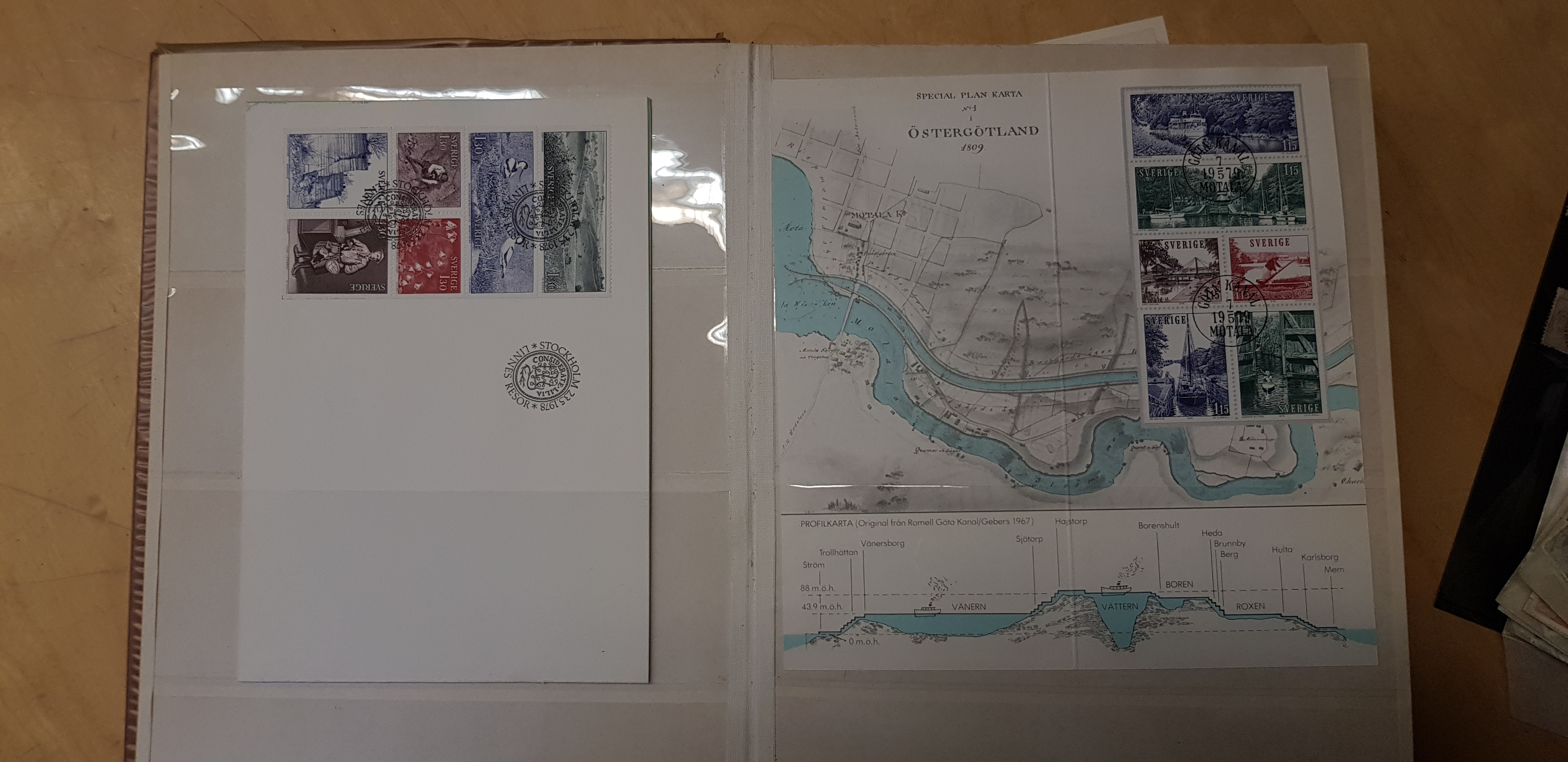 Sweden. Collection/accumulation mostly used 1900s in box. Three albums with Swedish stamps used and unused, FDCs and envelopes. Also plastic envelopes with stamps. Please see a selection of scans at www.philea.se. Mostly fine quality. (>500)