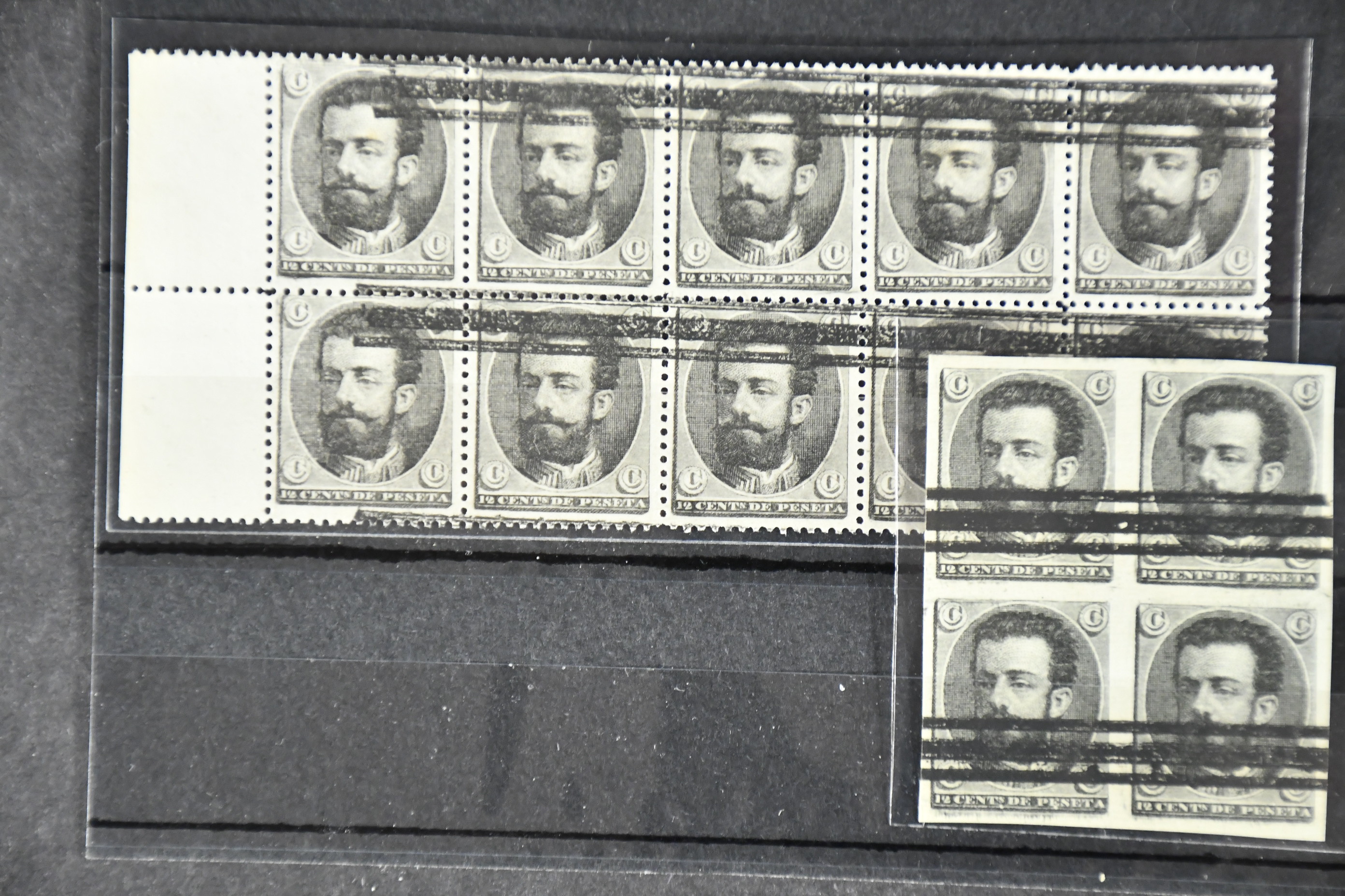 Spain. Used, 1873 Unissued essay King Amadeo I in perf. block of 10 and imperf. block of 4.