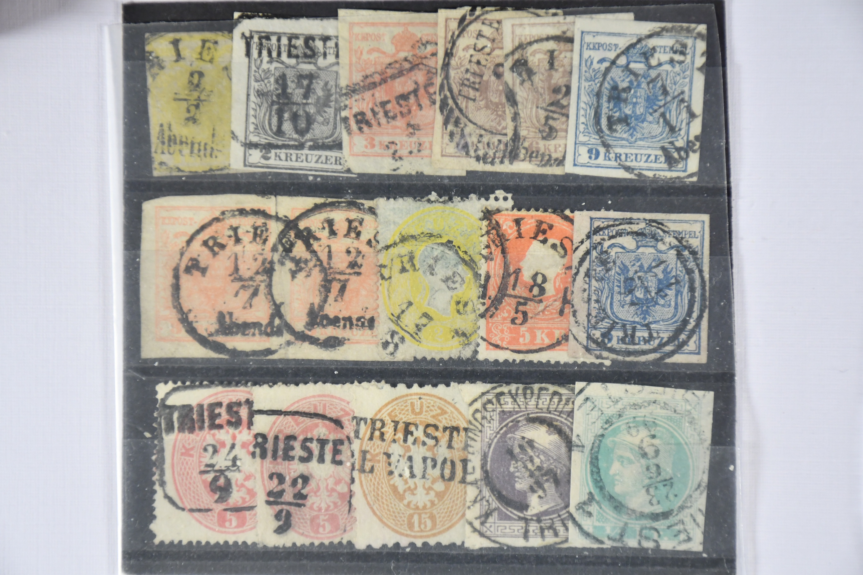 Austria. Used. Lot. 16 stamps cancelled in TRIEST. The entire lot is presented at www.philea.se.