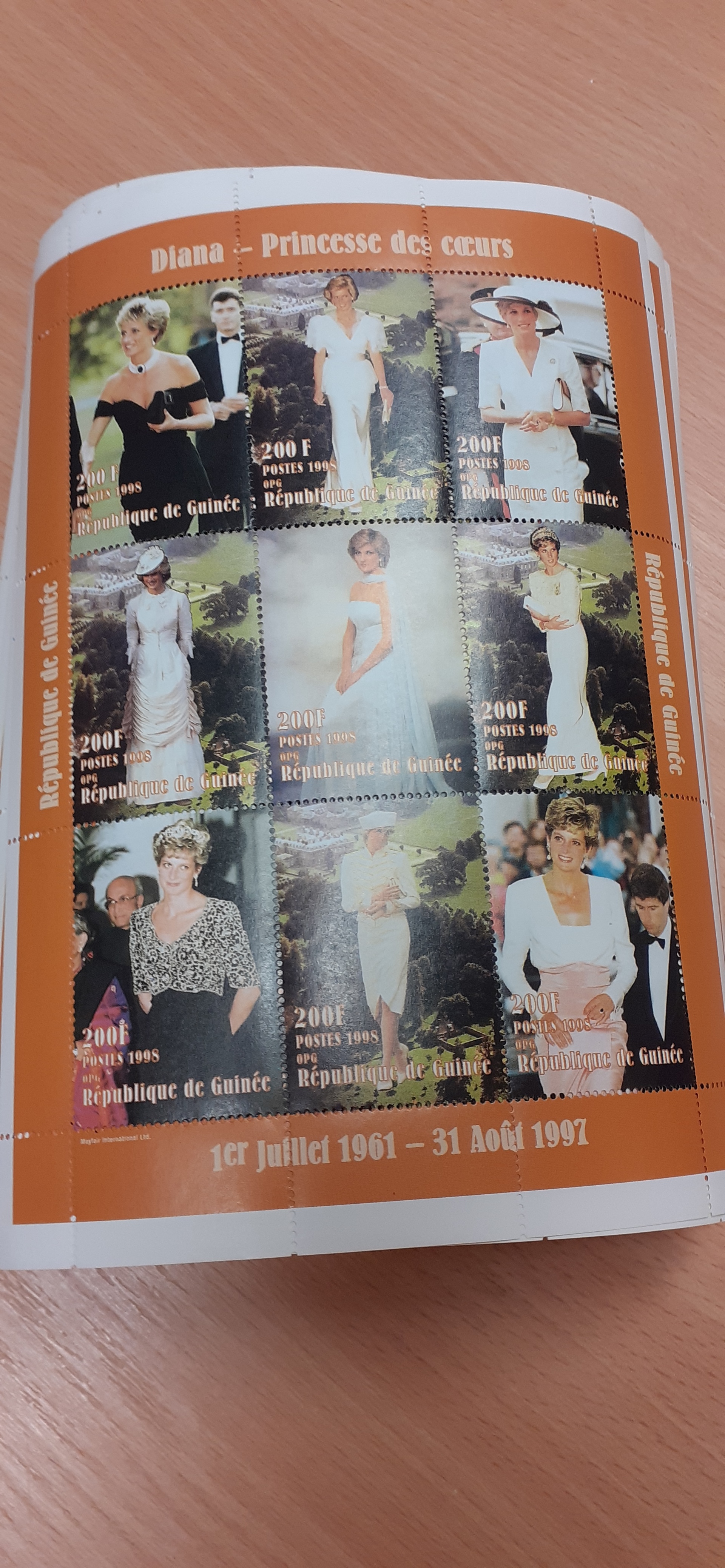 Guinea. Michel 1732–40 ★★, 1998 Diana 9x200fr minisheet. About 250 copies of this minisheet. EUR 2500