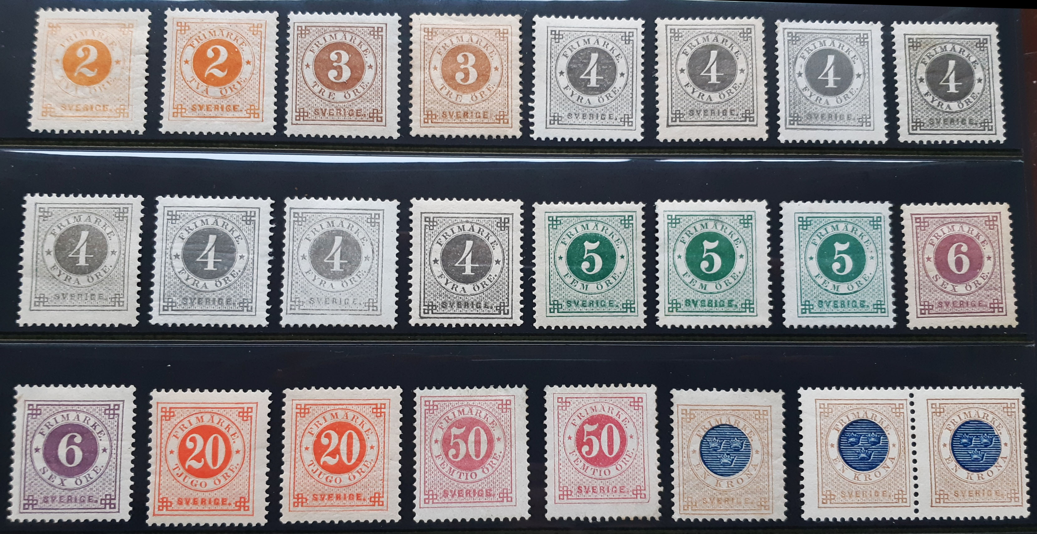 Sweden. Collection mostly ★ CIRCLE TYPE PH. Duplicate lot incl. all denominations except for 30 öre, partly in different shades. Mostly good quality. Facit at least 11680 (24)
