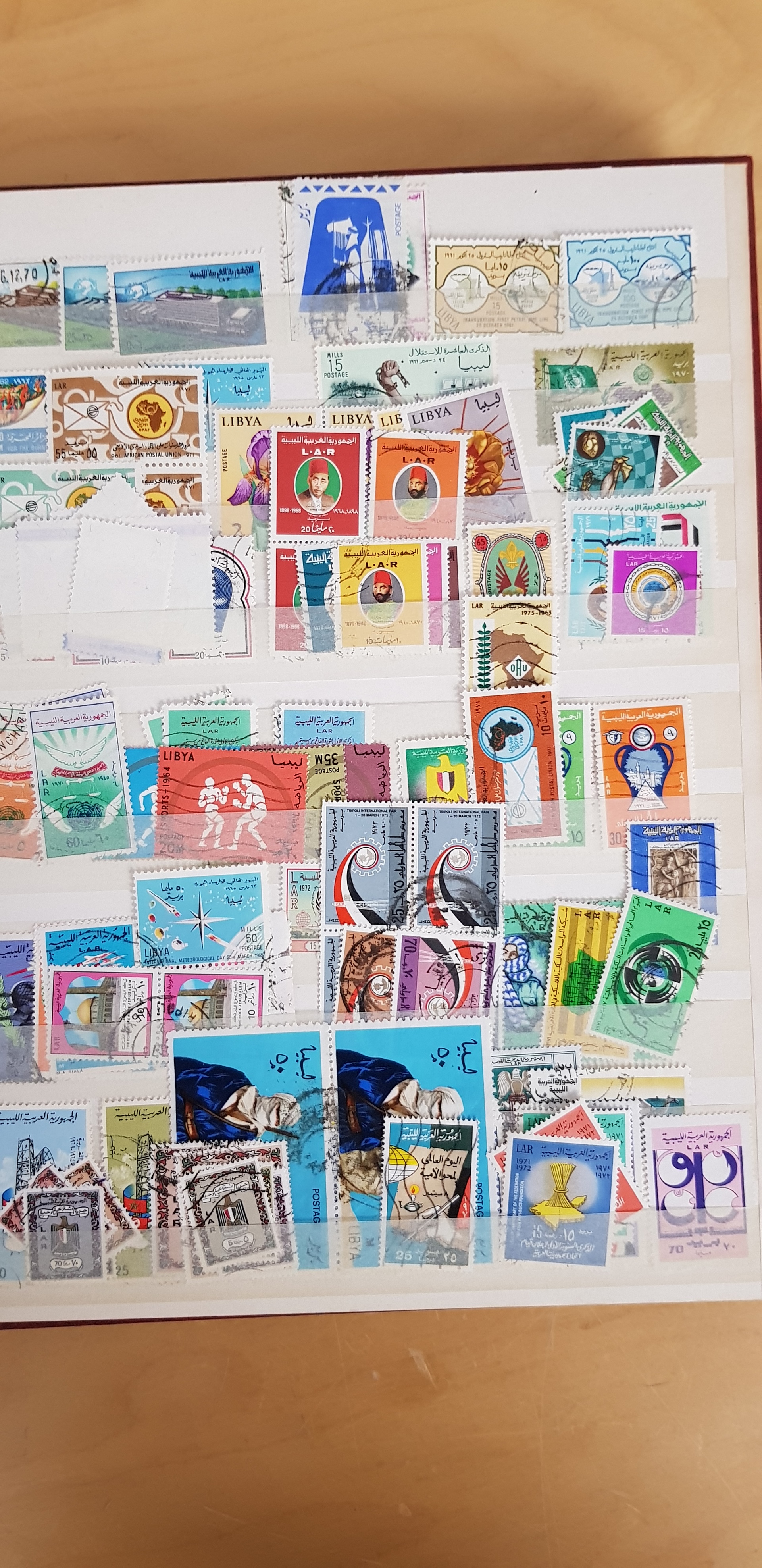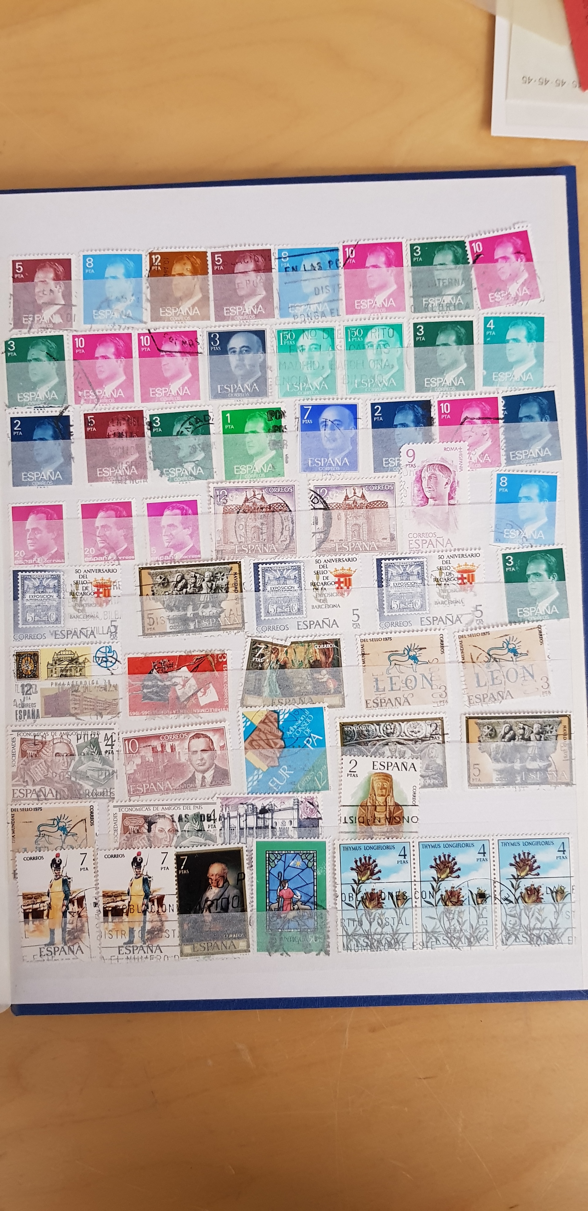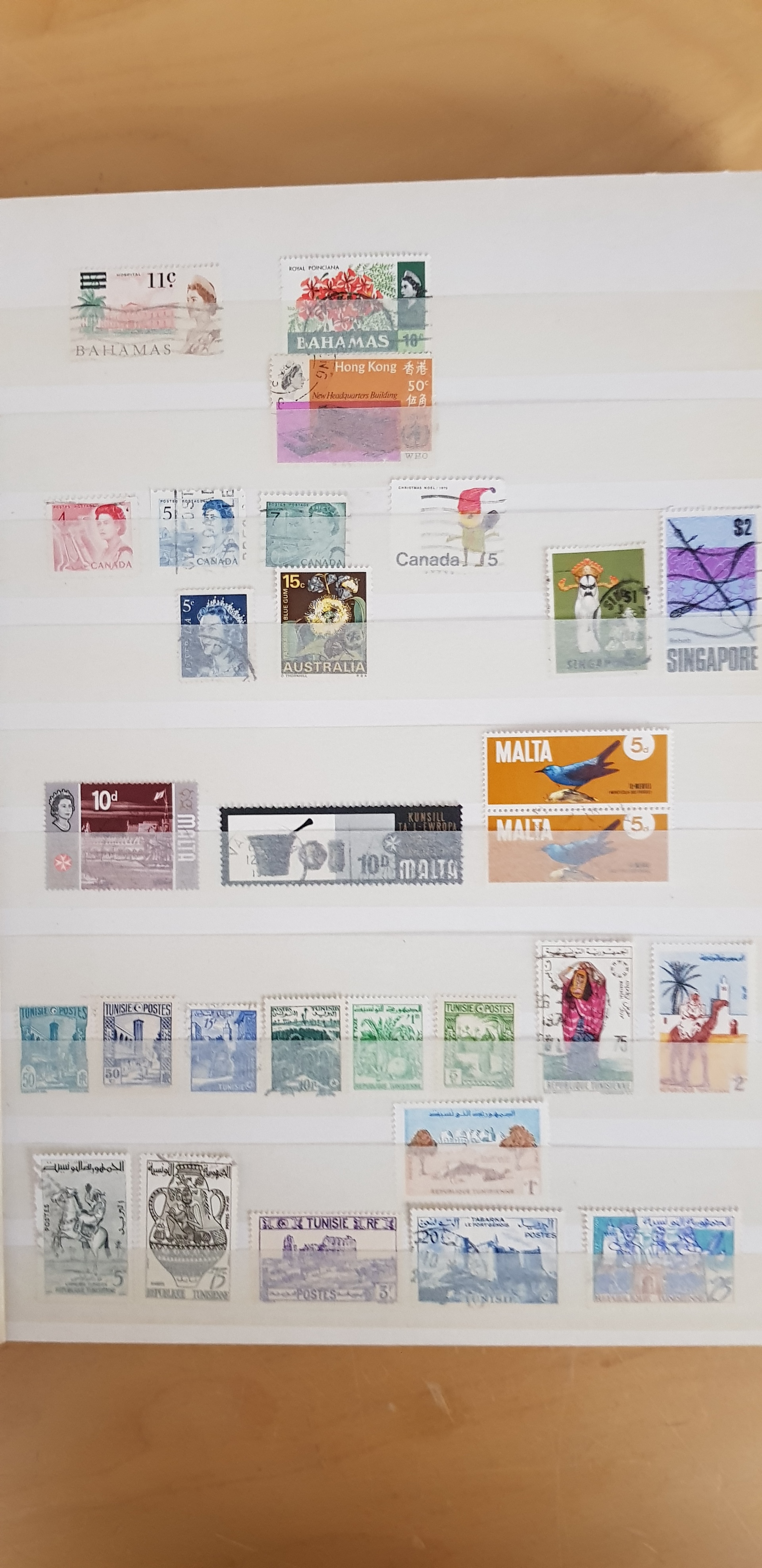 ALL WORLD, Mixed. Collection/accumulation used 1800–1900 in box. Five stockbooks with stamps from all over the world, two mini-stockbooks are also included. Please see a selection of scans at www.philea.se. Good quality. (>1000)