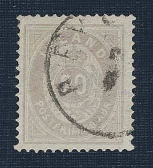 Iceland. Facit 14a used, 1876 Aur values 20 aur pale violet, blurred print perf 14 × 13½. SEK 4400