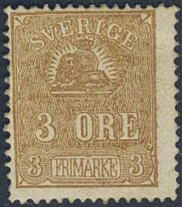 Sweden. Facit 14A ★, 3 öre brown, type I. Somewhat dried gum. SEK 7500